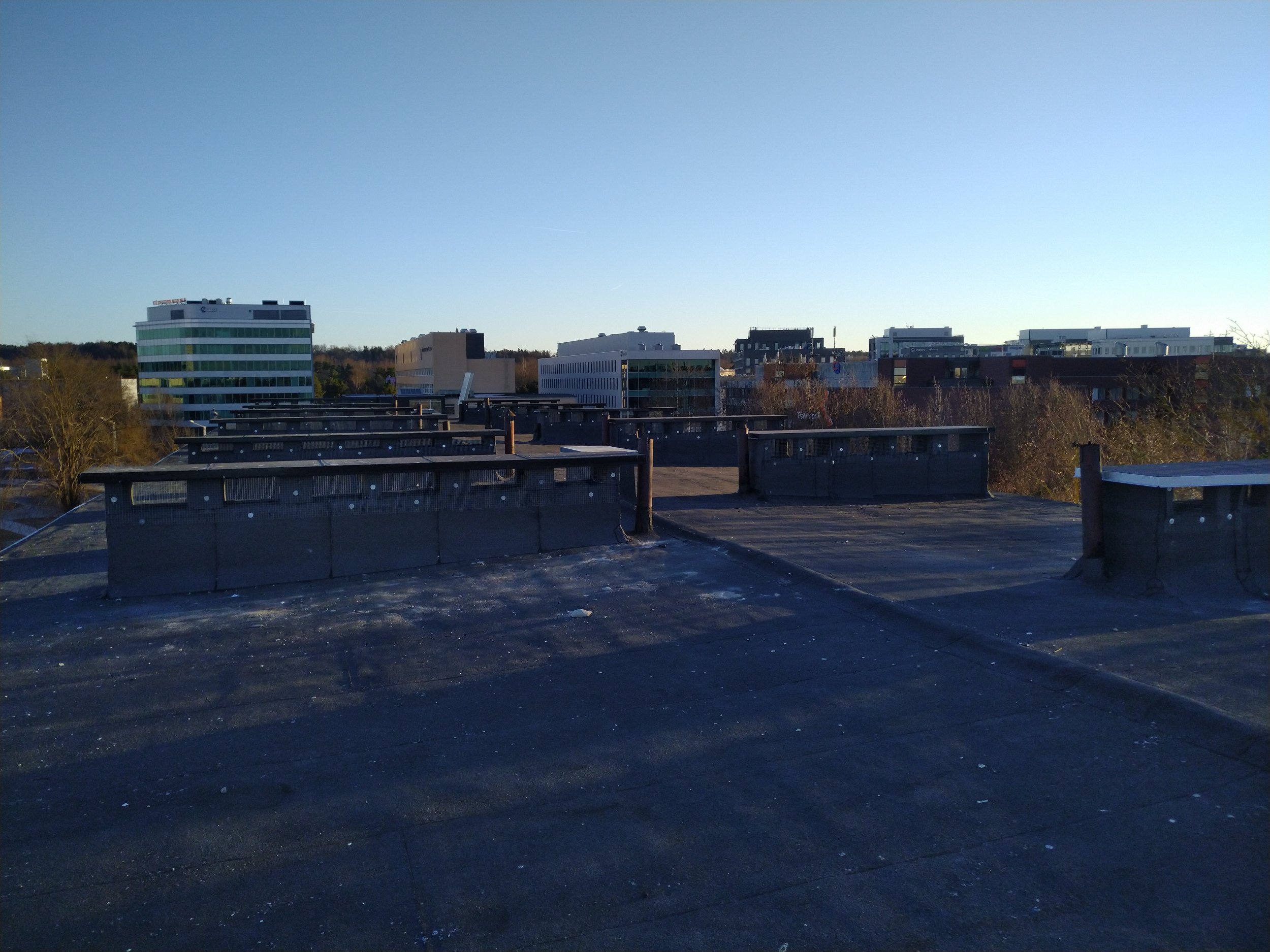 Katus on tuuldumas nö eterniit avade kaudu ning omab keset katust tsentraalses joones tuulutust. Eterniit avad viivad külma õhu parapetilt katusekatte alla ning katuse sooja tagavus ei ole hea.