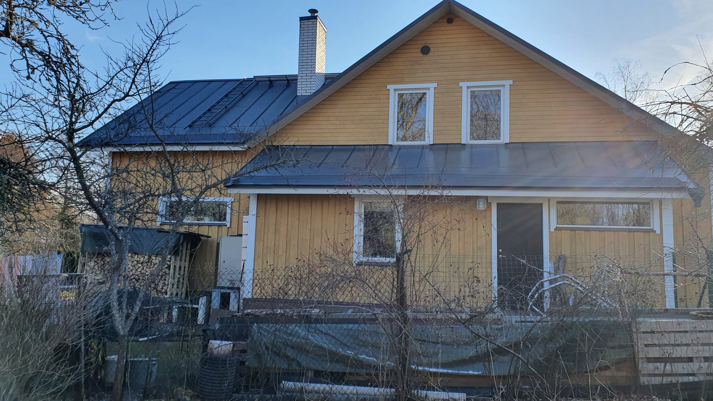 Hoone välisfassaadi puhastamine ja värvimine kollase rootsi muldvärviga, aknapaled ja muud valged detailid värvida tavalise veebaasil valgega.