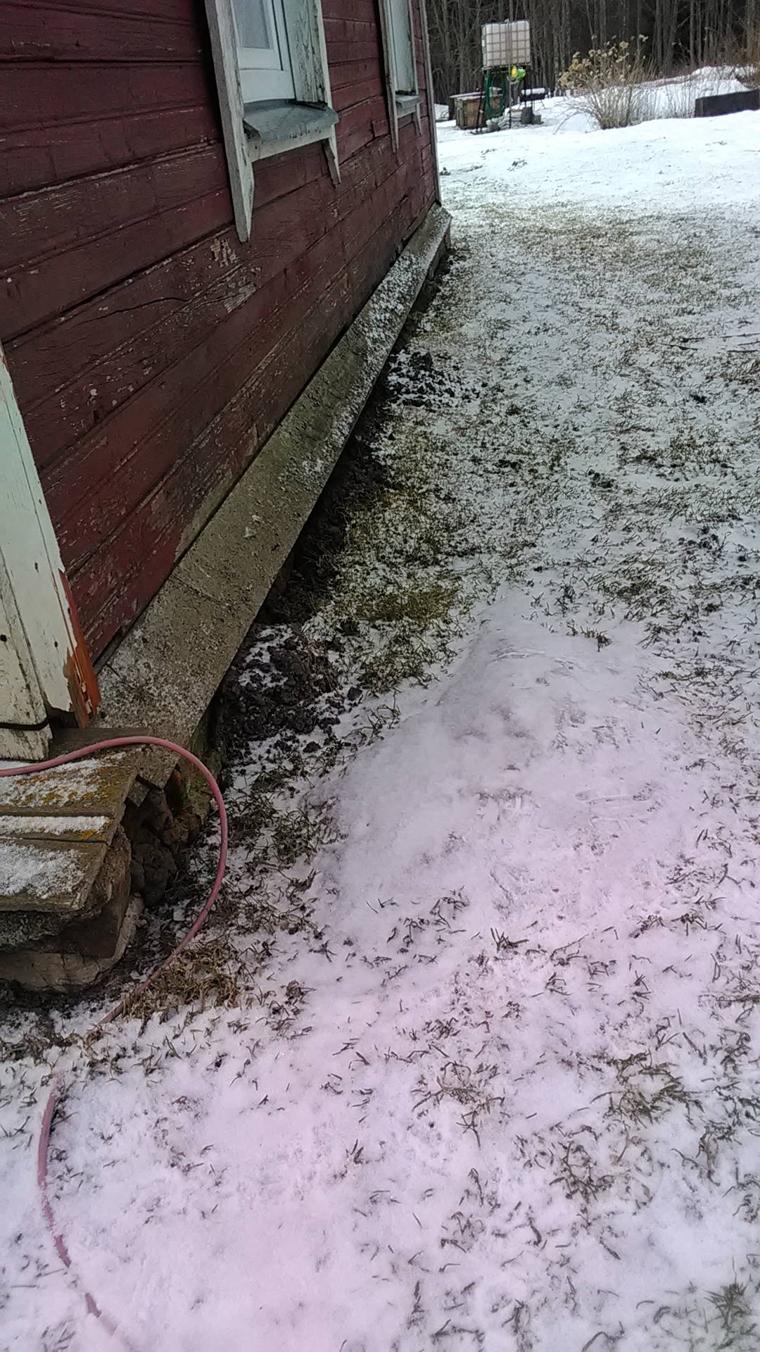 Vana talumaja osaliselt maakividel, osaliselt betoonlindile toetuv. Vaja ümbert lahti kaevata ja maja ümber valada betoonist vöö. Vöö kõrguseks 1 m ja laius 0.4-0.5 m. Maja ümbermõõt umbes 44 meetrit.