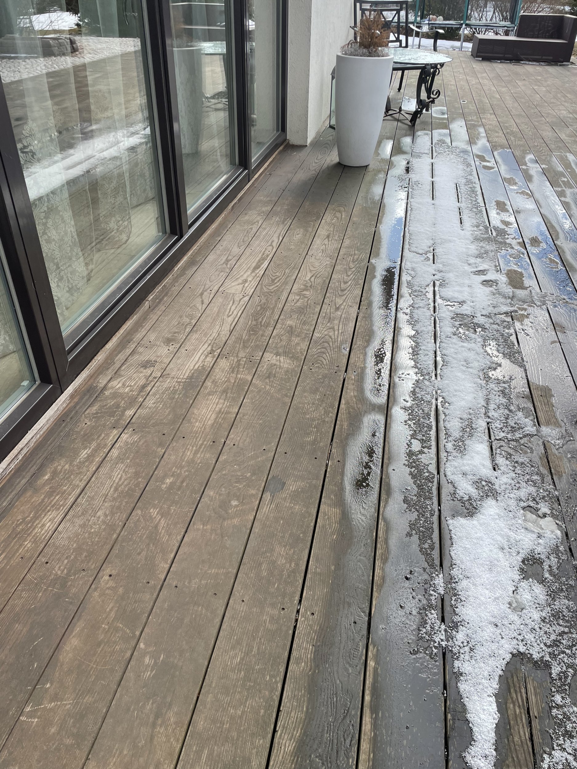 Soovitan teha uue! Hind koos materjaliga . Kasutades pruunimmutust klassik mänd .28x120 . hinnas ka vana terrassi ultiseerimine .