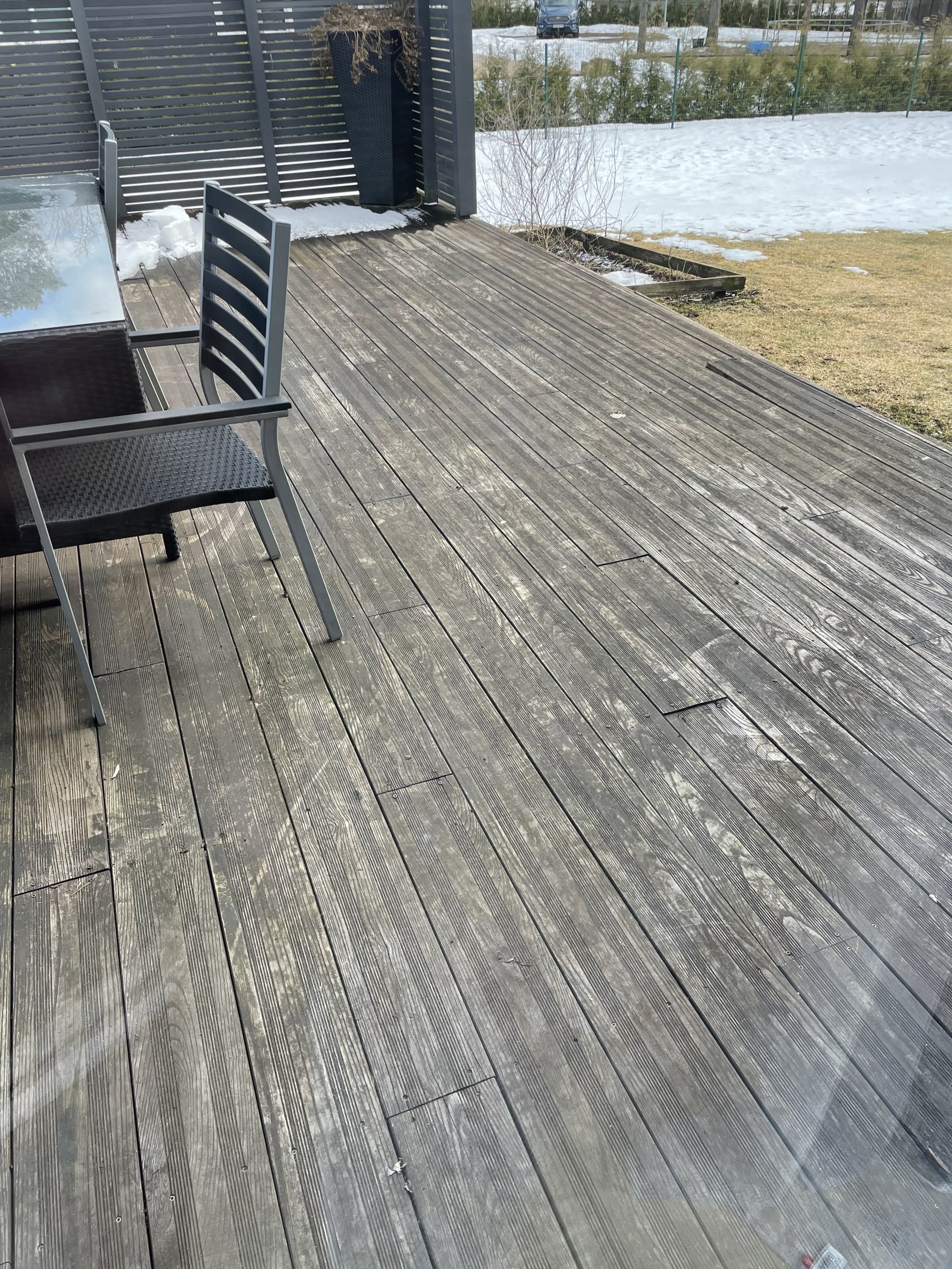 Terrassilauadade allolev toestus on pehkinud ja vajab väljavahetamist. Võib olla tuleb vahetada välja kogu terrass koos laudadega. Kokku on terrasse ca 60m2.