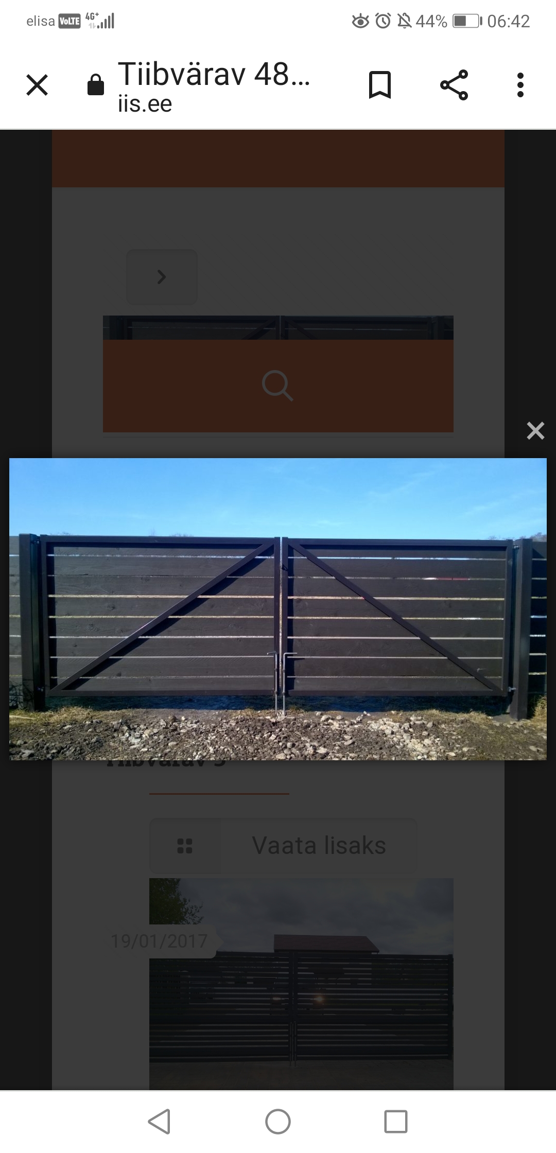 Värava ehitus, metall/nelikant torud ja puit on olemas. Väravapostid kuhu värav läheb on ka juba maa sees olemas.