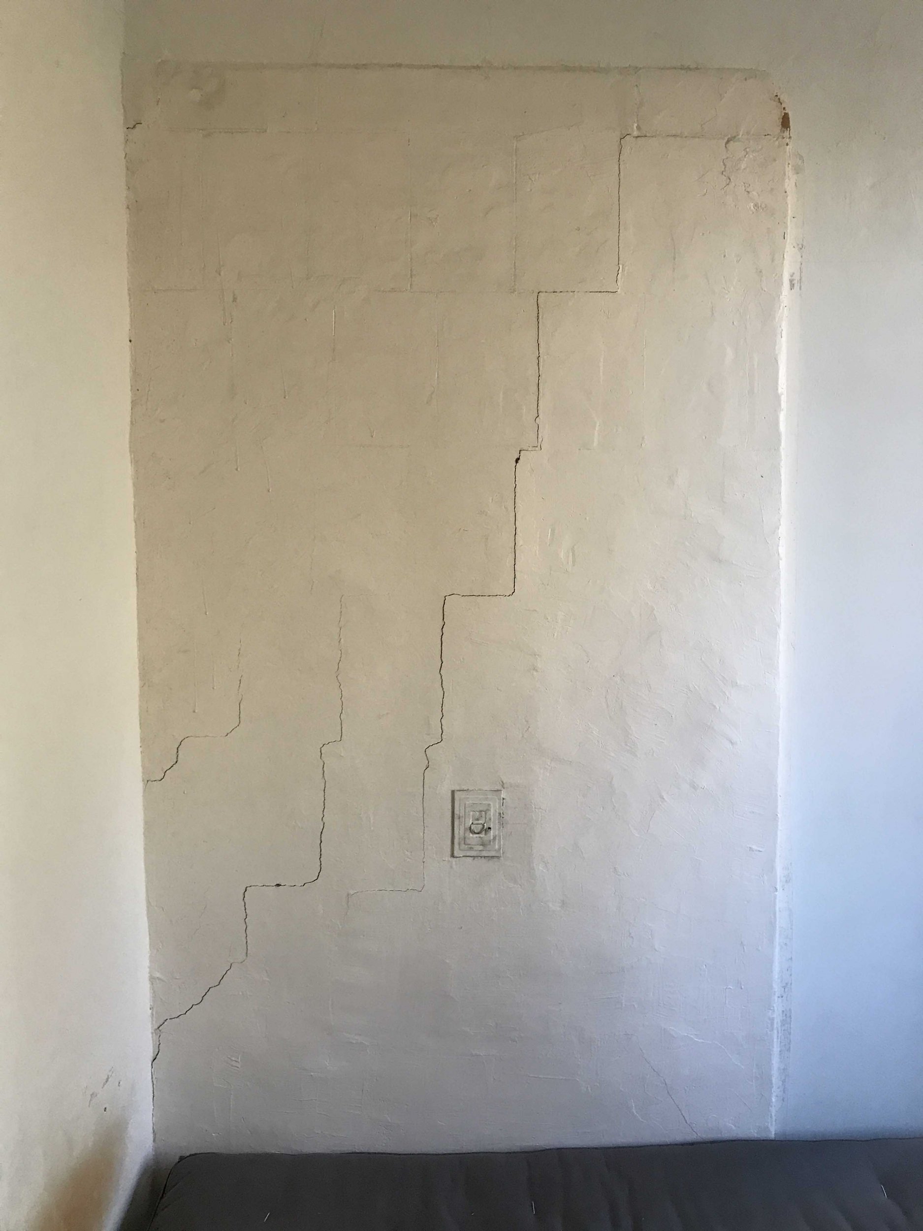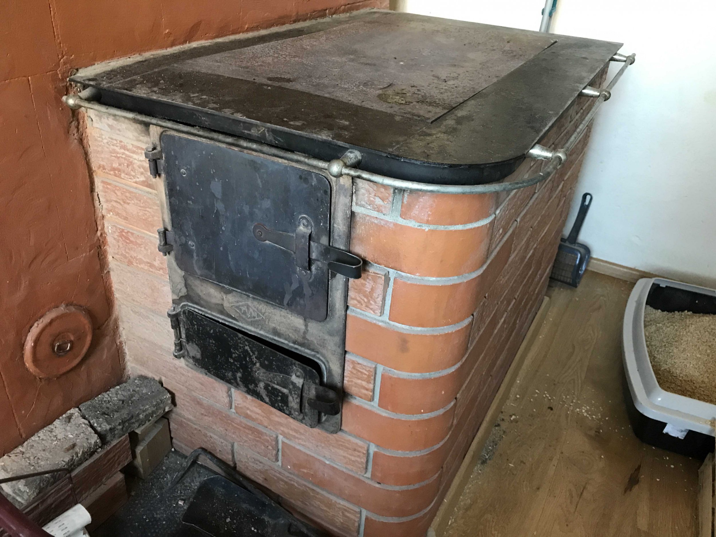 Pliit tundub väljast korralik, seest mõned kivid lahti. Soojamüüris kivid alla langenud, väljast praod näha, ilmselt tuleks vana soojamüür lammutada ja uus ehitada. Tartu kesklinnas teisel korrusel.