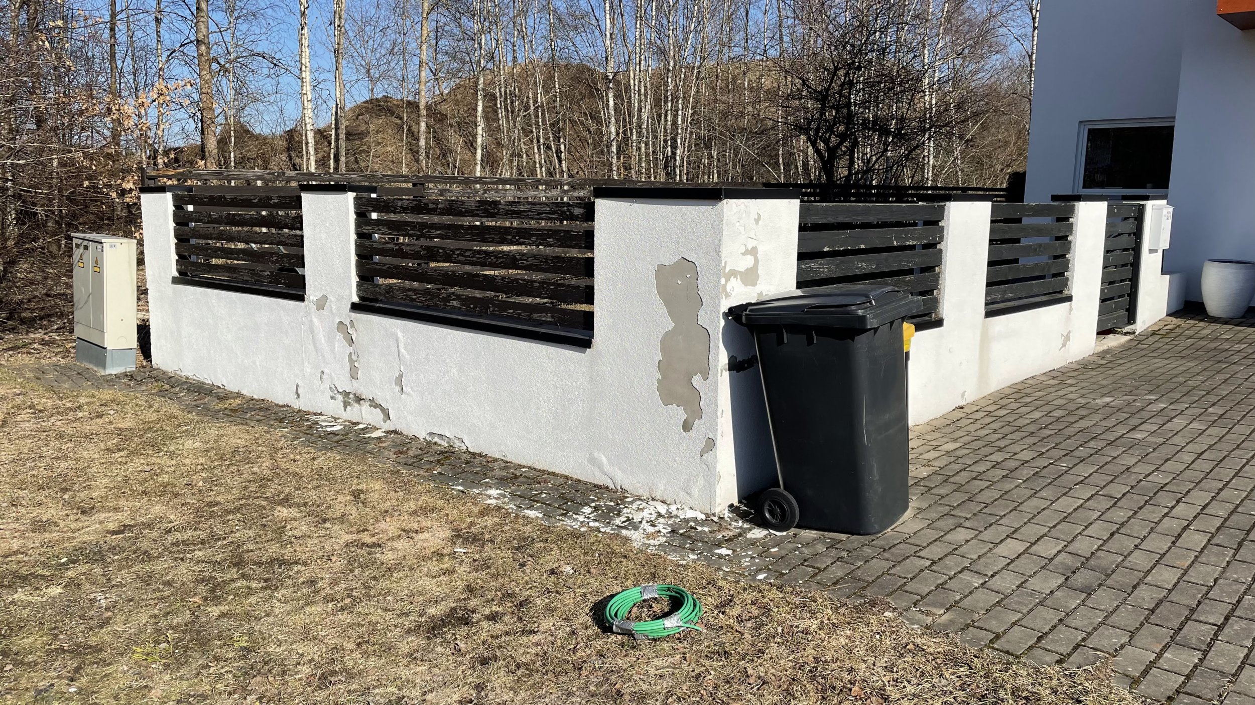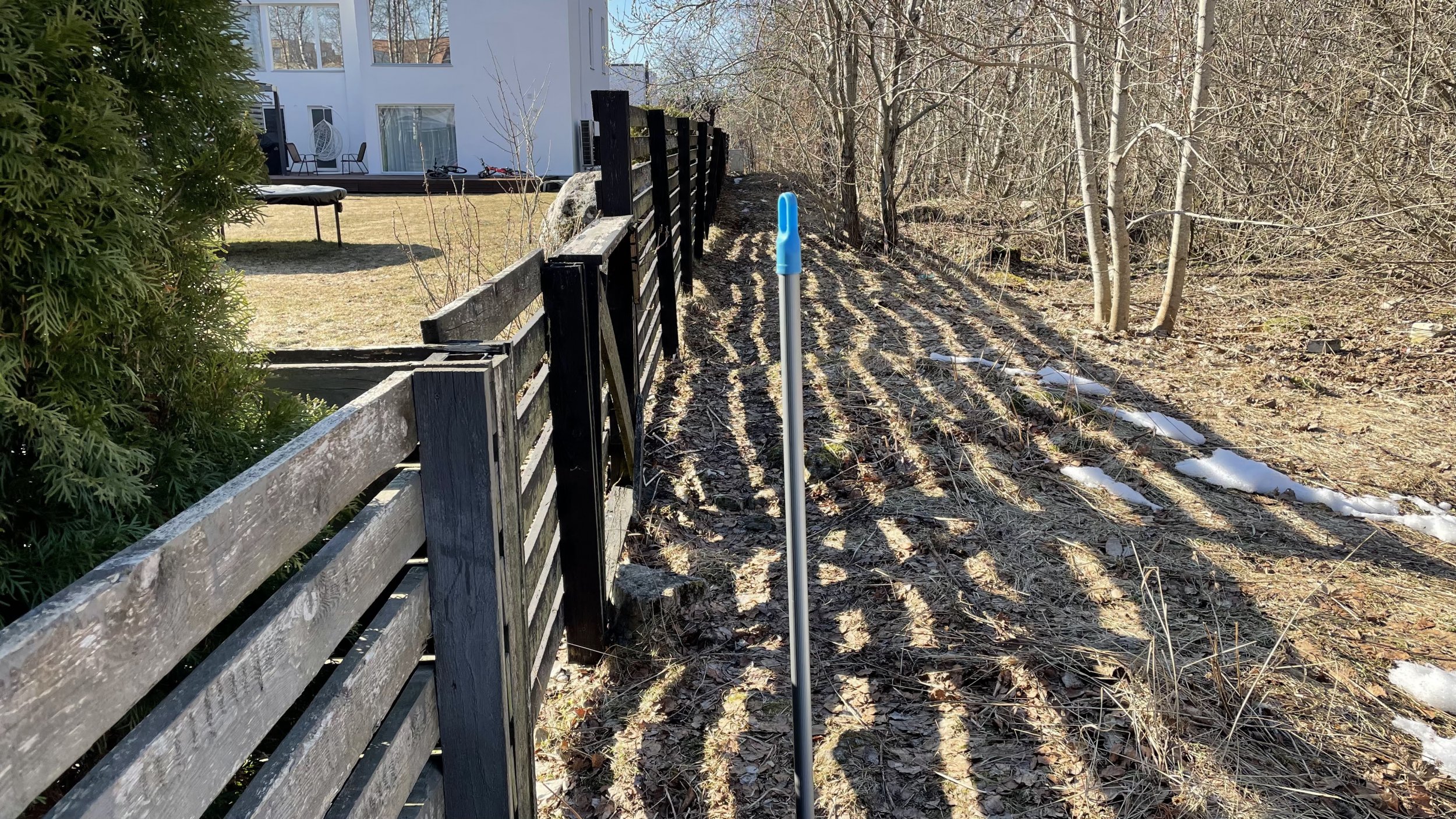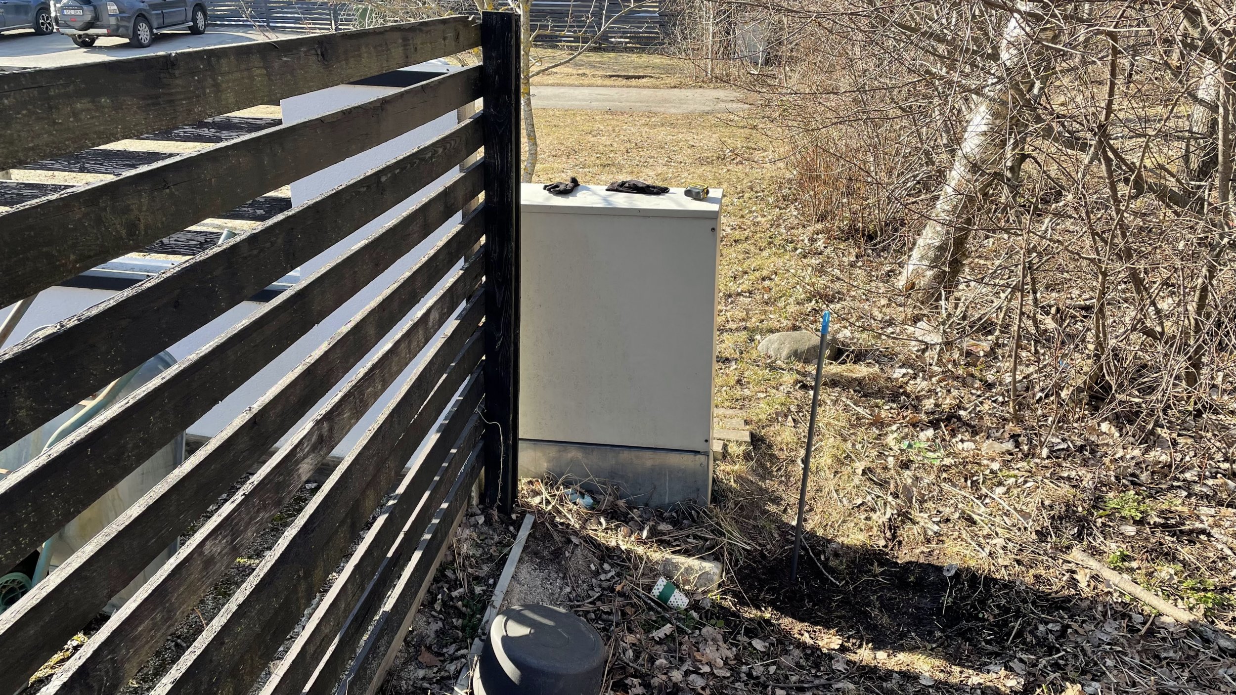 - aed tuleb ehitada võrreldes olemasoleva aiaga uude asukohta. Piltidelt on näha indikatiivne uue aia asukoht sinise korgiga posti näidisel võrreldes olemasoleva aiaga (ühest otsast ca +120cm ja teisest otsast ca +45cm väljaspool tänasest aiast). Mõõdistuse protokoll olemas, metallpulgad maa sees.
