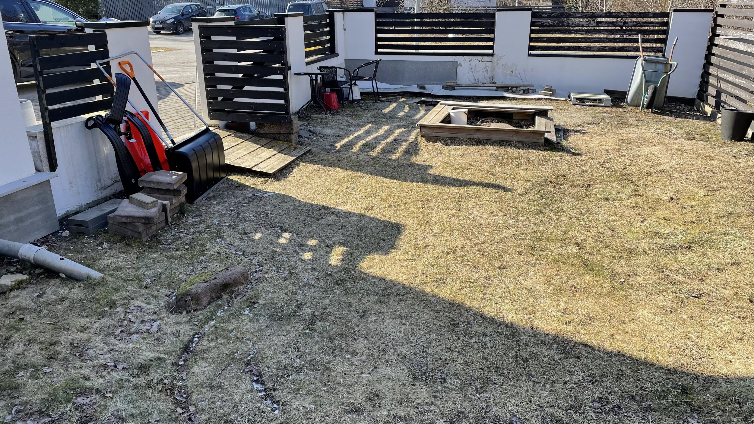 - kõnealusest alast (maja nurgast kuni aiani - maakaardil märgitud ala ca 48m2) eemaldada liivakast (20cm liiva + pinnapealne puitkarkass)