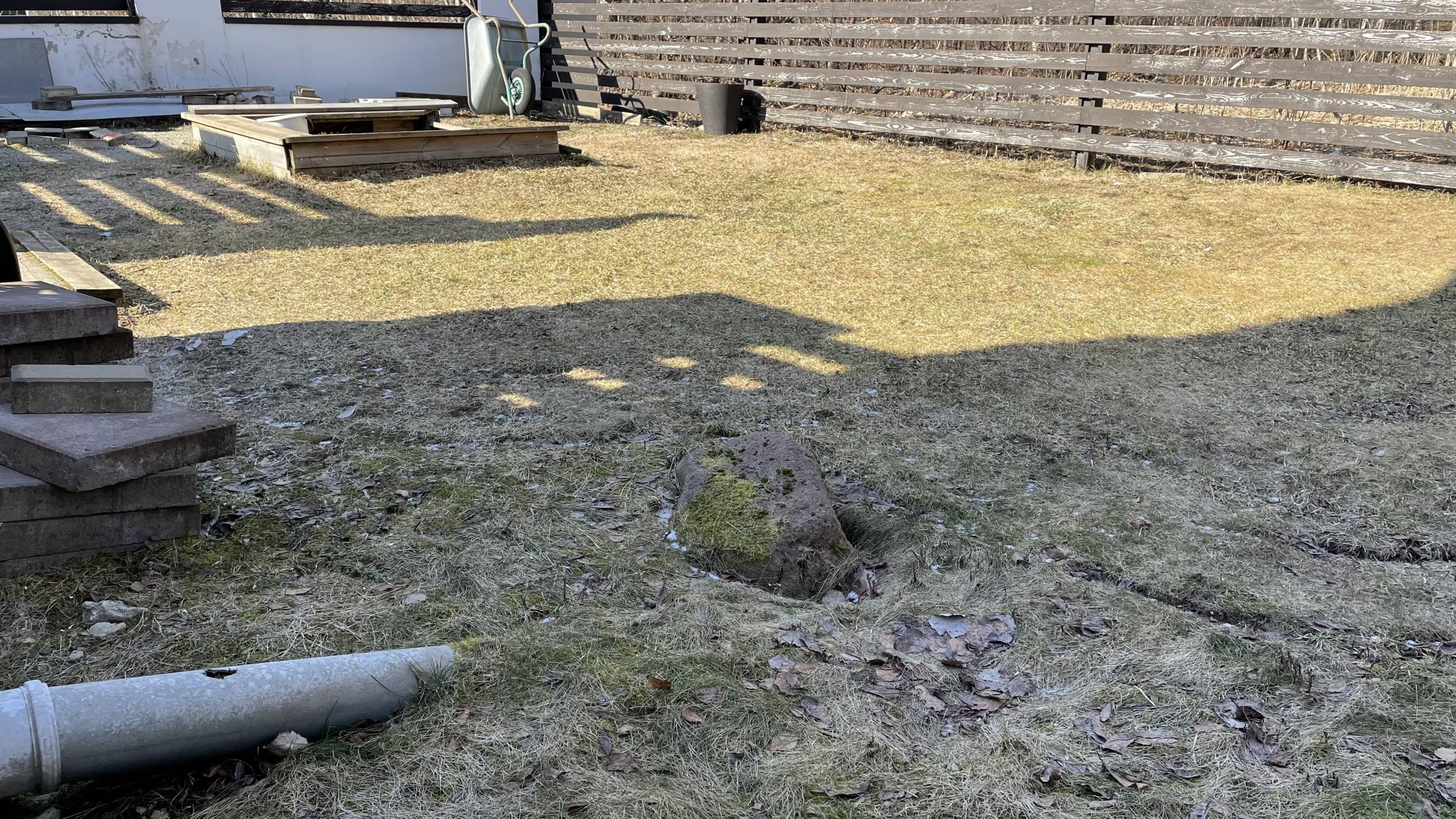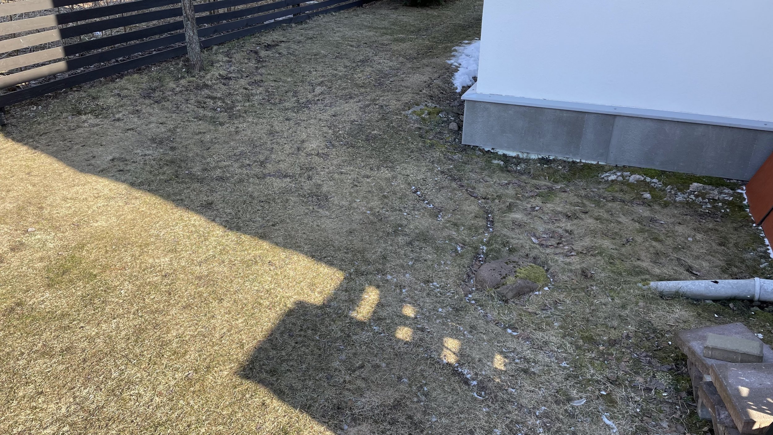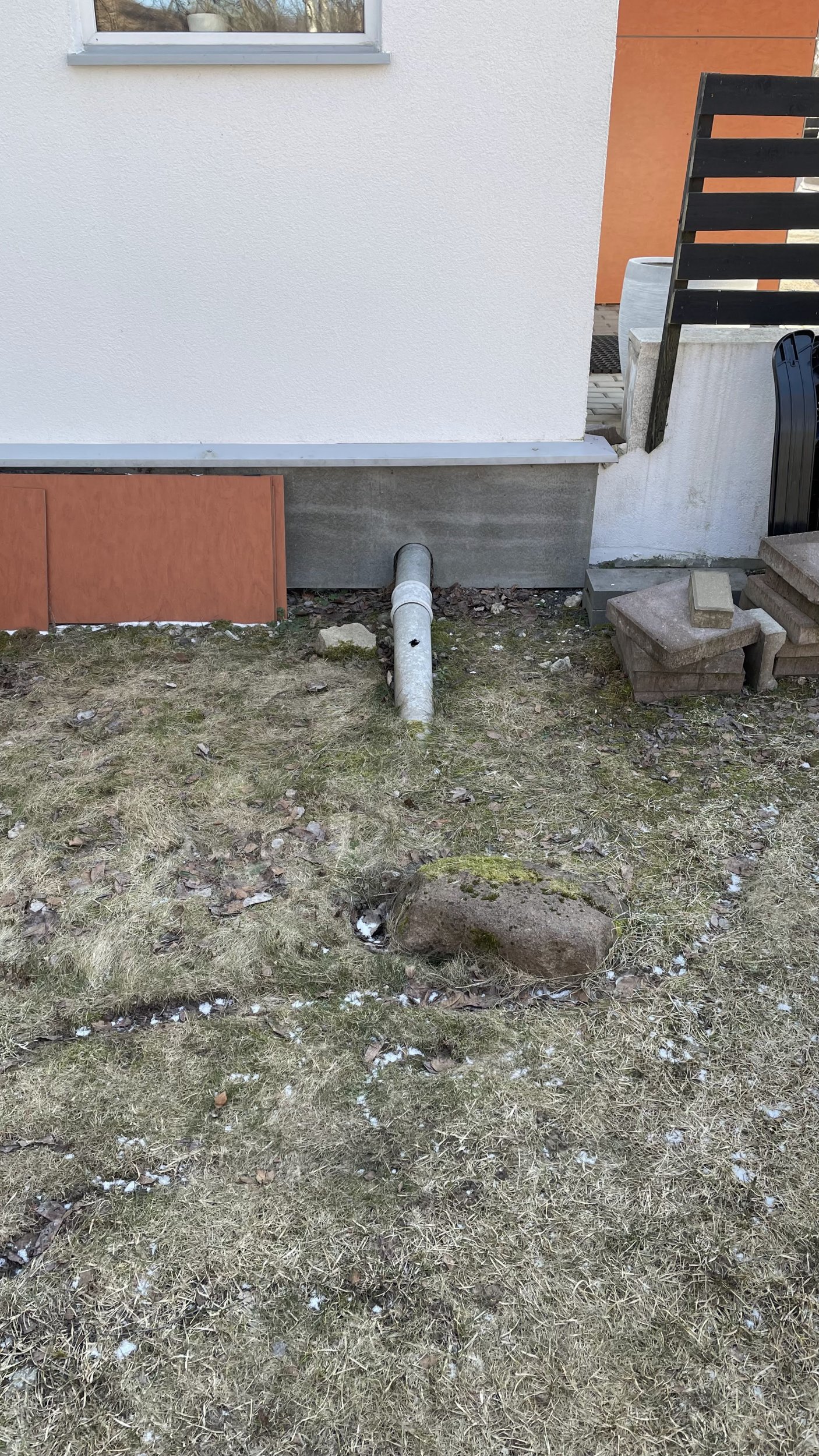 - täna imbub katuse sadevesi maa sisse kivide vahele, toru väljub vundamendist. Toru tuleb viia maa alla nii lähedalt majale kui võimalik.