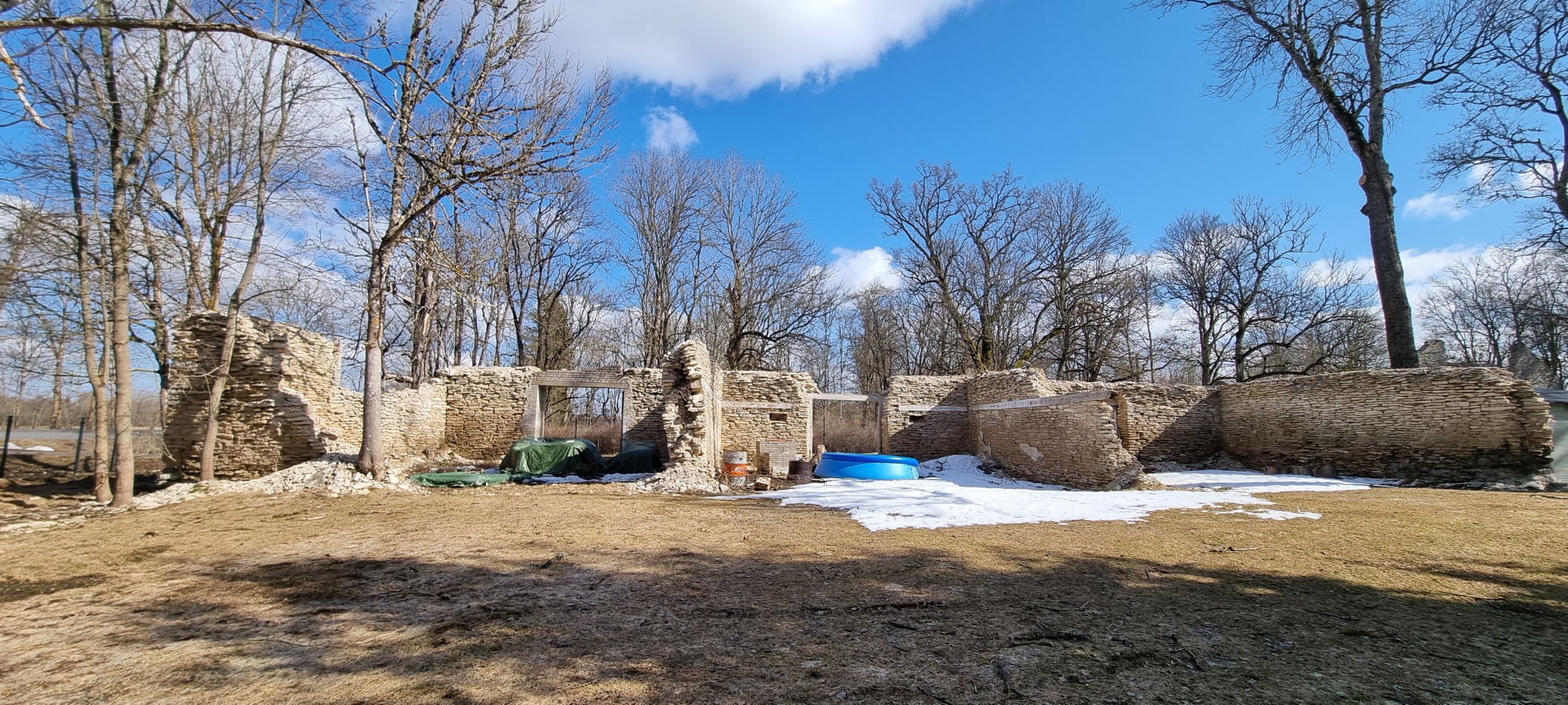 Paekivist müüris pesta nt survepesuga, krohvida vuugid (ei pea seina siledaks krohvima ). Eesmärk on seinad krohvida, et rohkem ei variseks. Kohati on vaja ka lahtisi kive eemaldada ja auke täis müürida.