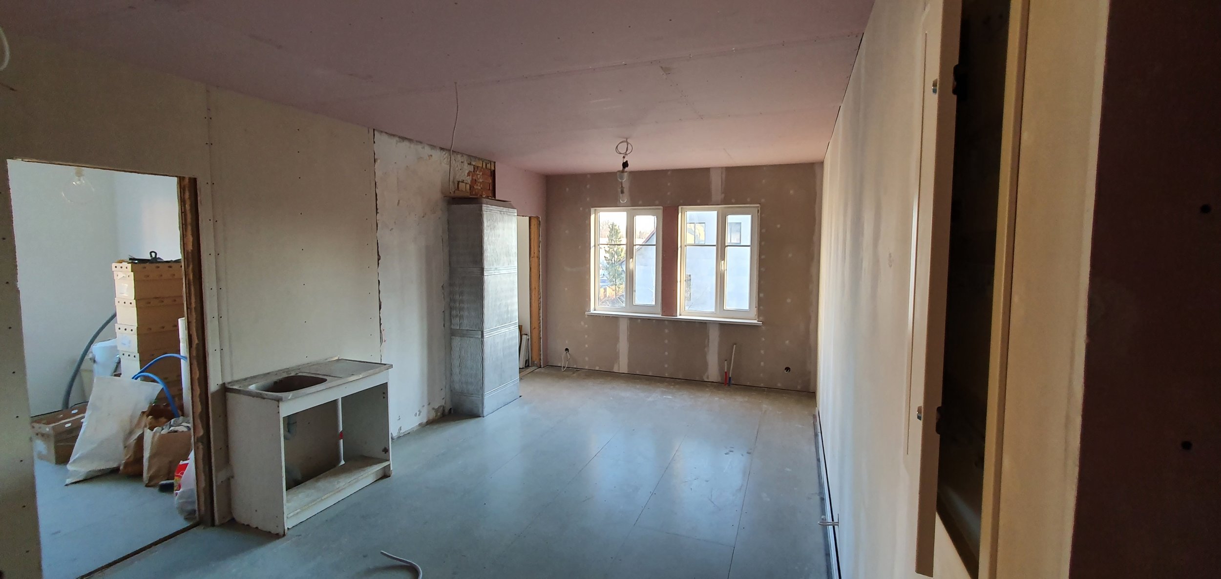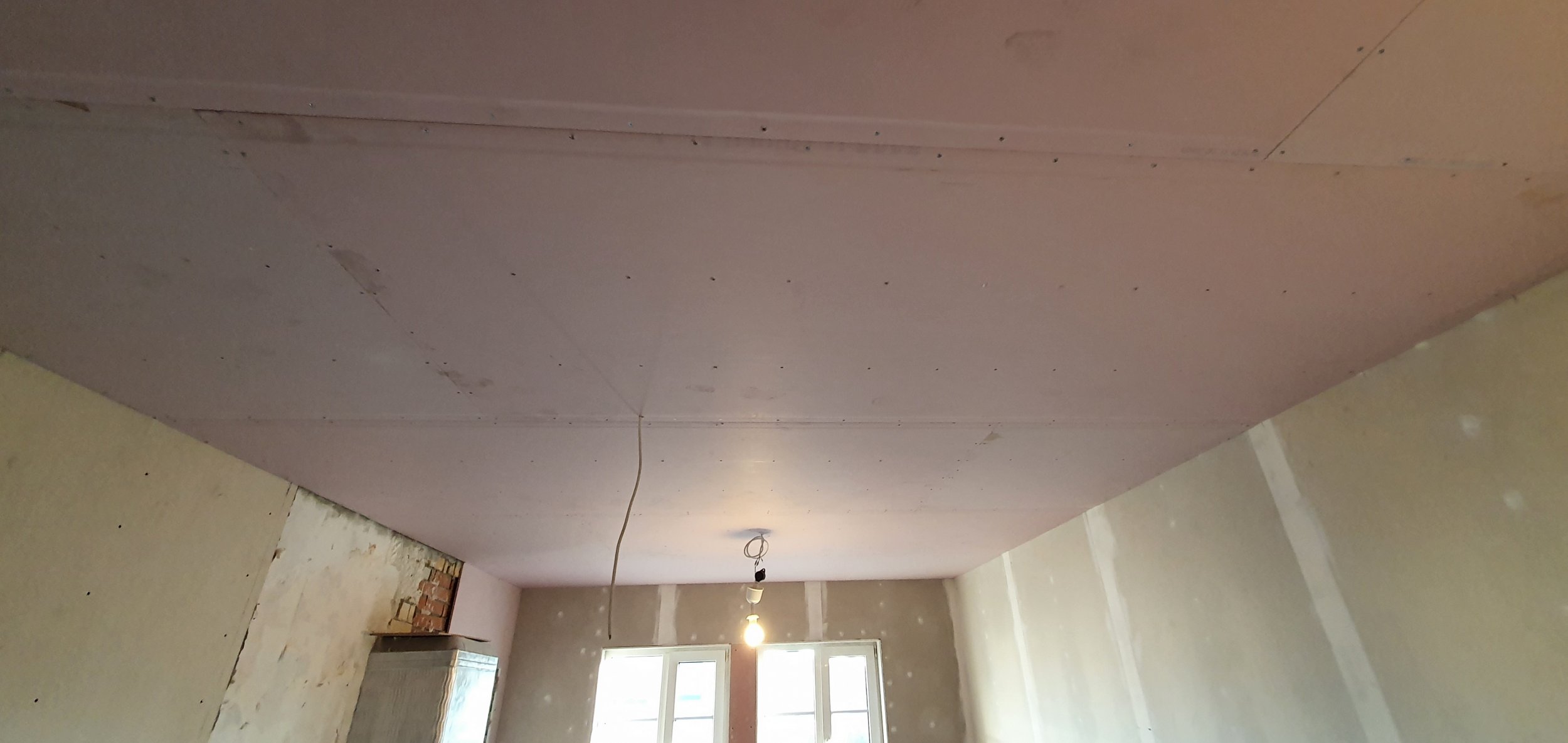Lauspahteldus seintele ja laele. Kahe akna- ja ühe uksepale viimistlus. Korstnajala ümbruse krohvimine kipseinaga ühte joonde. Pärast pahteldust kruntvärviga katmine.
