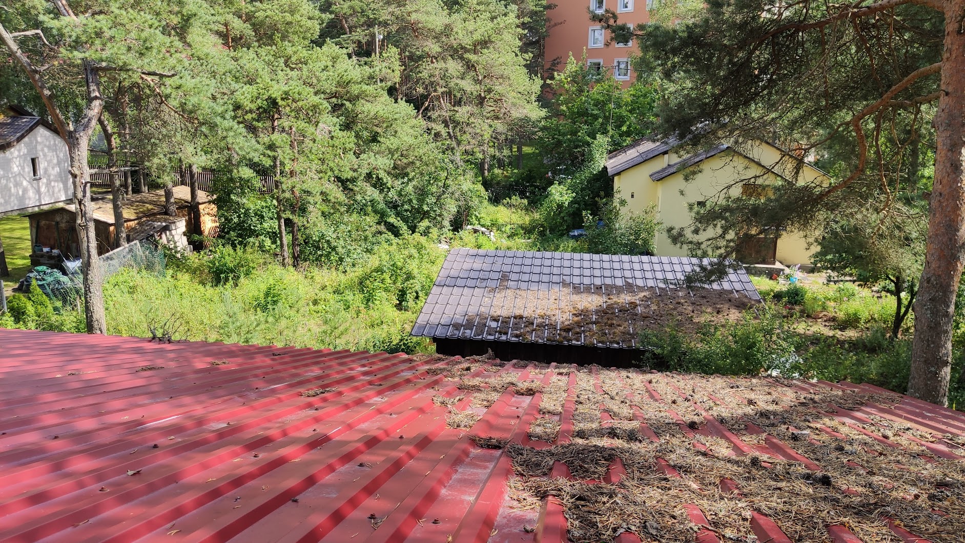 Eemaldasime katuselt metallkorstna, mille tõttu on metallkatuse 2 paani vahel suurem auk.