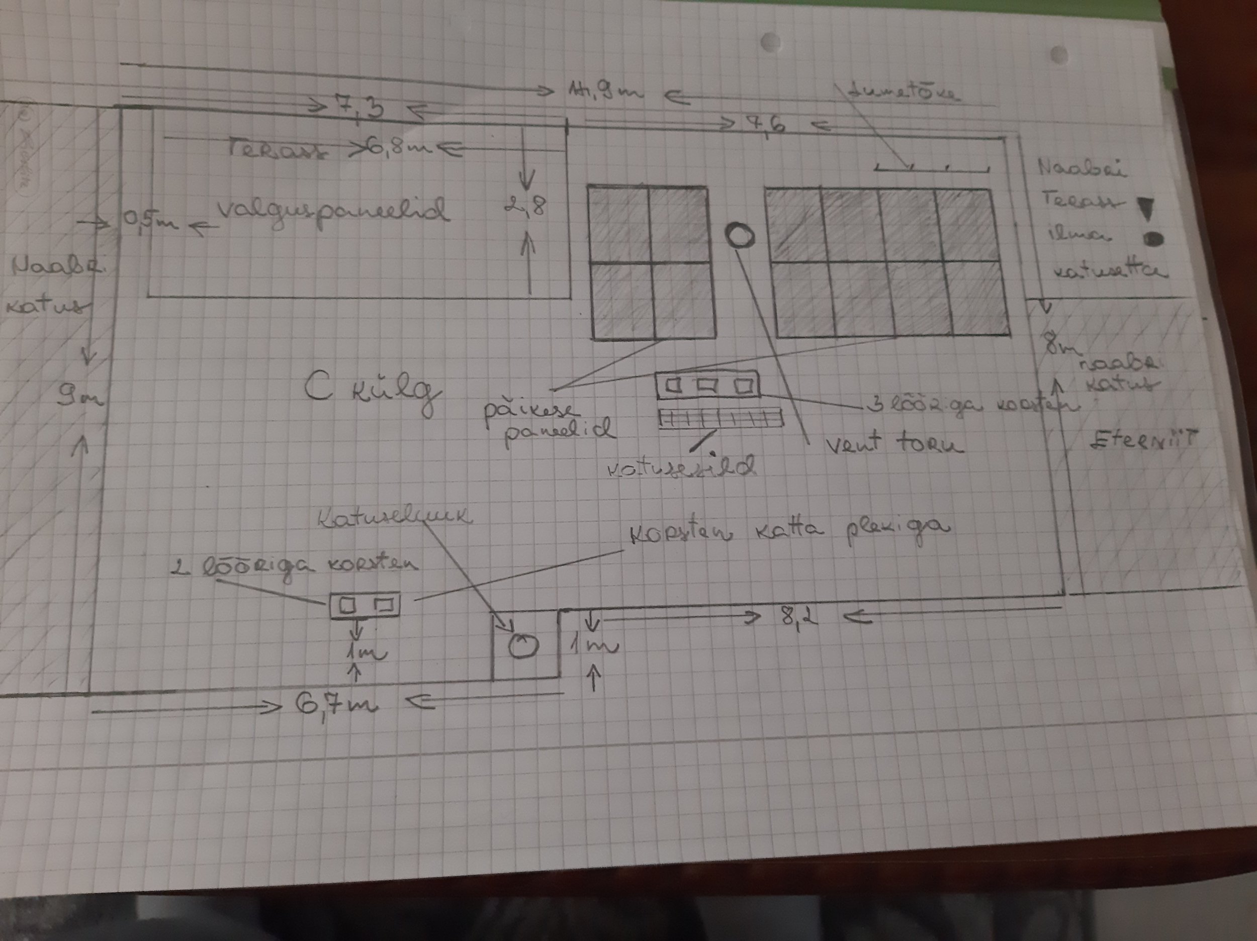 Lisaks olemas terassikatusele uued plaadid.Päikesepaneelid muretsen ka ise ja elektritööd teen ise(tarvis ainult paigaldus)
