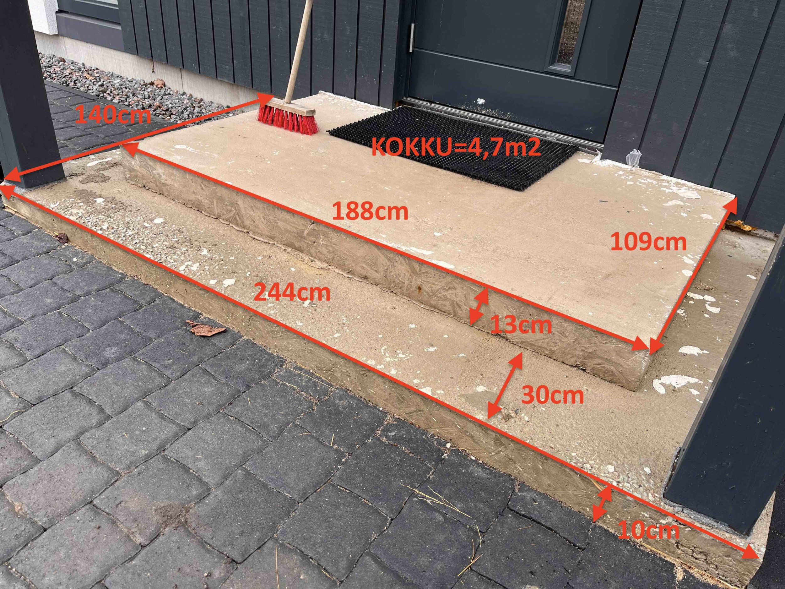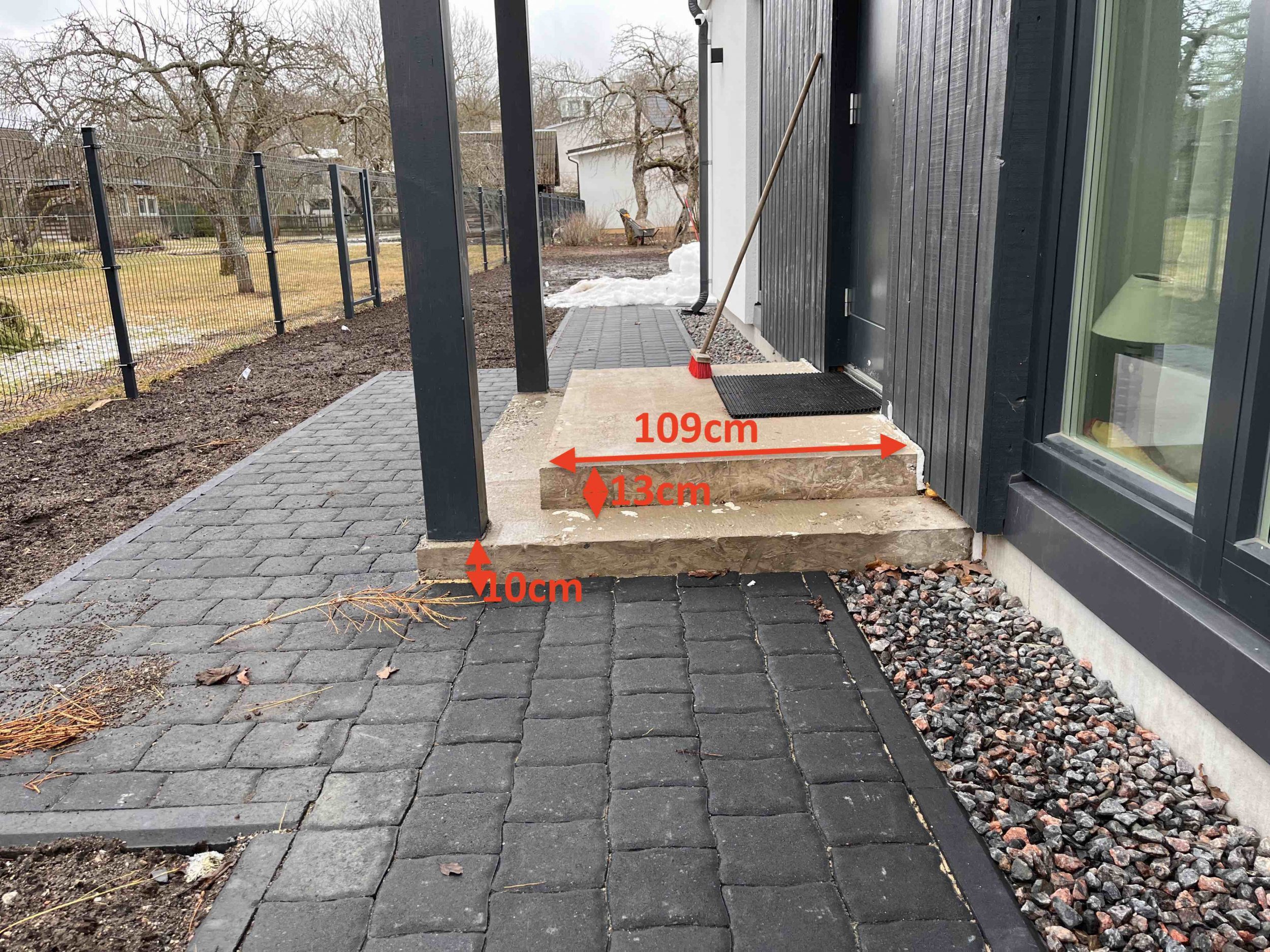 3 välistrepi kehandile kiviplaatide paigaldamine. Kiviplaadid sirgete servadega, paksusega 20mm.