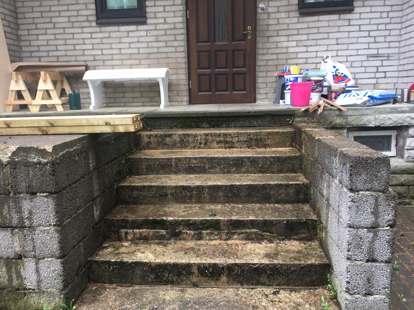 Maja ees välistrepp ja terrassi trepi viimistlus.