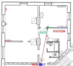 Samuti vaja vedada punasega näidatud noolega suunas juhtmed kilpi. Kilbini kaabel ei ulatu ning oleks vaja pikendada.