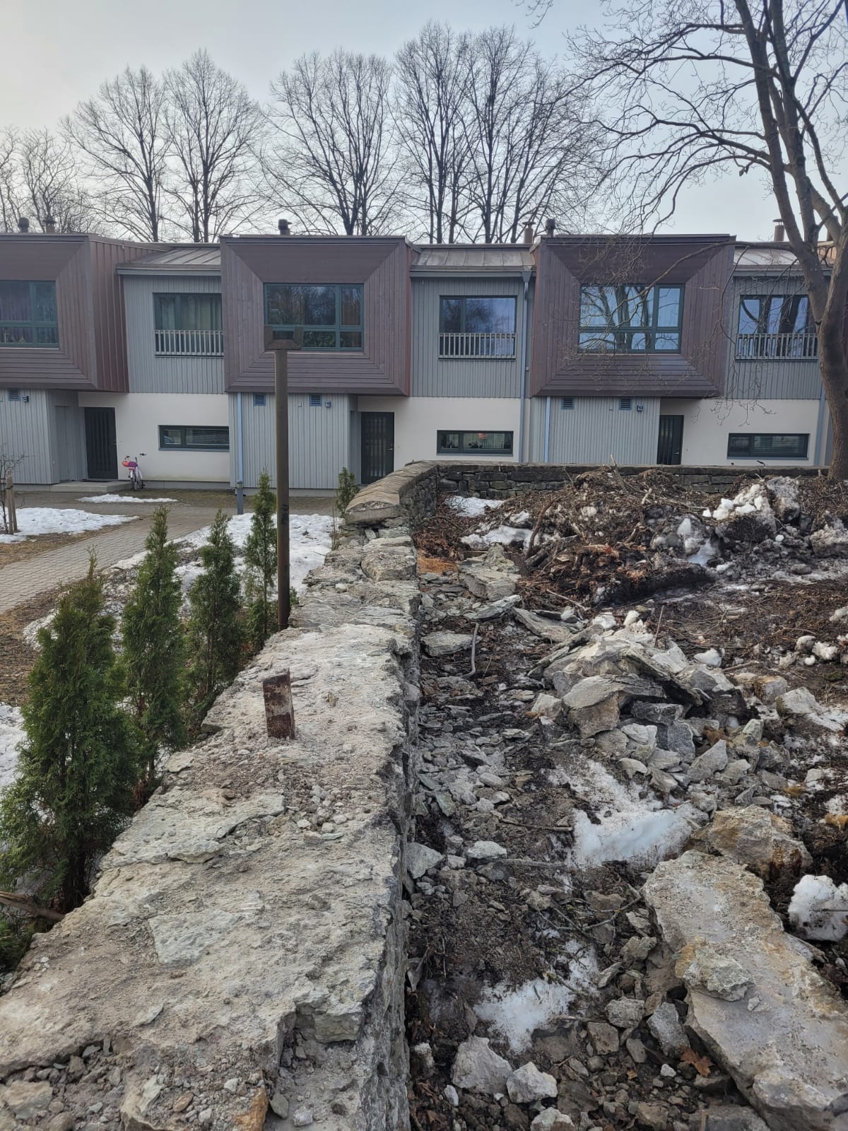 Paekivimüürile hüdroisolatsiooni mati paigaldus.