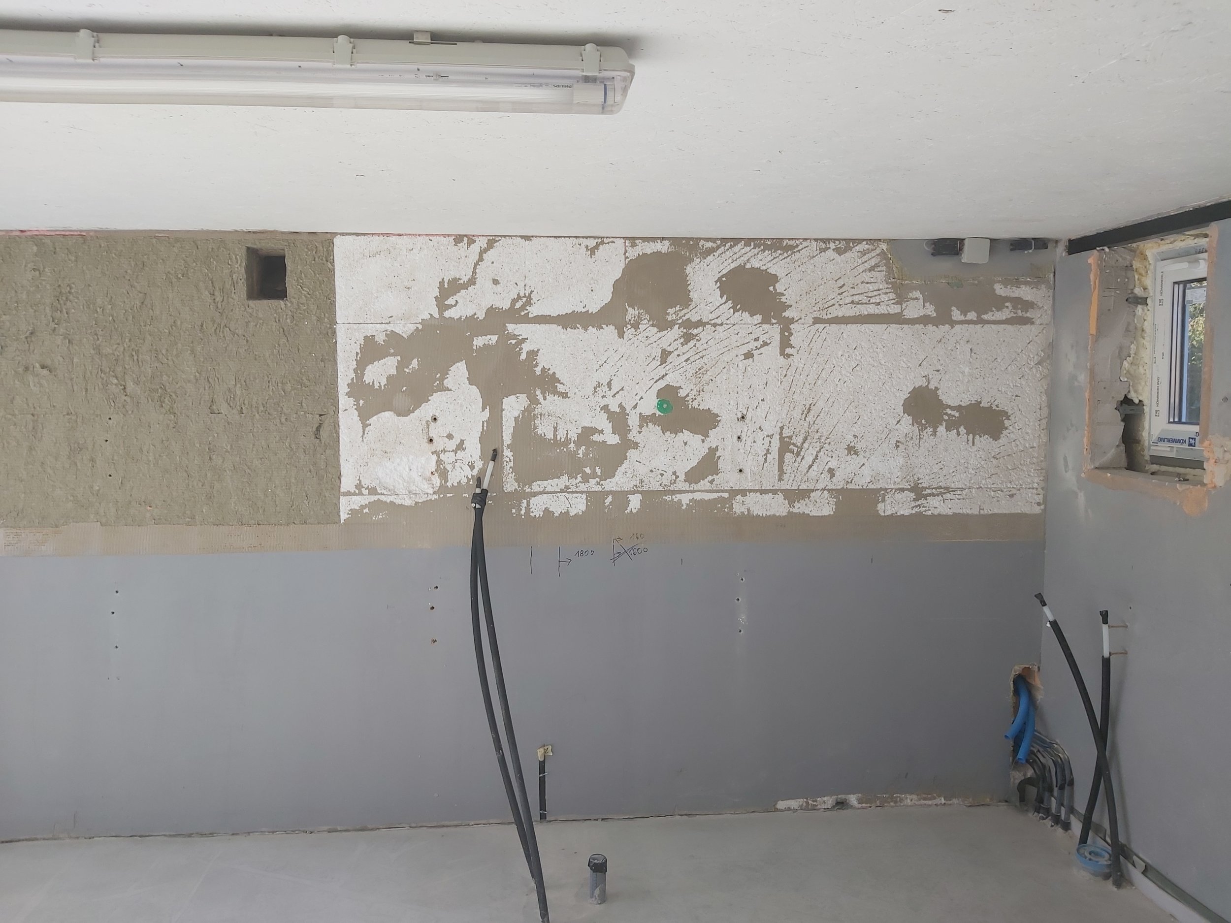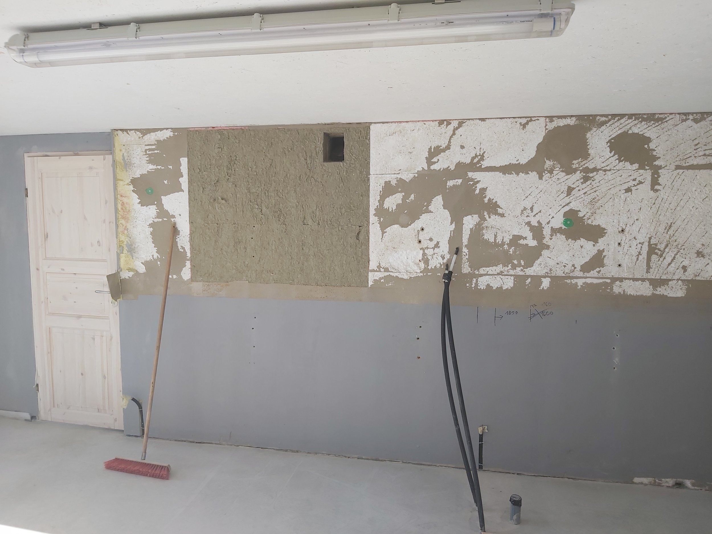 3) võrguga uuesti katta ühe seina ülemine osa (vt fotot) ja krohvida/pahteldada kogu see sein värvieelsesse korda;