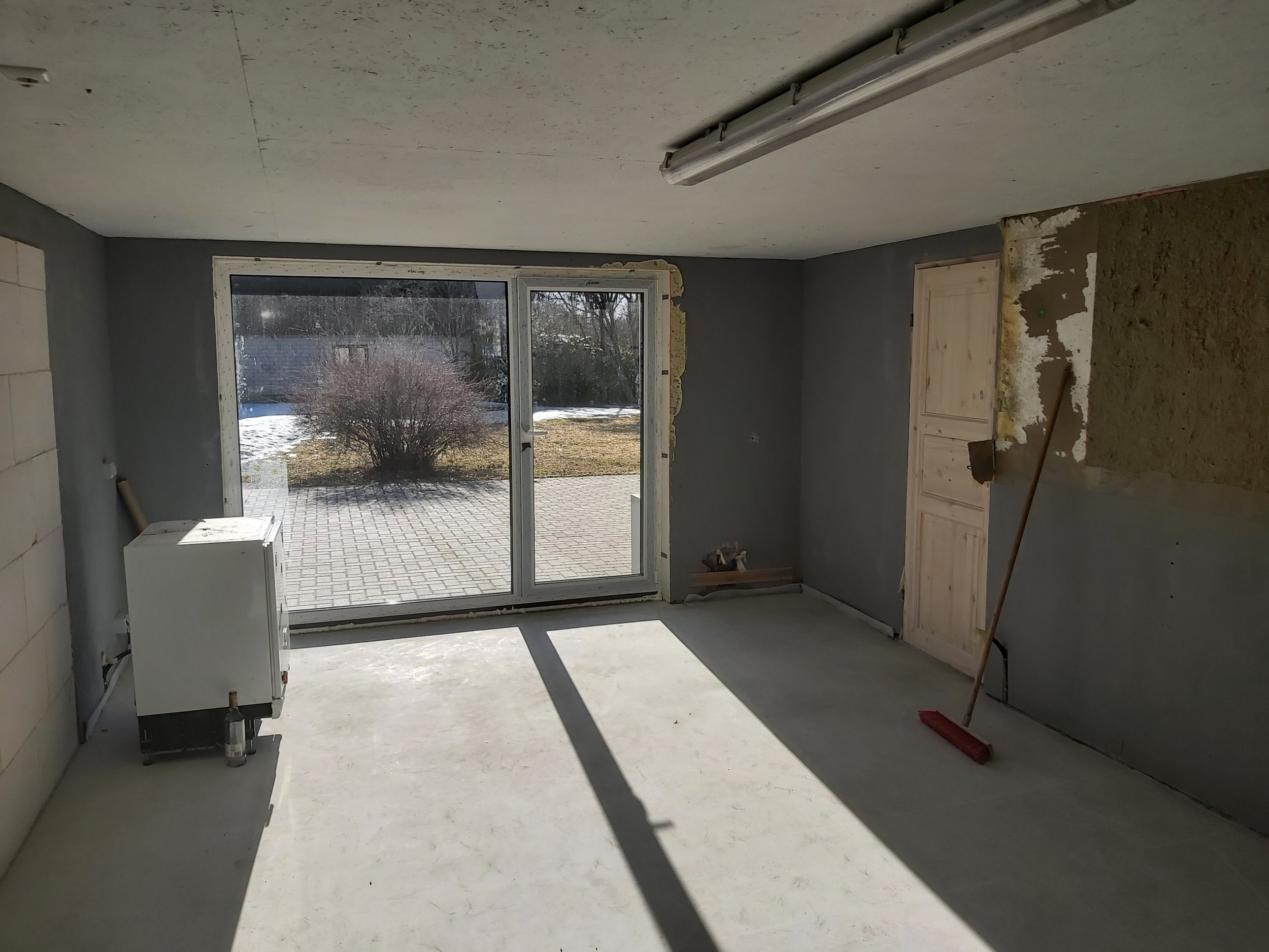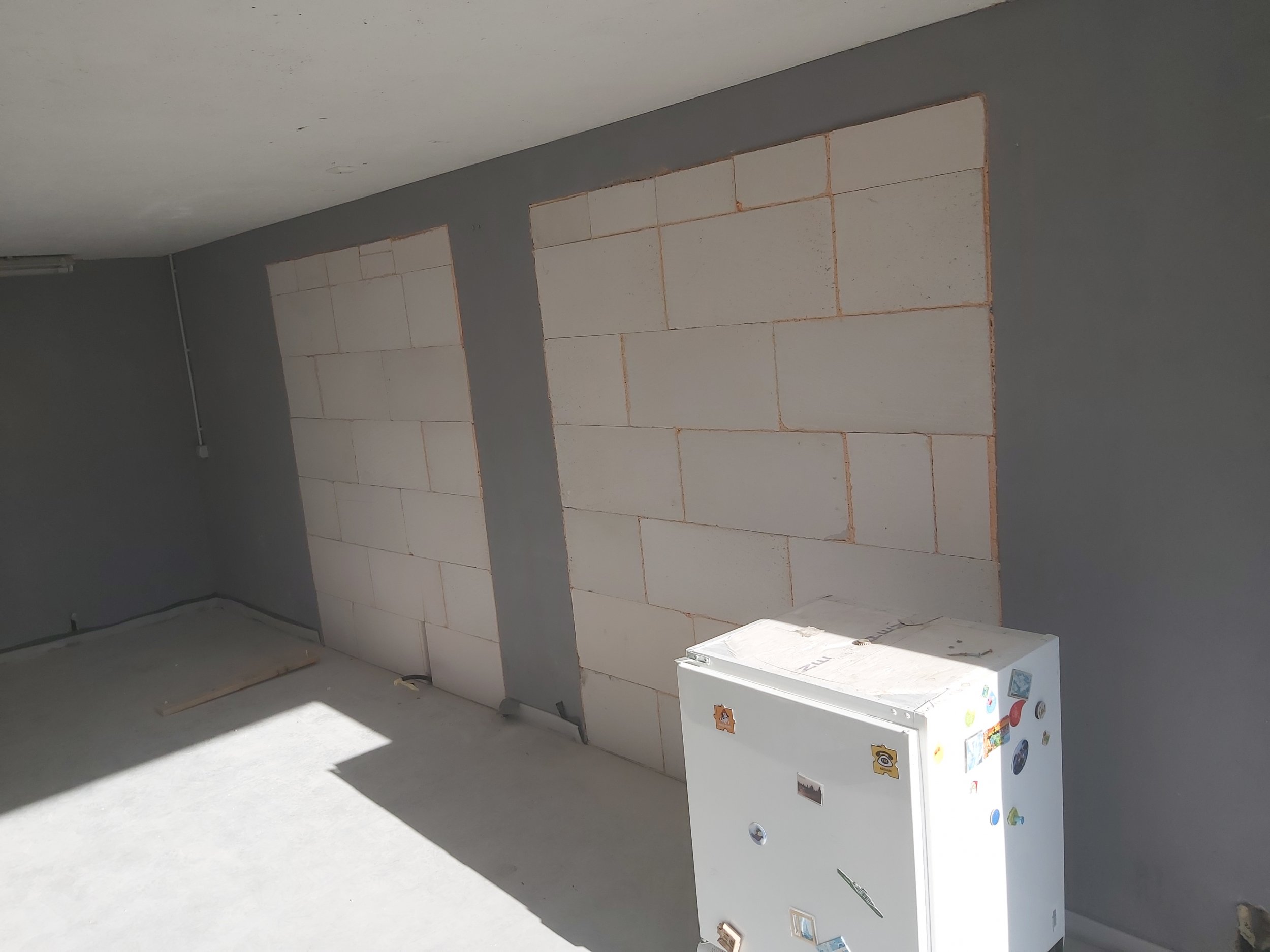2) küproksein (karkass kuni pahteldus (valmis kruntvärviks) ca 6 m x 2,1 m (kinni müüritud osa peale);
