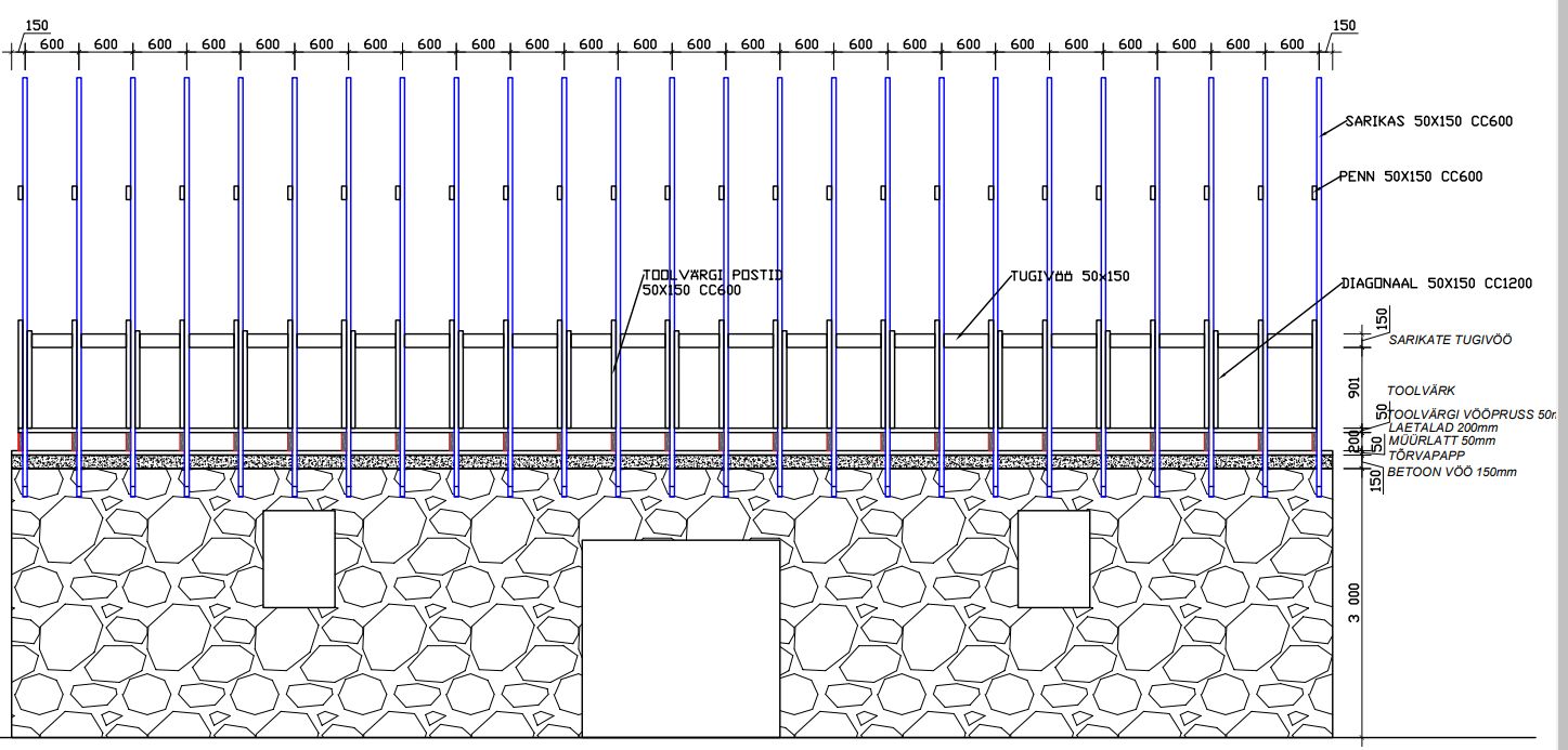 Valada müürile 10 cm kõrgune ja 70cm laiune raudarmatuuriga vöö