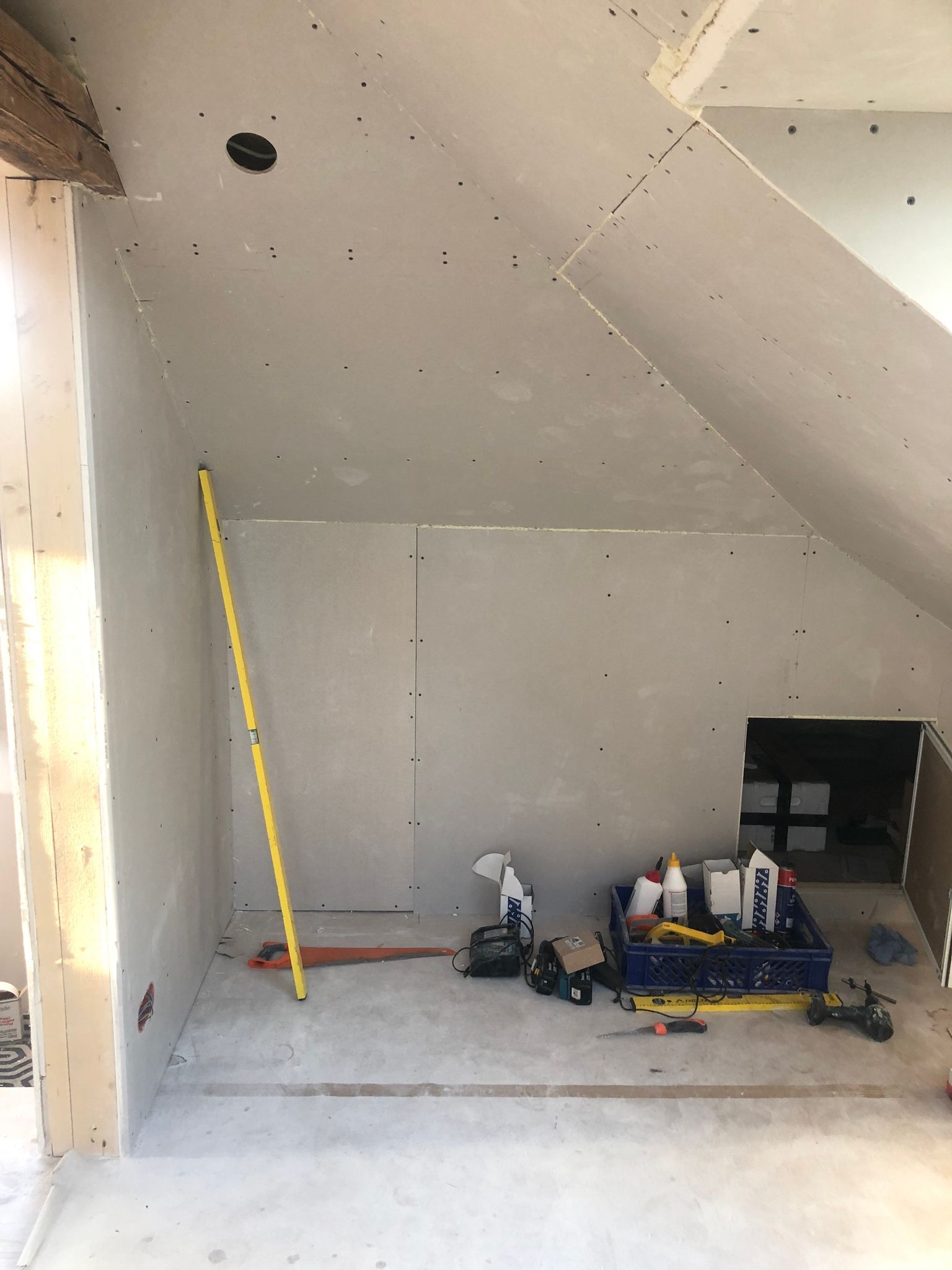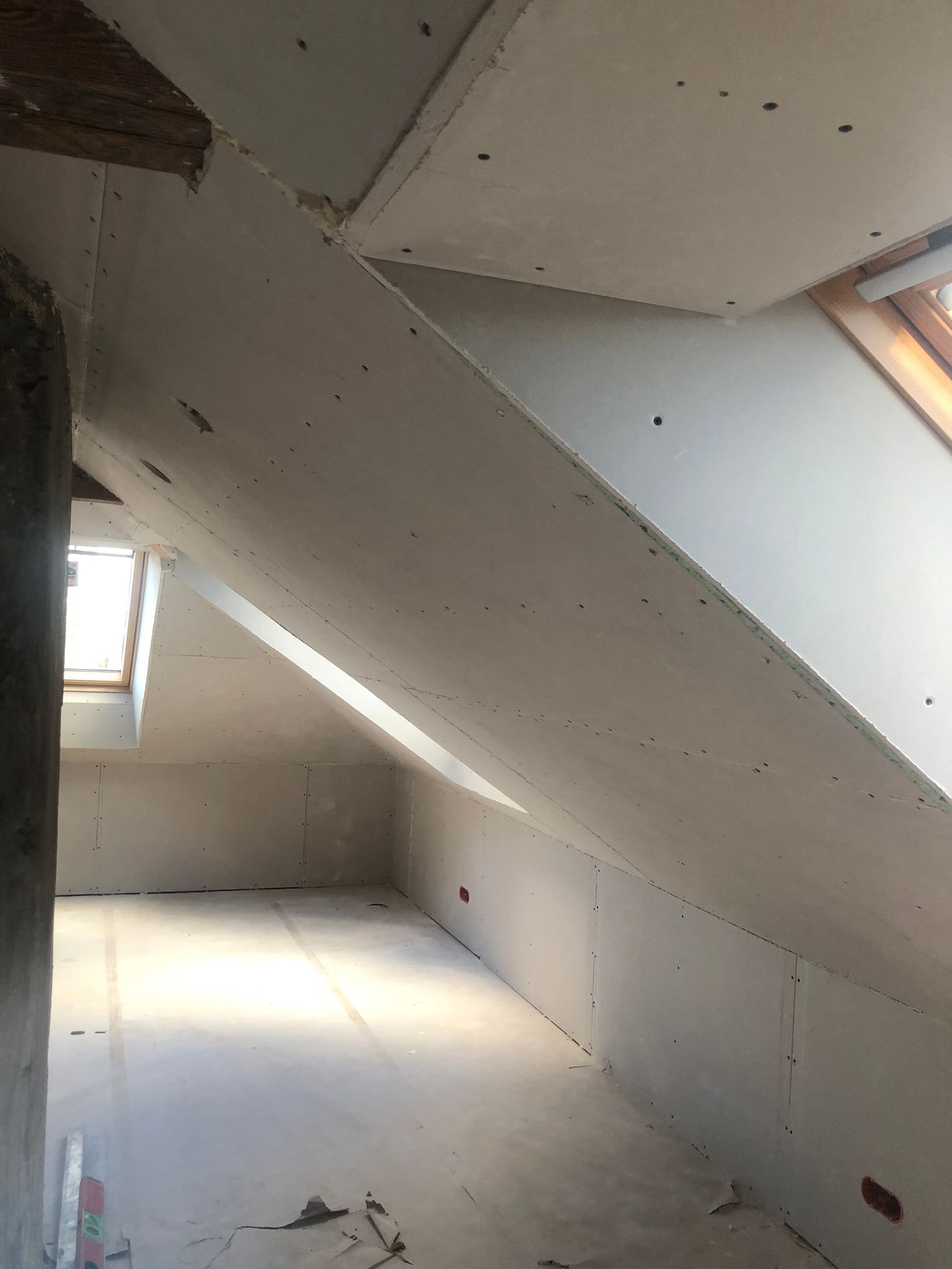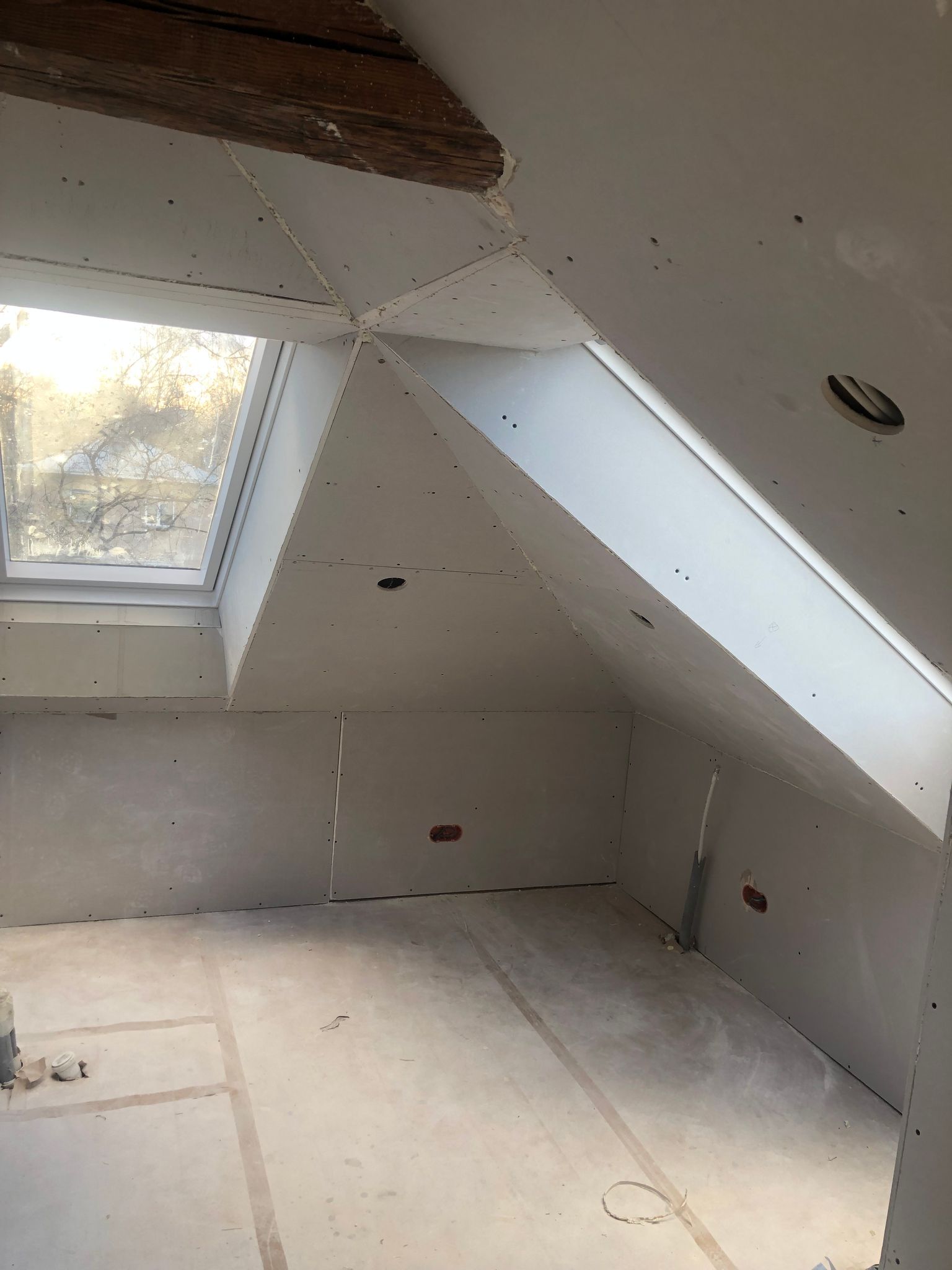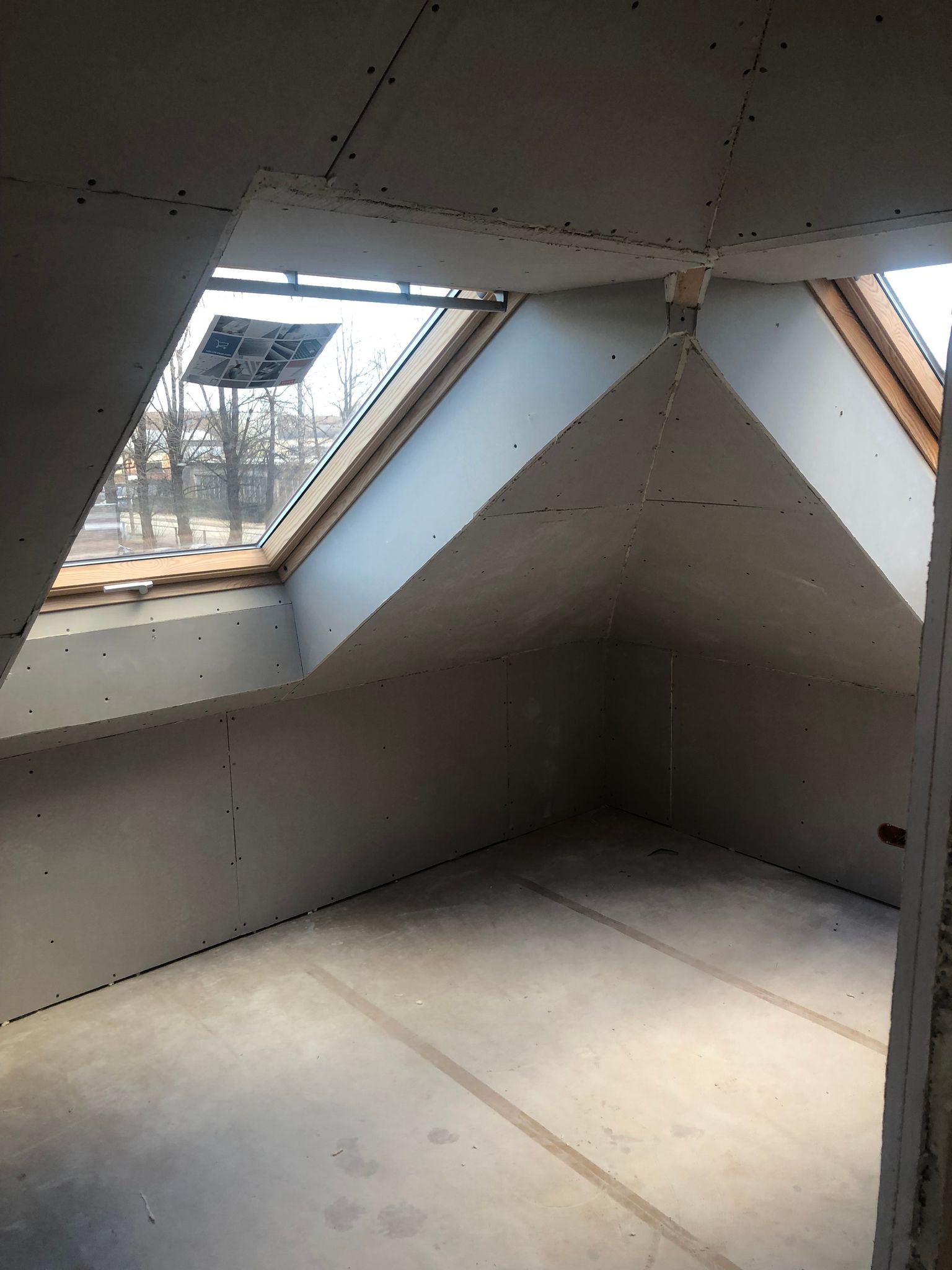Kahekordse Karlova puumaja pööningule rajatud eluruumide viimistlemine. Seinte ja kaldlagede pahteldamine, kruntimine ja värvimine. Kõik pinnad lähevad värvi alla. Kokku umbes 100m2.