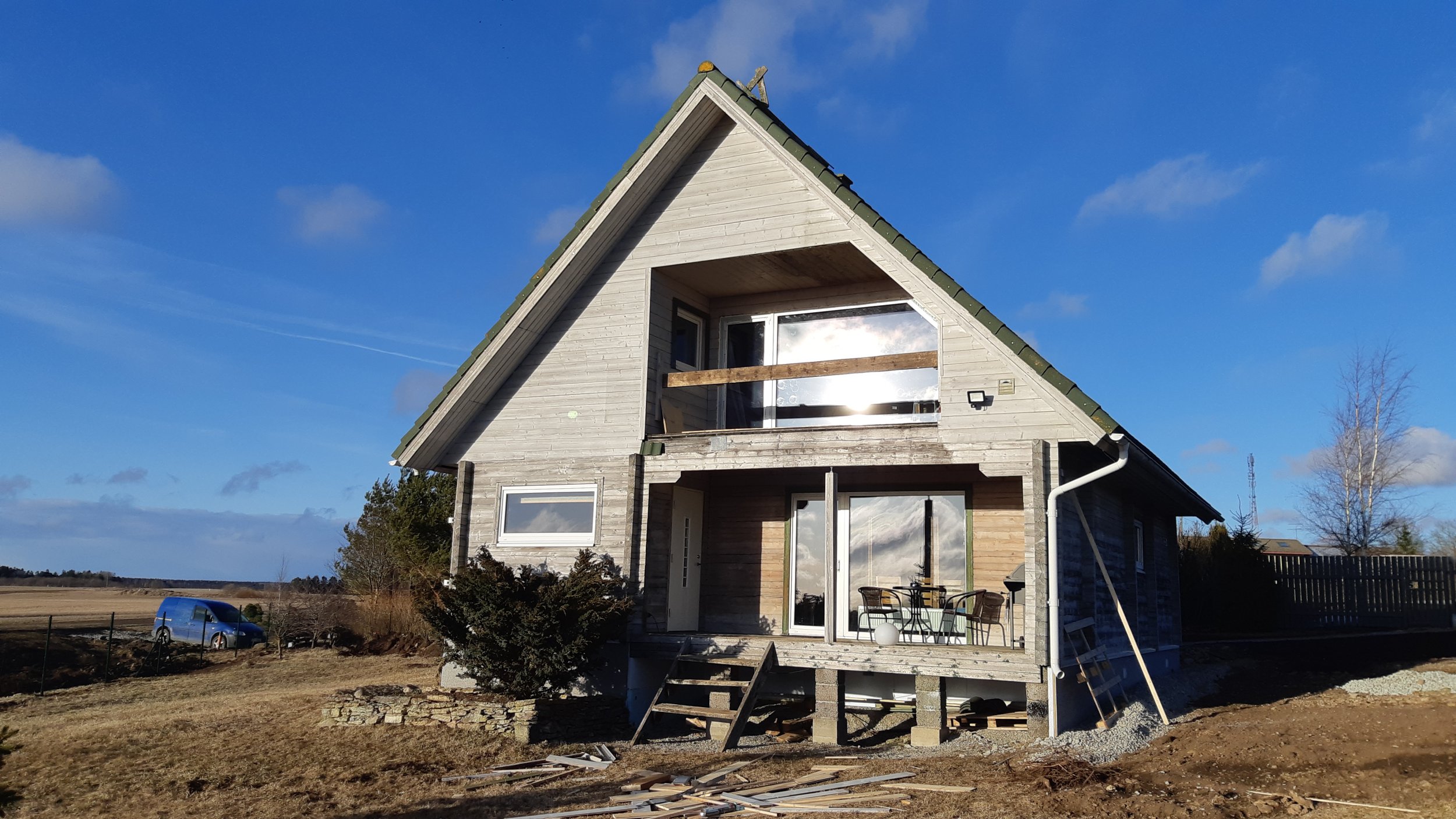 Oleks vaja soojustada, lisada tuuletõke ja viimistleda värvitud voodrilauaga 2006 aastal ehitatud eramu.