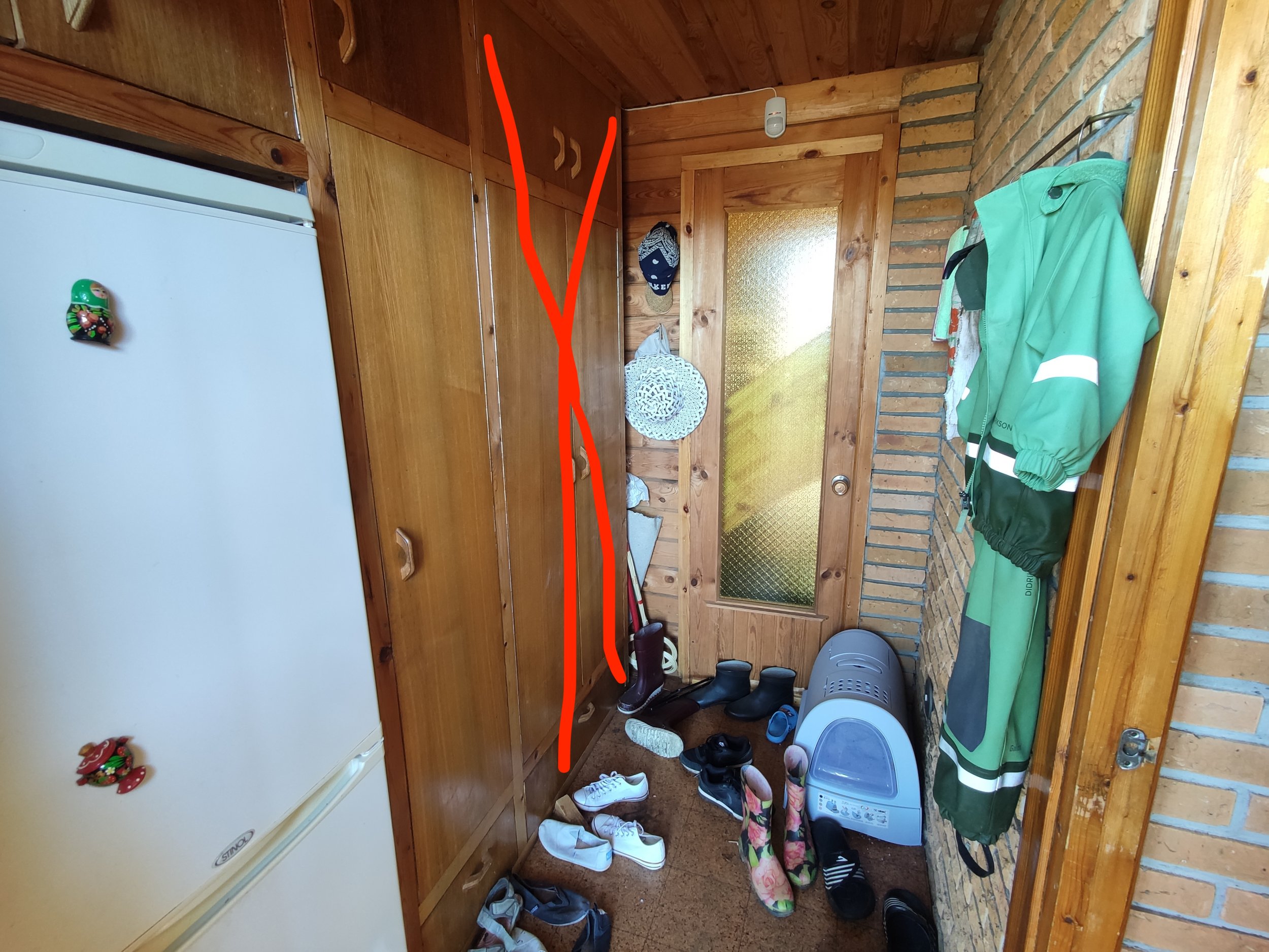 Pildil ristiga märgitud kapiosa lahti lammutada, olemasoleva klaasiga ukse ava kinni ehitada. Ja ees pool hoopis ehitada uue seina koos uksega. Koridori laius on 108 cm. Kogu selle ümberehitamise mõte on jagada koridori kaheks osaks (uks vahel). Huvitab tööhind ilma materjalideta. Ehitusprügi ära viimine tellija kulul.