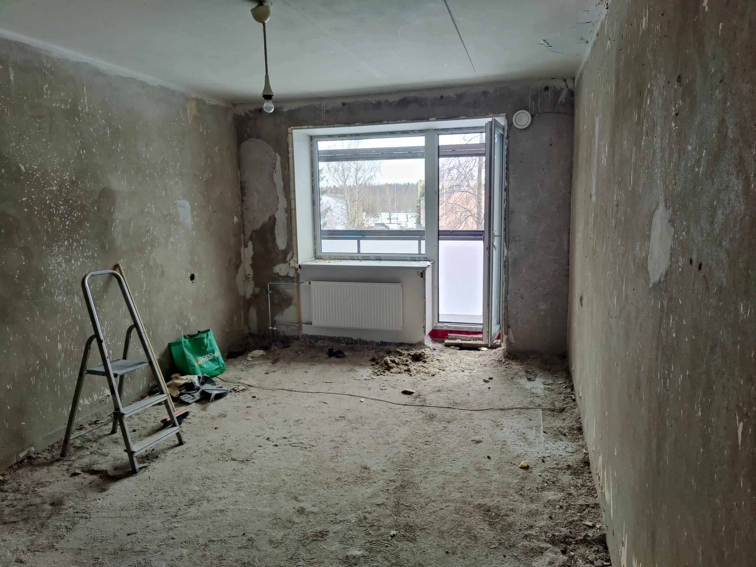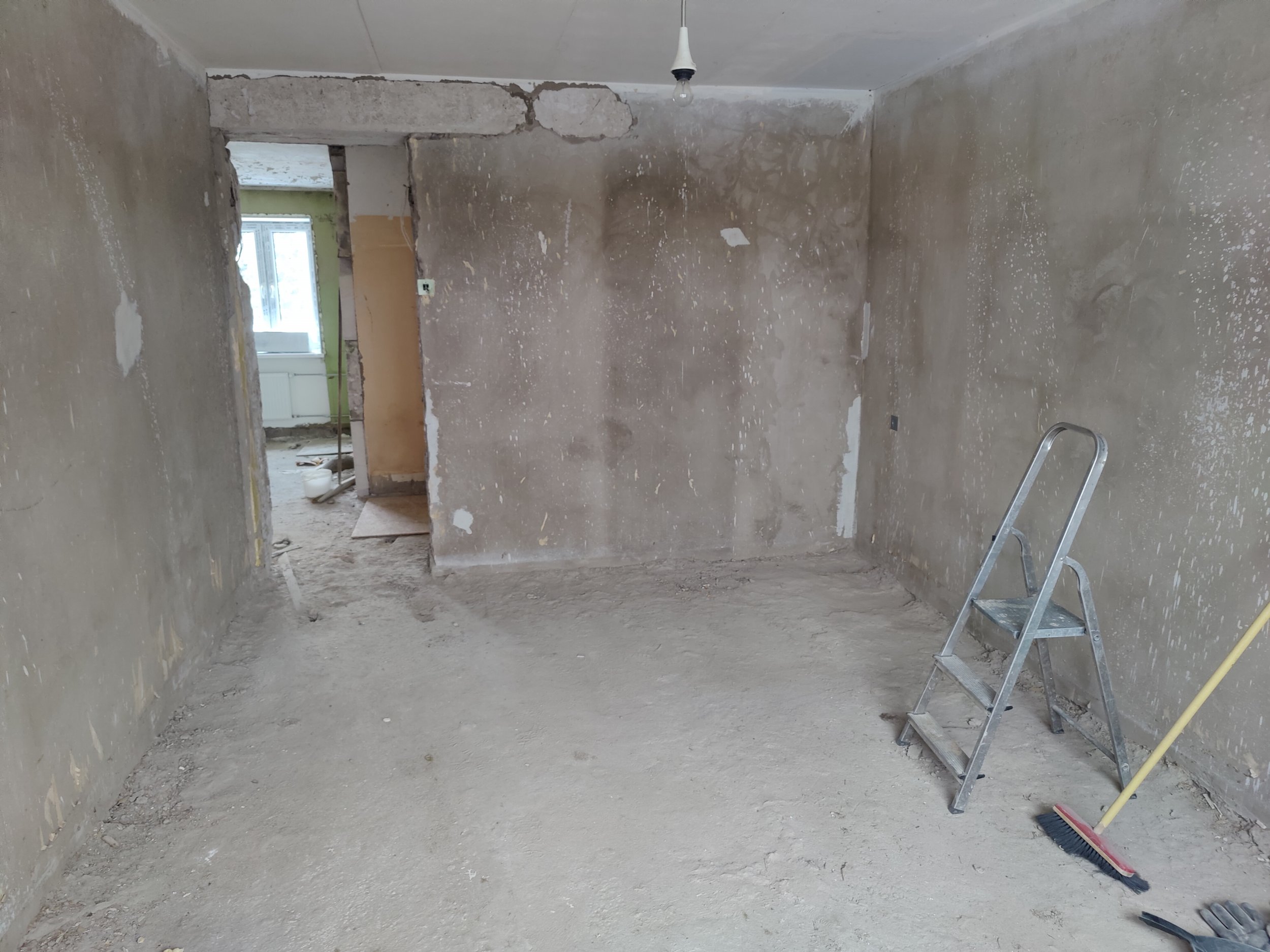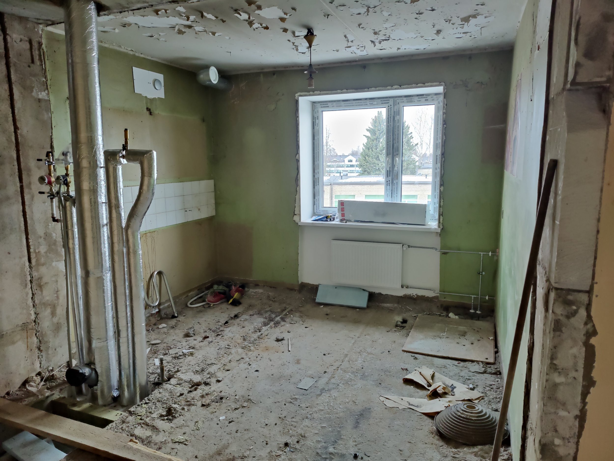4. Kõik seinad krohvida, pahteldada ja värvida. Seina värv selgub hiljem. Vannitoas seintes keraamiline plaat.