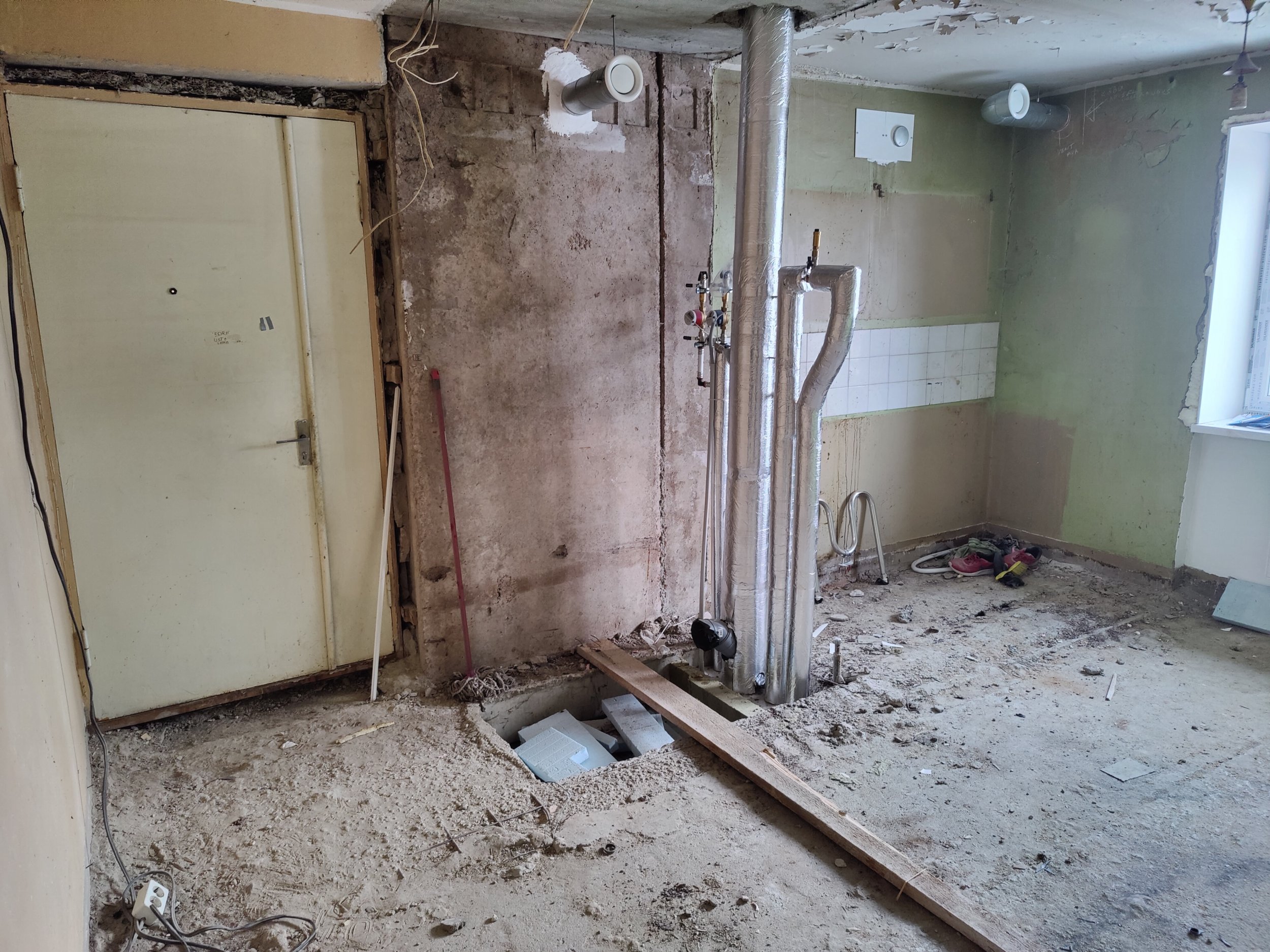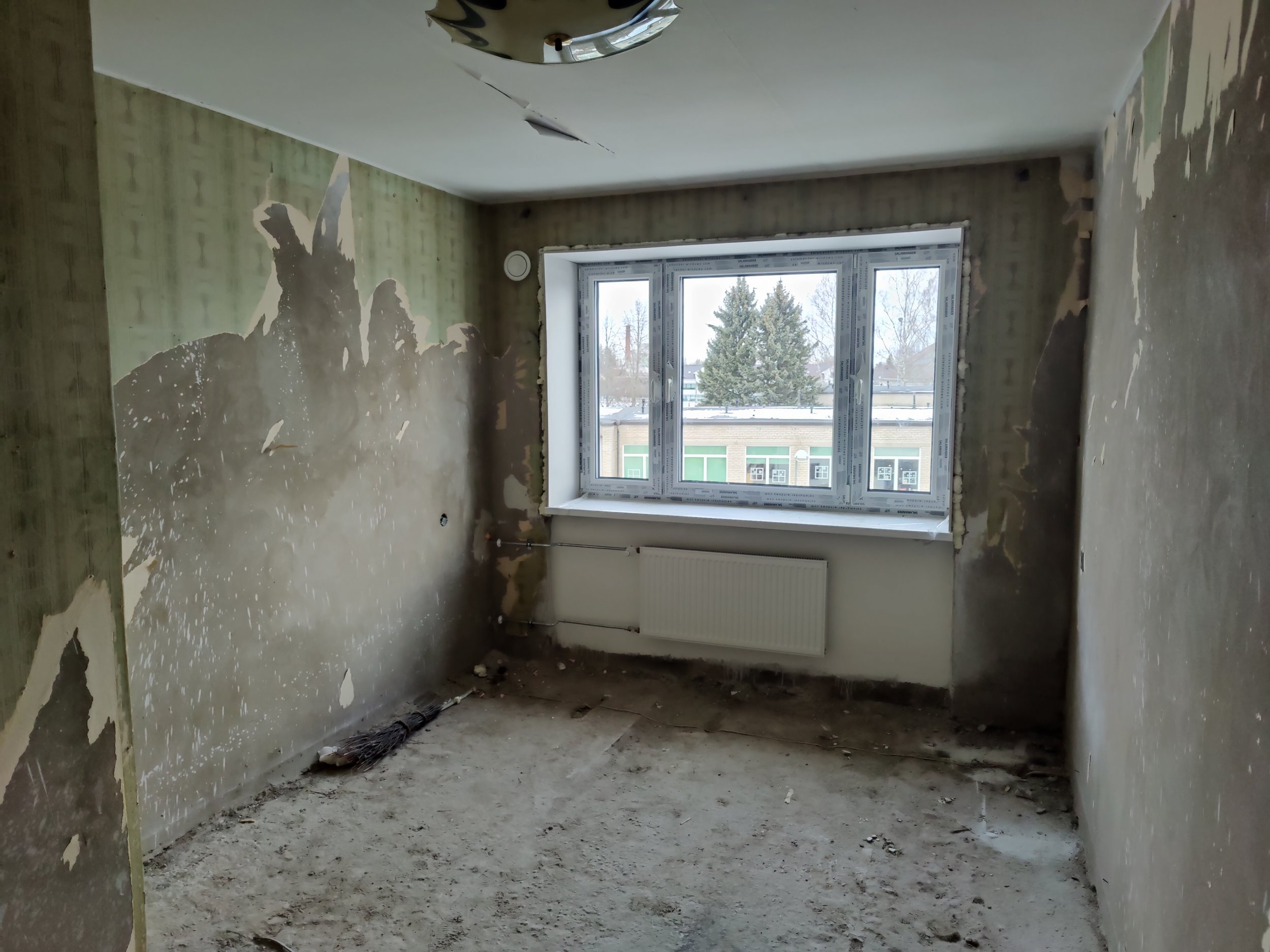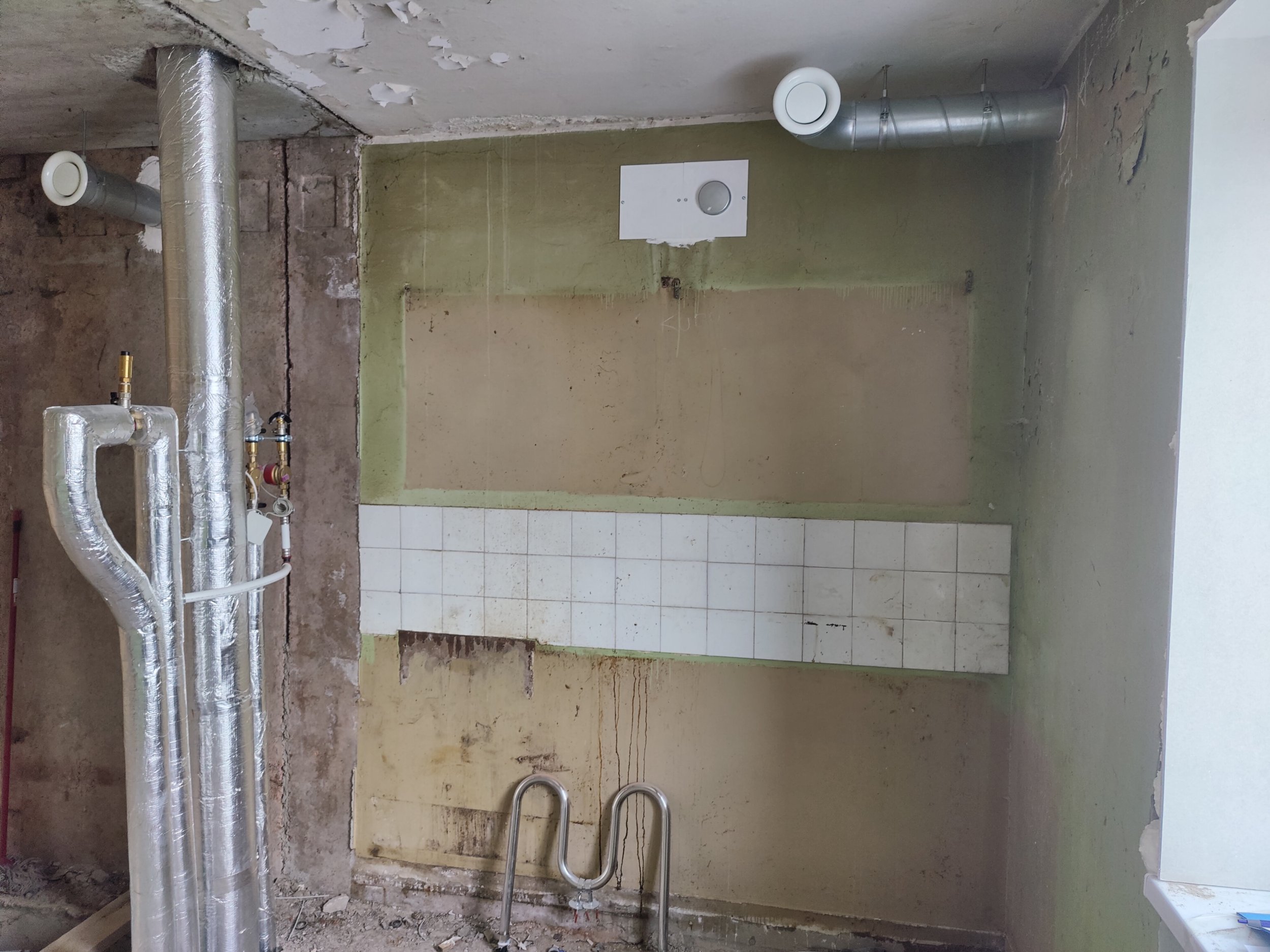 4. Kõik seinad krohvida, pahteldada ja värvida. Seina värv selgub hiljem. Vannitoas seintes keraamiline plaat.