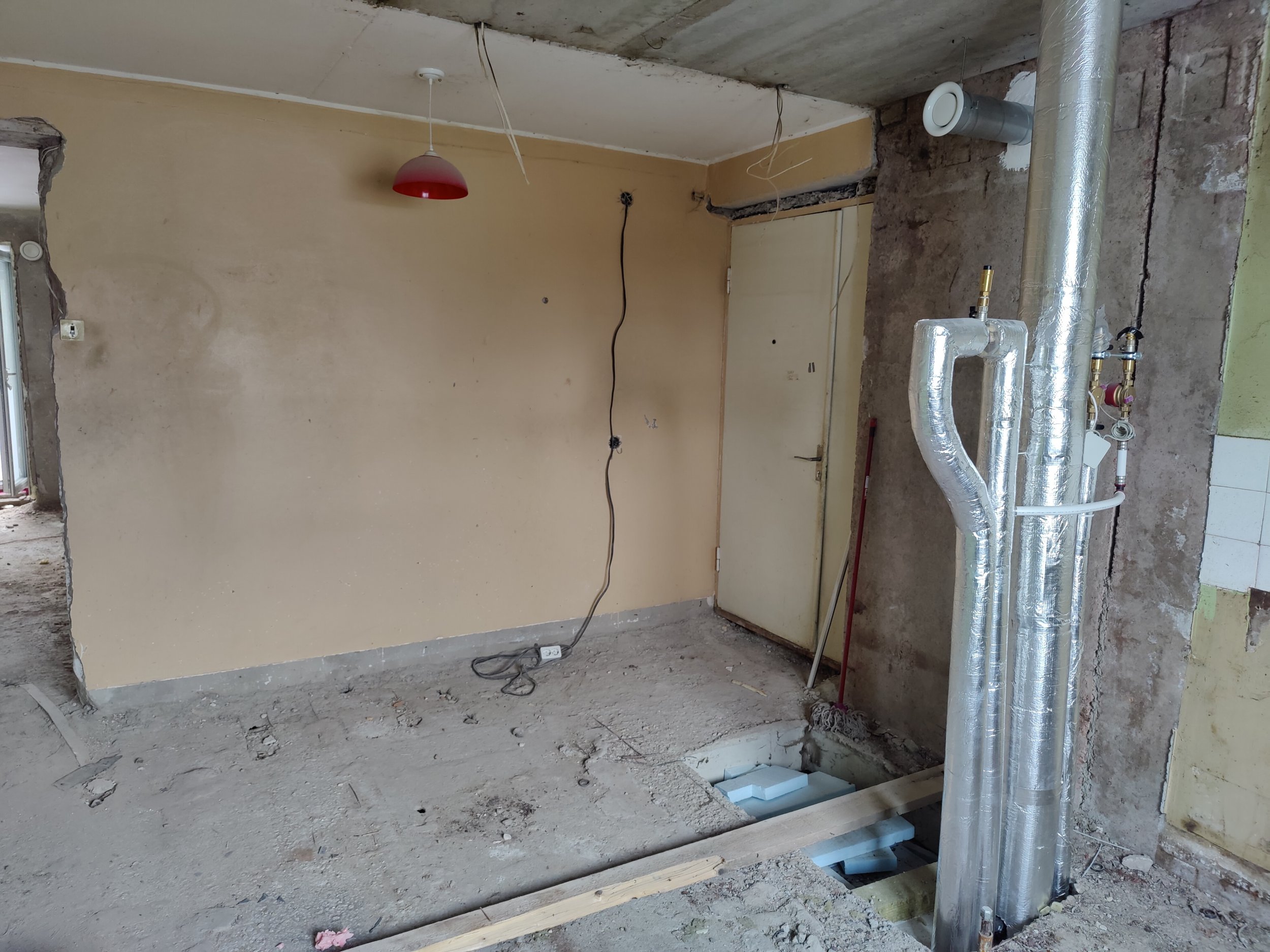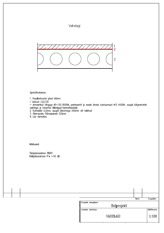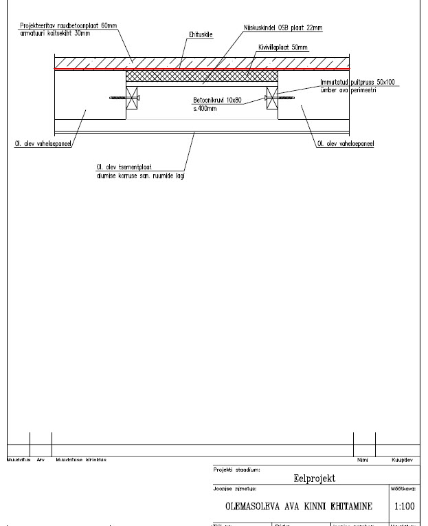 2. Põranda valu – peale elektrikaablite vedu teha kerge põrandatasandus kergkruusaga, peale 30 mm mürasummutusmatt (Isover FLO või Rockwool Steprock plus), kile, armatuur ja 40-50mm betoon (C25/30).