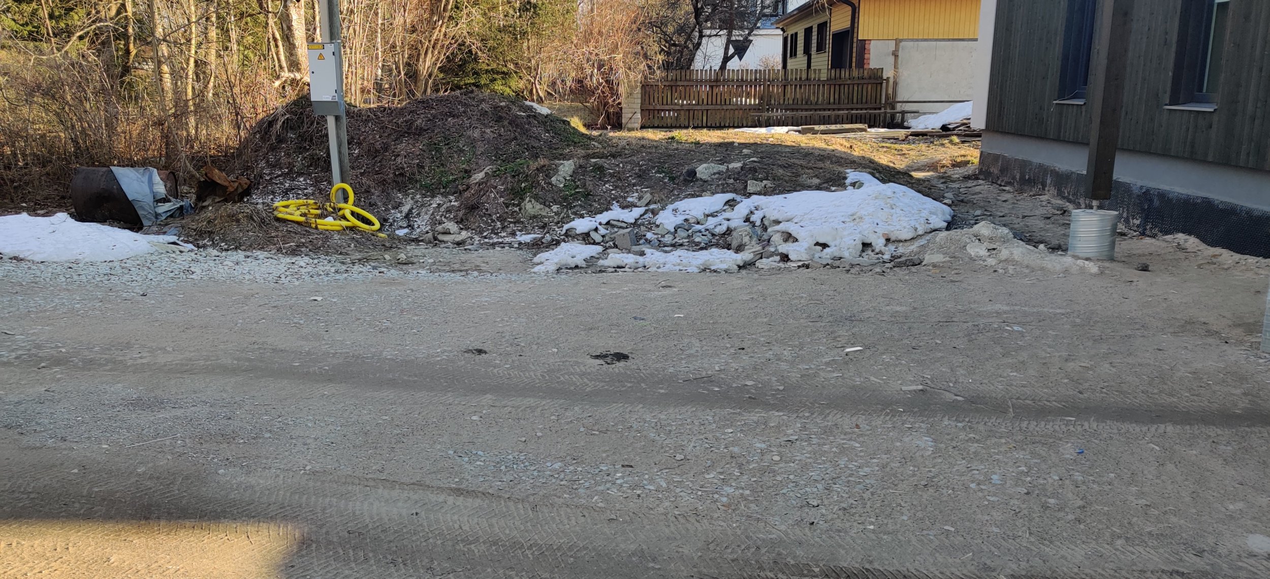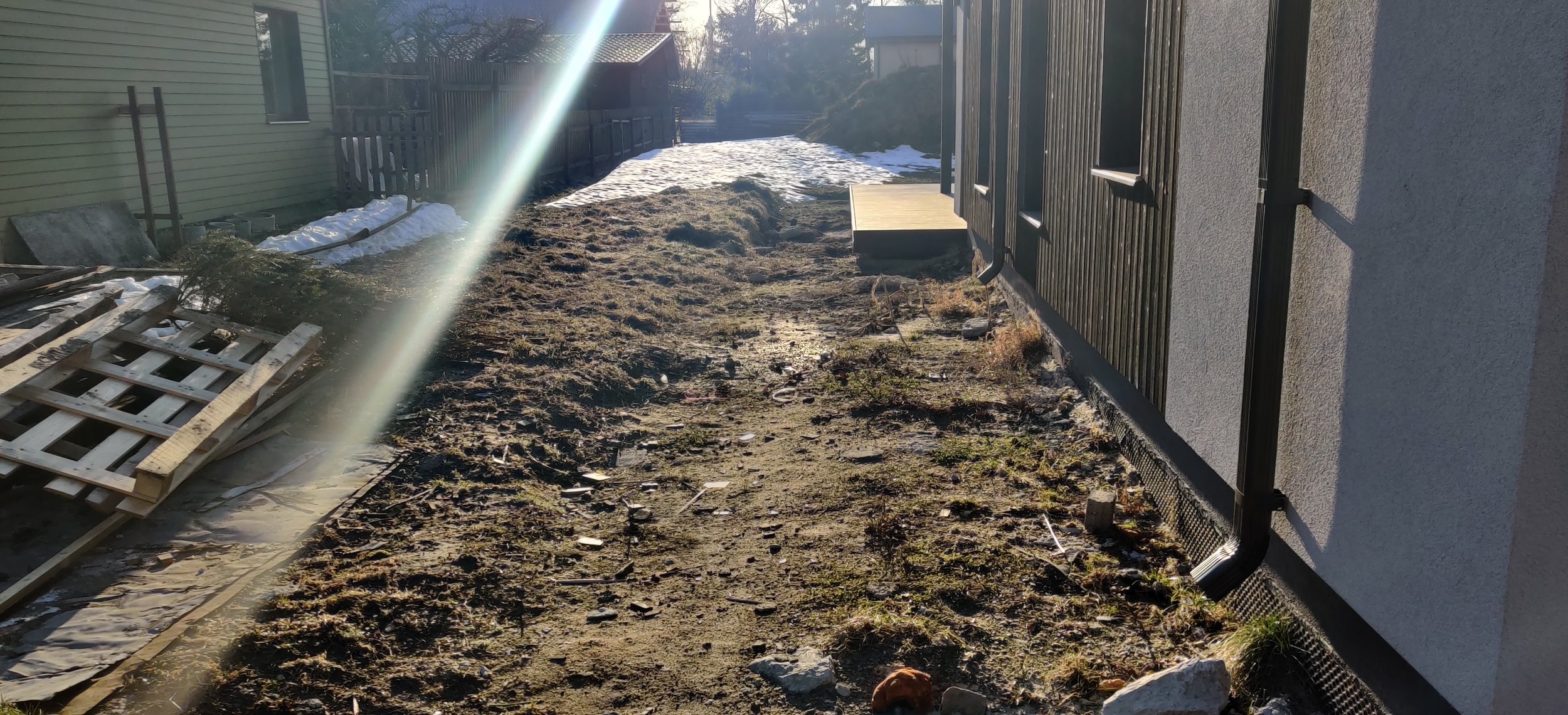 Ligipääs krundile mulla töödeks maja kõrval, vaba ruumi laius 5 meetrit, kuid ennem tuleks kopaga tasandada juurdepääs.