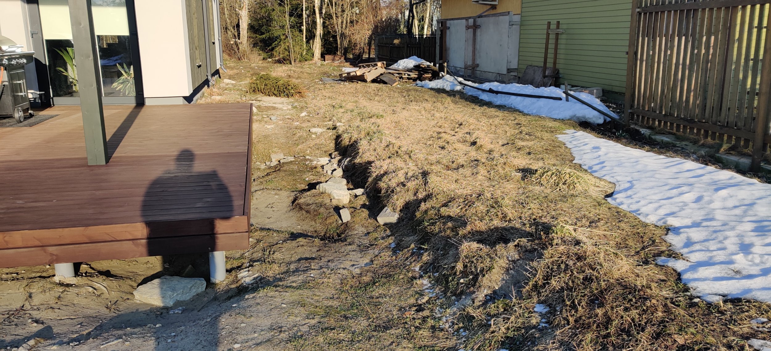5. Maja ümbruses kalde tegemine krundi äärde vihmavee eemale juhtimiseks.