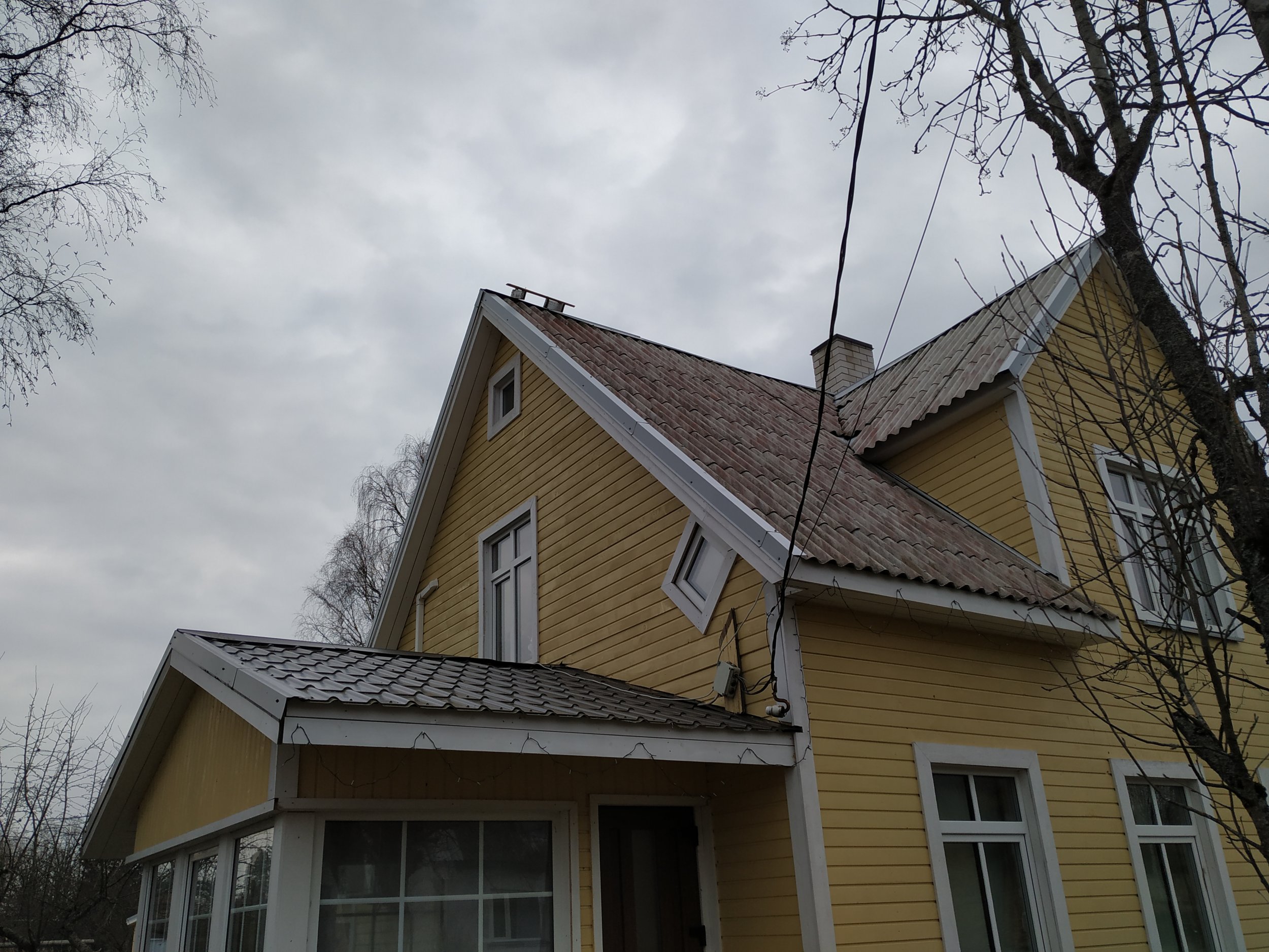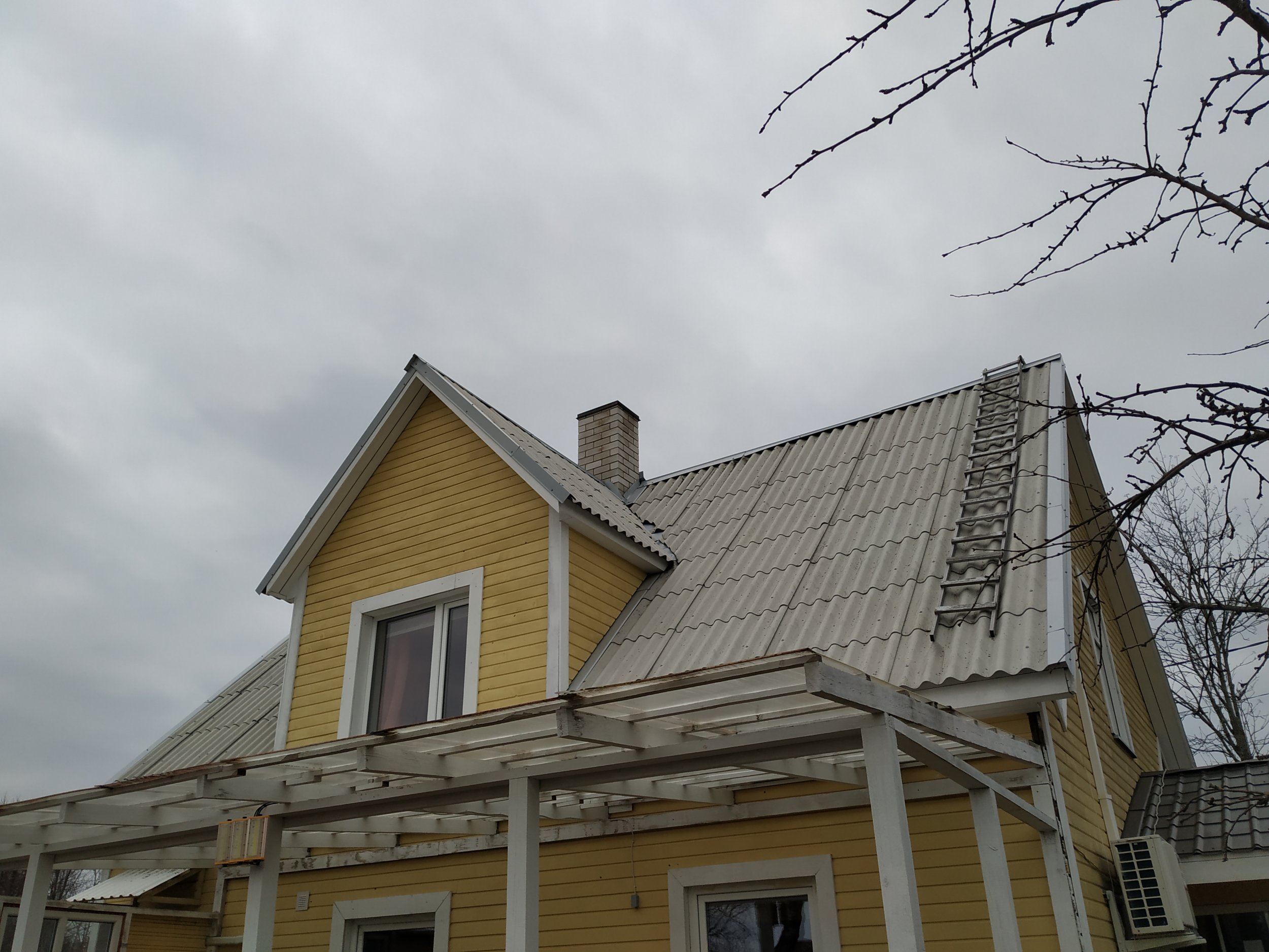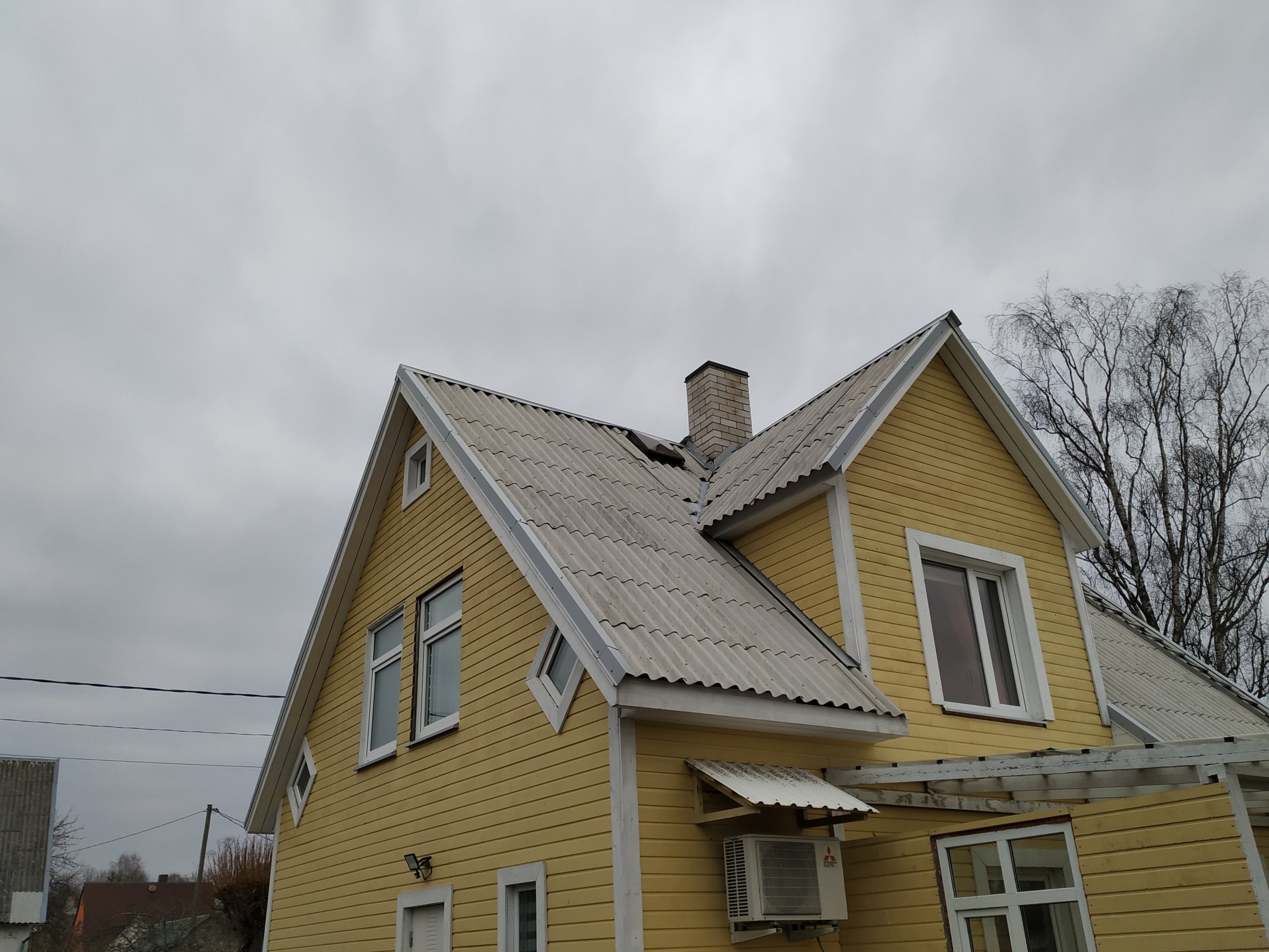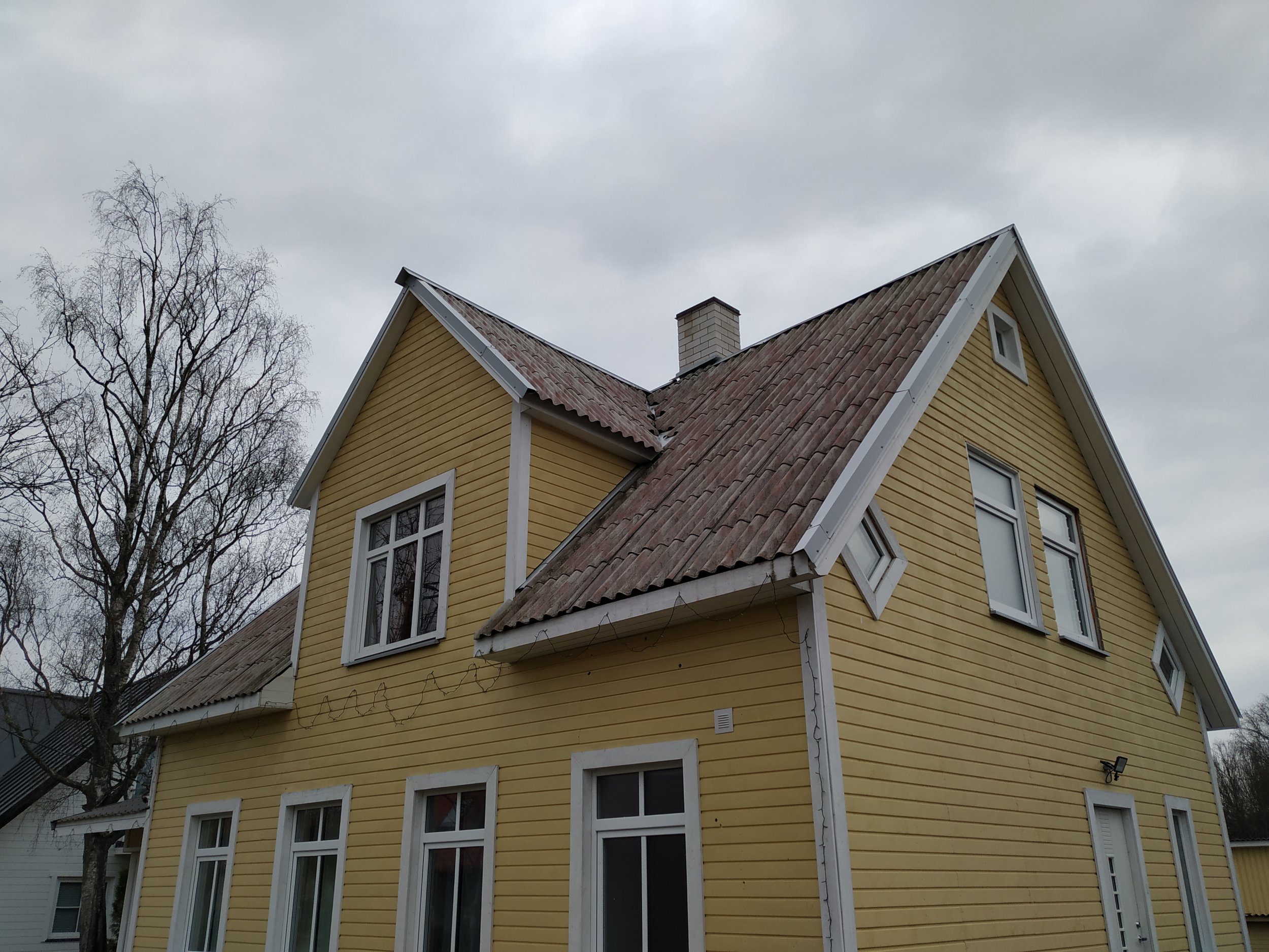 Vana eterniit katuse eemaldus veranda plekk katuse eemaldus, sarikate rihtimine ja uue eterniidi paigaldus koos plekkidega kaasaarvatud korstna plekk ja katuse redel. tuulekastide korrastamine kuna on viltuse katuse järgi ehitatud.katus vintskappide poolelt vajunud.