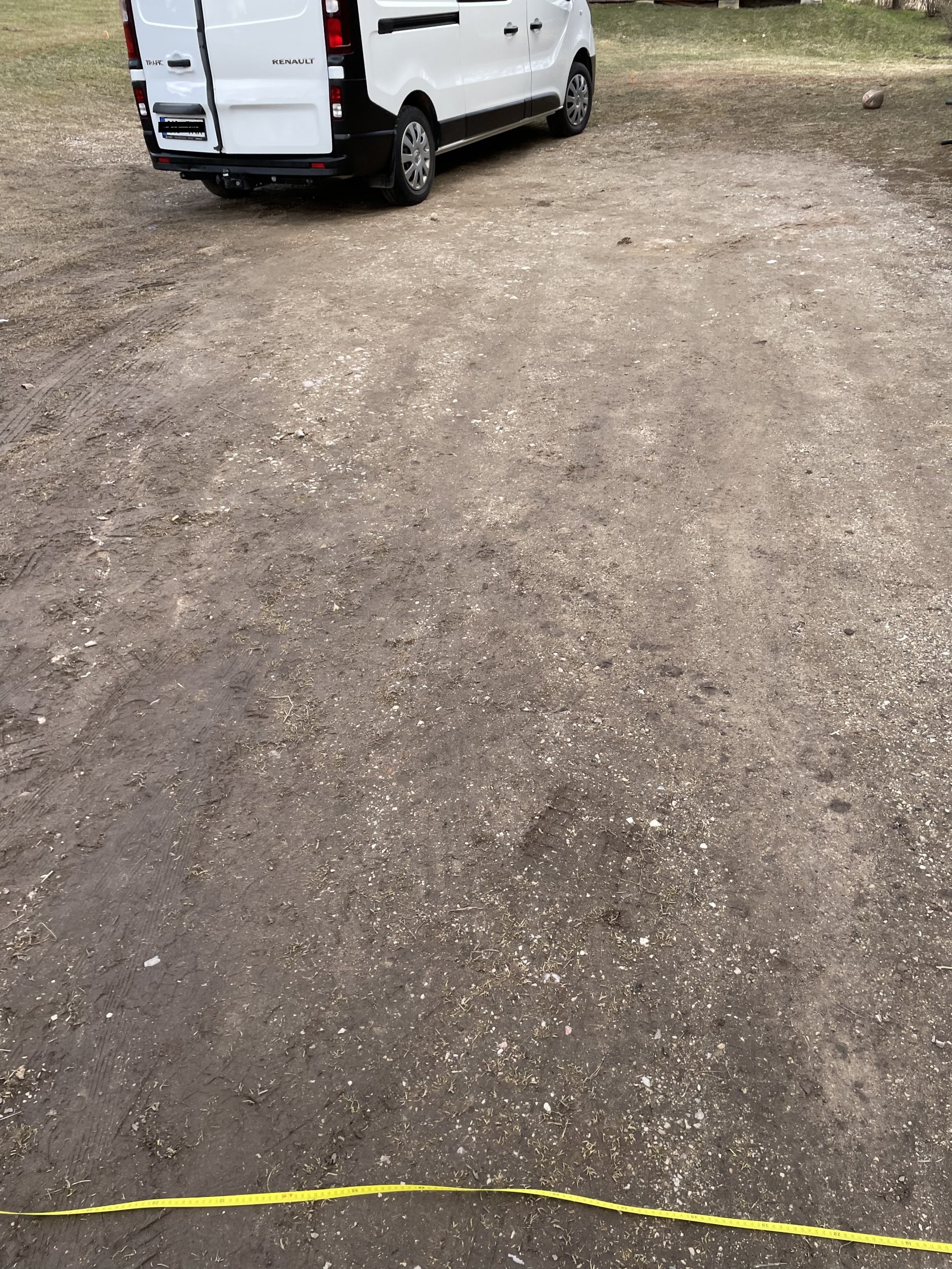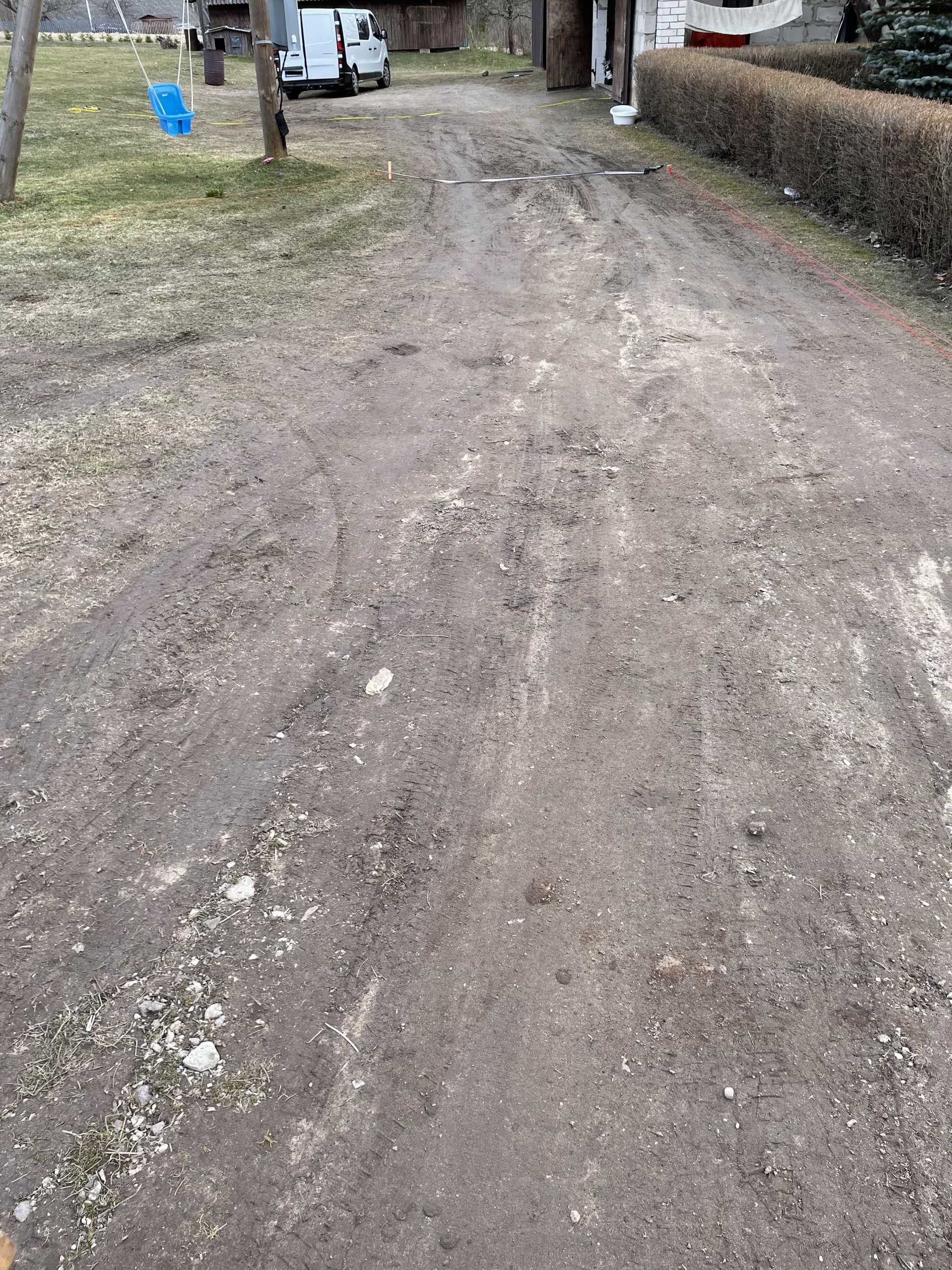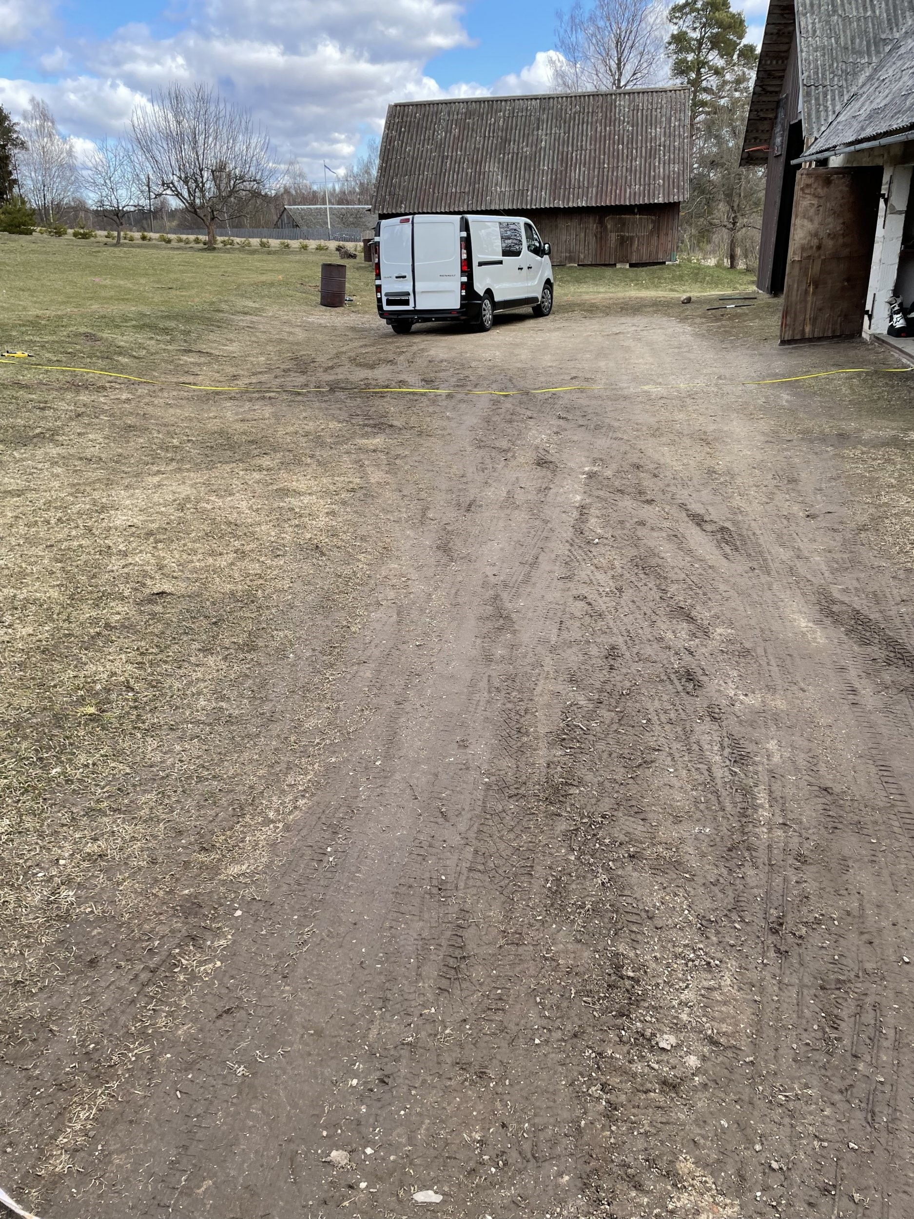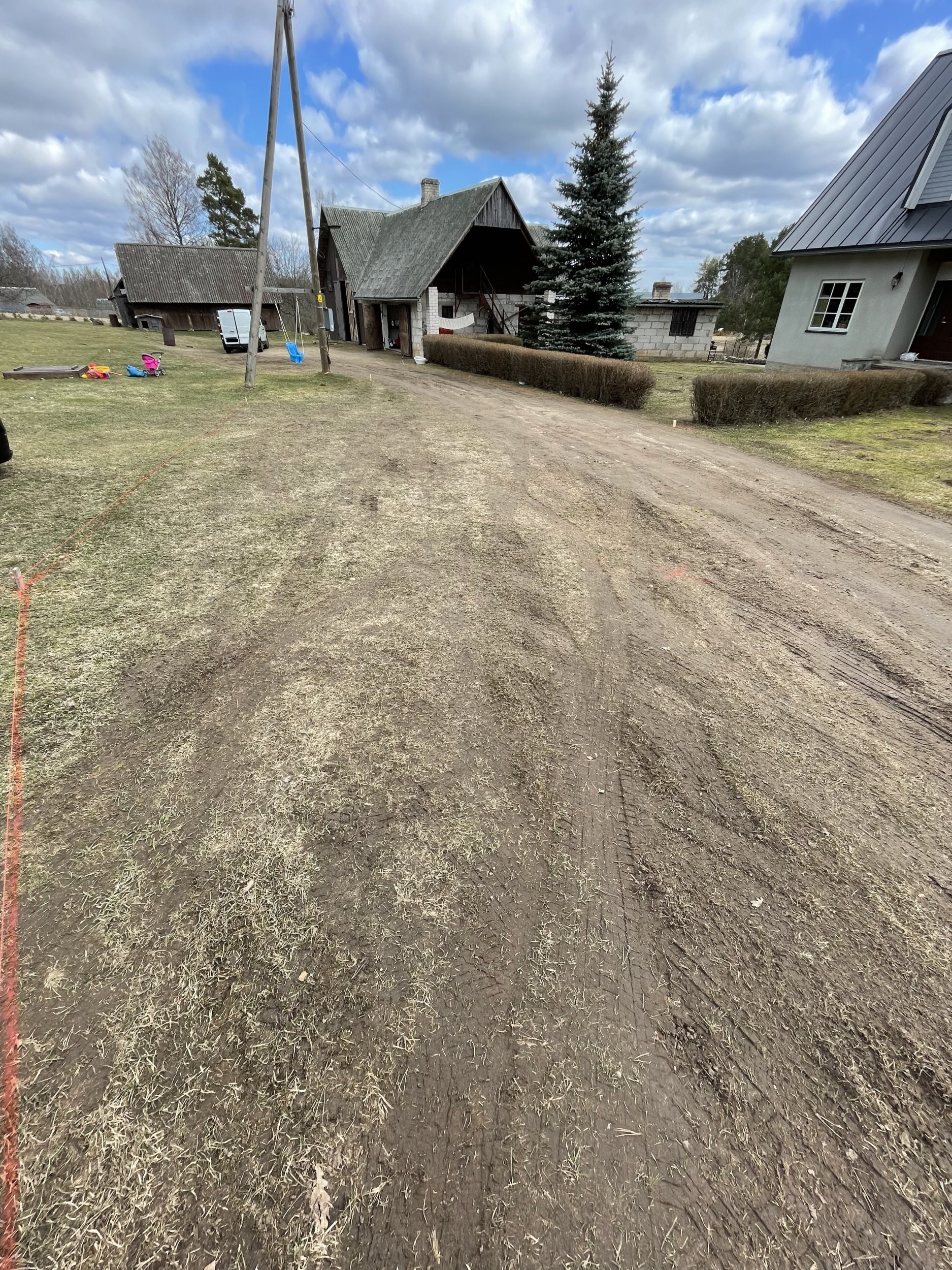 Sissesõidu tee ja parkla tarvis koorimine. Tee osa mudane ja pehme, pealt vaja koorida ca 25-30 cm 3,5 meetri laiuselt kuskil 39 meetrit, sealt edasi natukene laiemalt 16-18m ja parkla osa 12m x 25 m