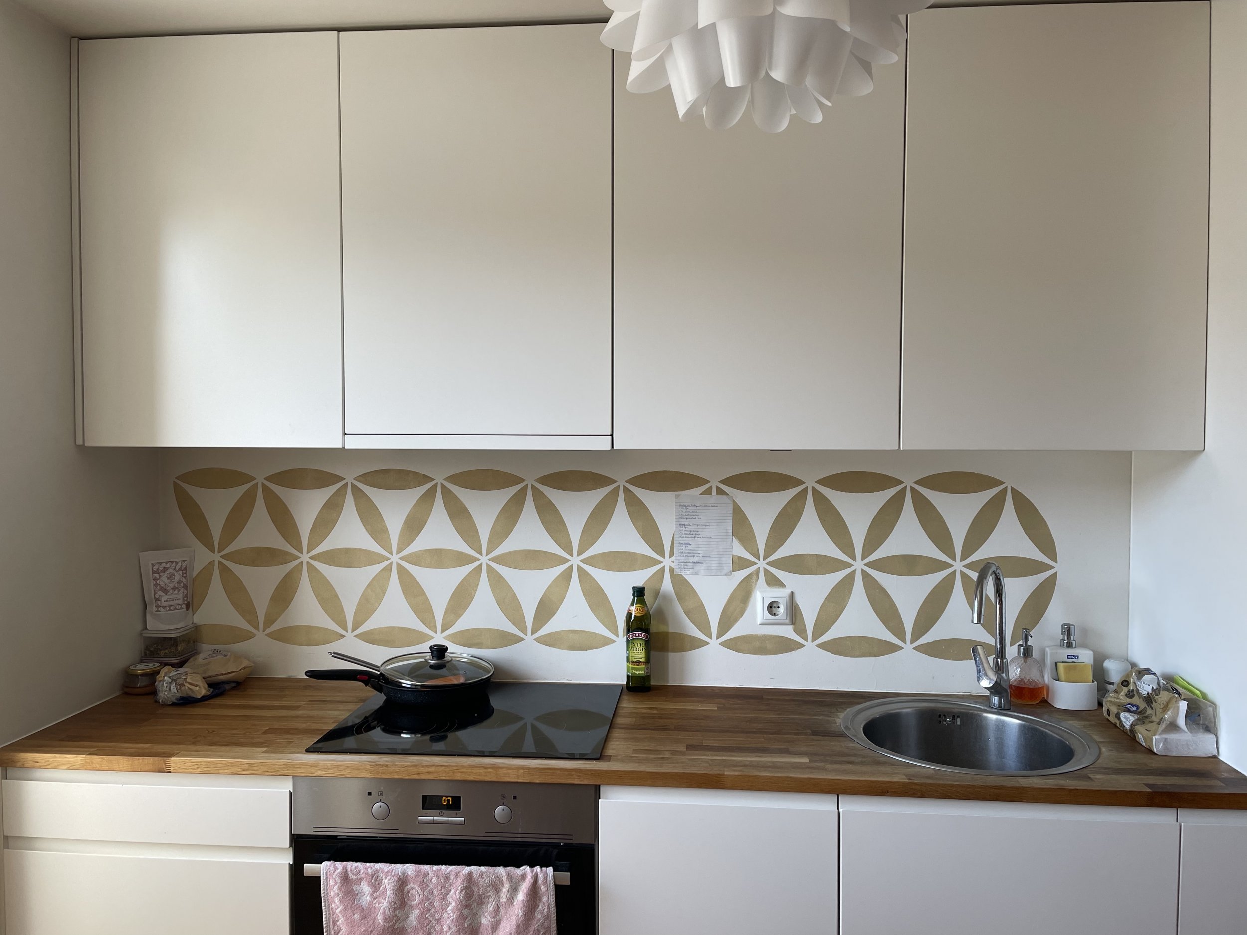 1. Köögi tagasein plaatida mosaaikplaadiga seinast-seinani, pinda u 1.44m2.