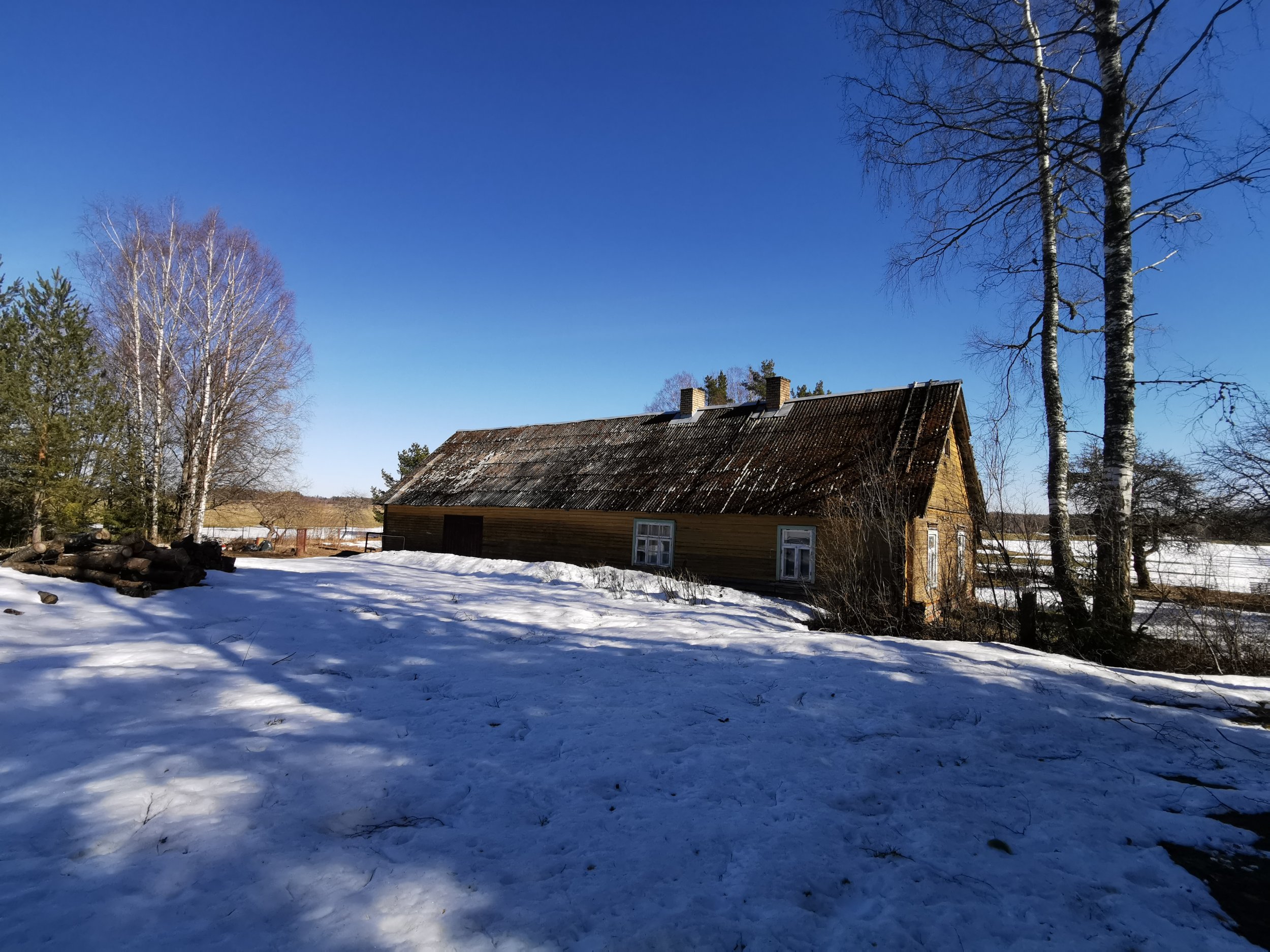 Katuse vahetus koos kõikide materjalidega (sh lainjas nn uus eterniit, sarikad ja roovitus) rehielamul Lääne-Virumaal, maja pikkus ca 25m.
