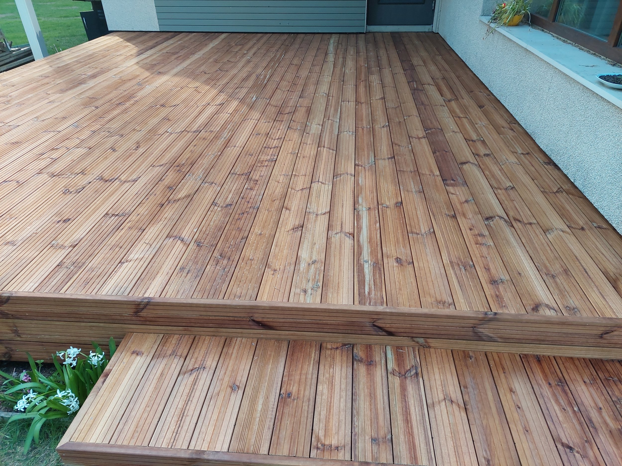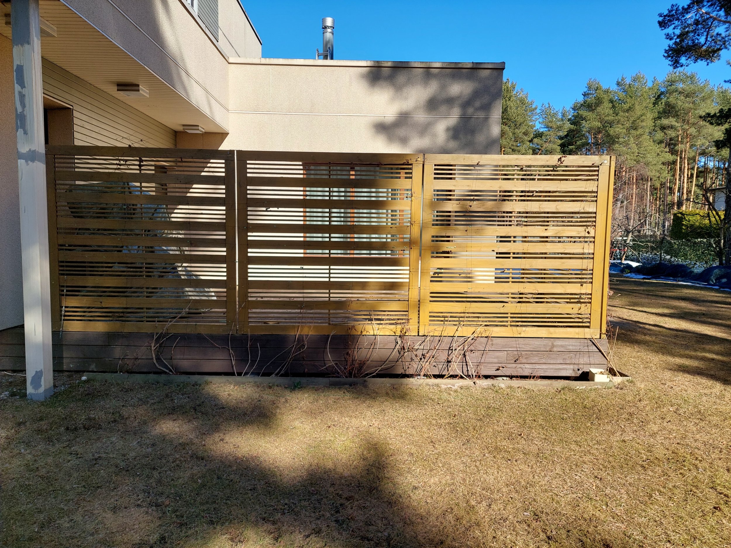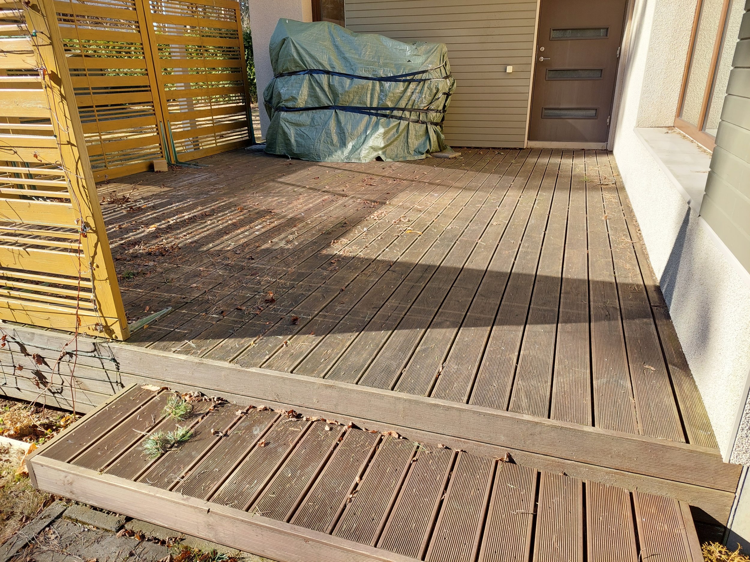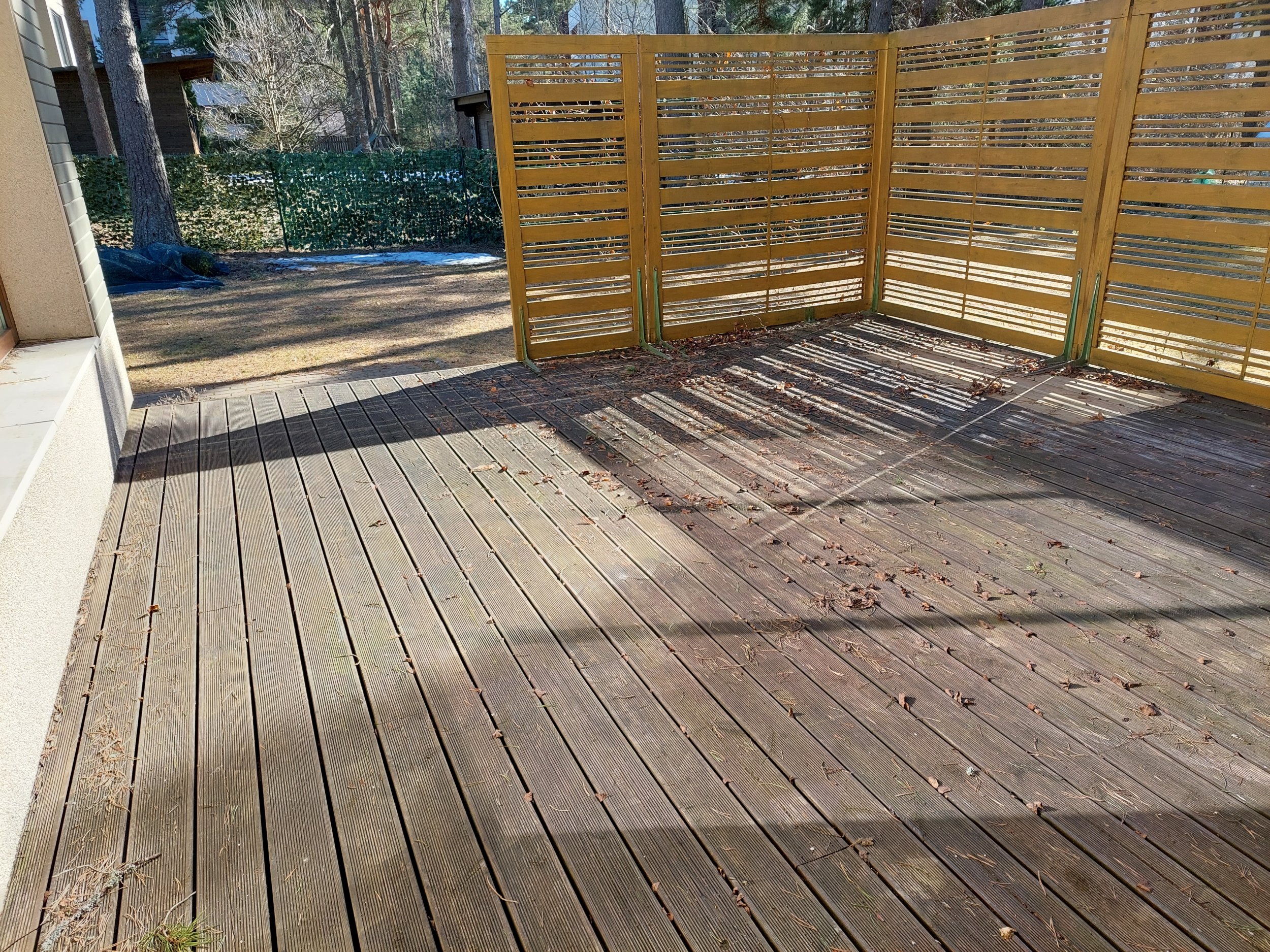 Terrassil, mis rajatud 17 aastat tagasi hakkavad kohati mädanema terrassilauad ja laudade all olevad 100x100 prussid. Seetõttu oleme otsustanud vana puitosa lammutada ja asendada uuega.