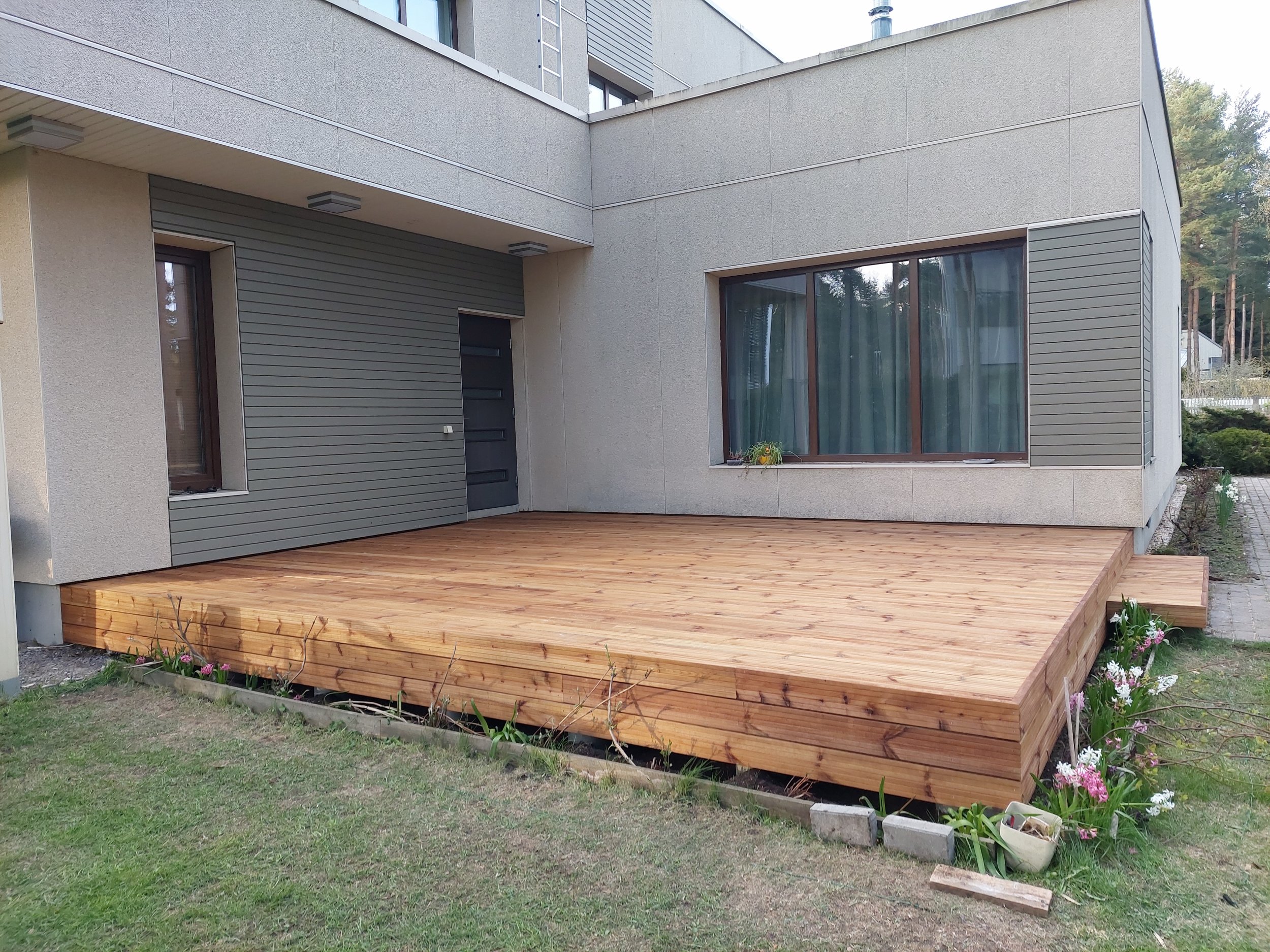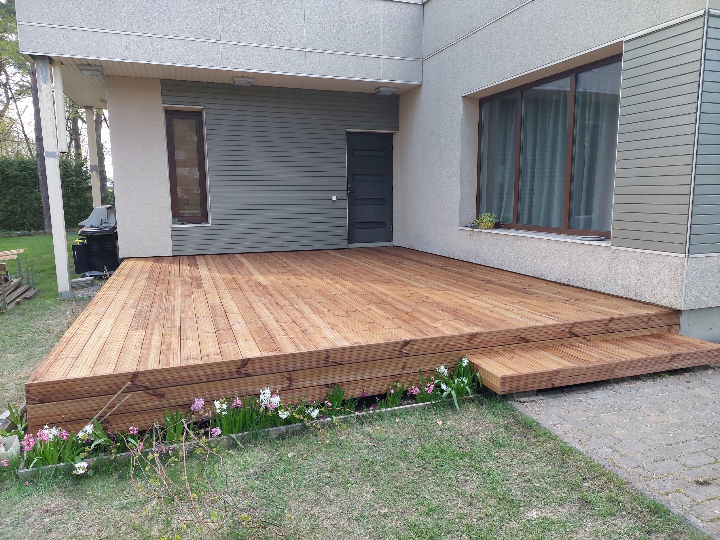 Pakkumine sisaldab ainult tööraha. Nii vana terrassi lammutus kui uue paigaldust. Materjali jätaks teie kanda. Utiliseerimine hinna sees.