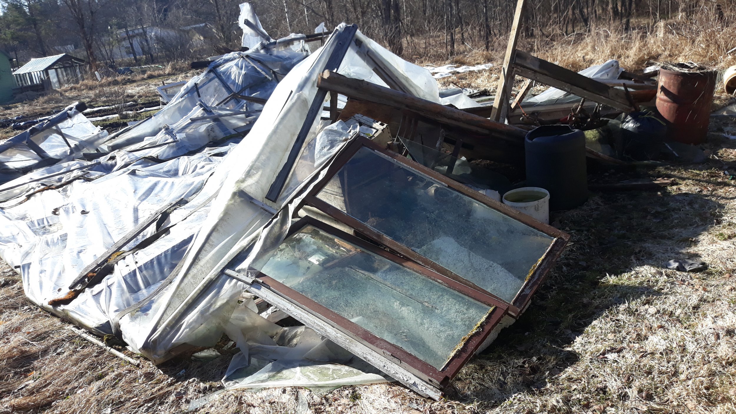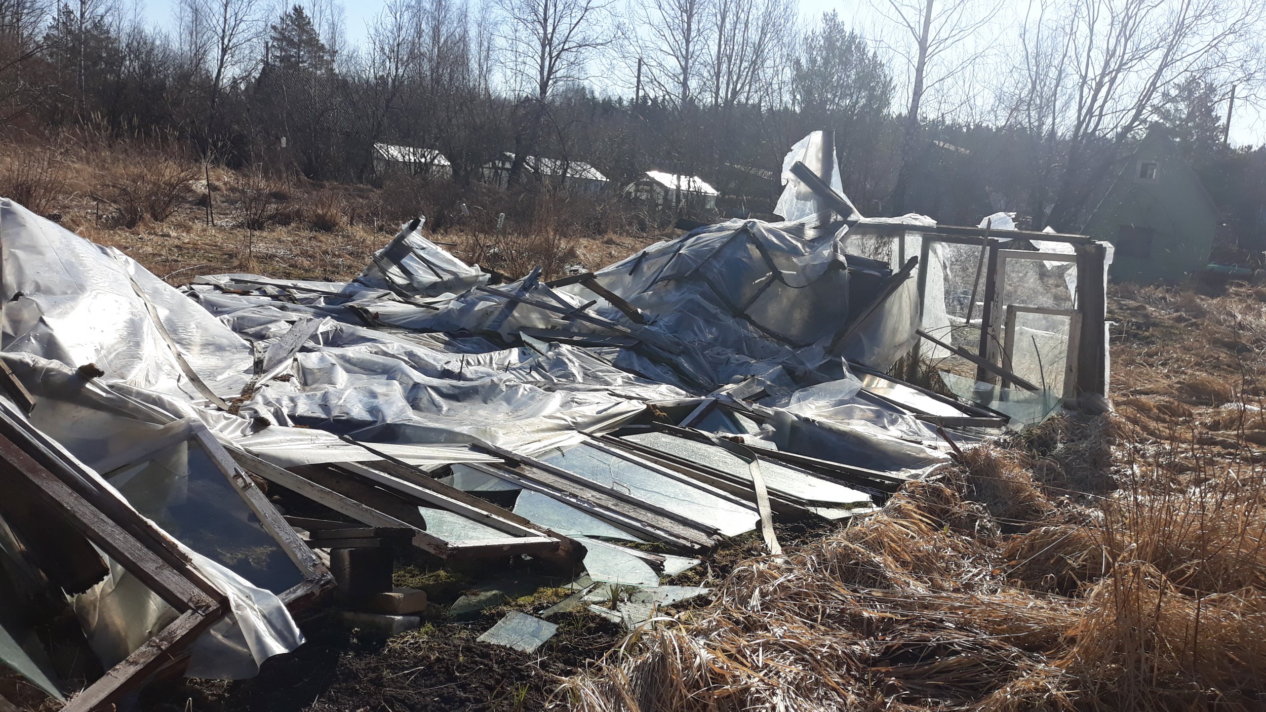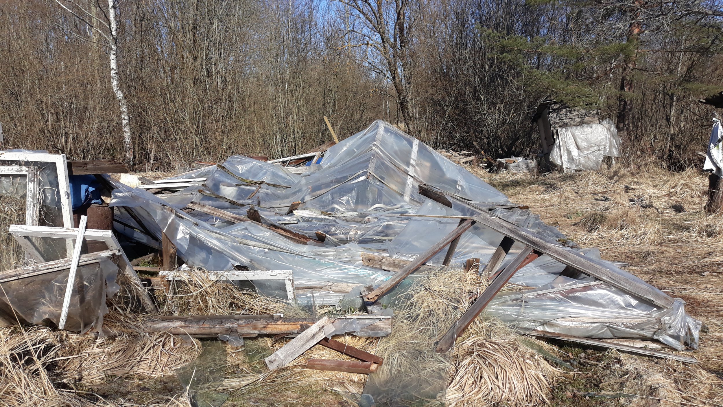 Sooviksin leida inimest, kes utiliseeriks kokku kukkunud kasvuhoone. Materjal klaas (aknaraamid), puit, kile ja metall. Asub Pärnu kaubajaama kandis.