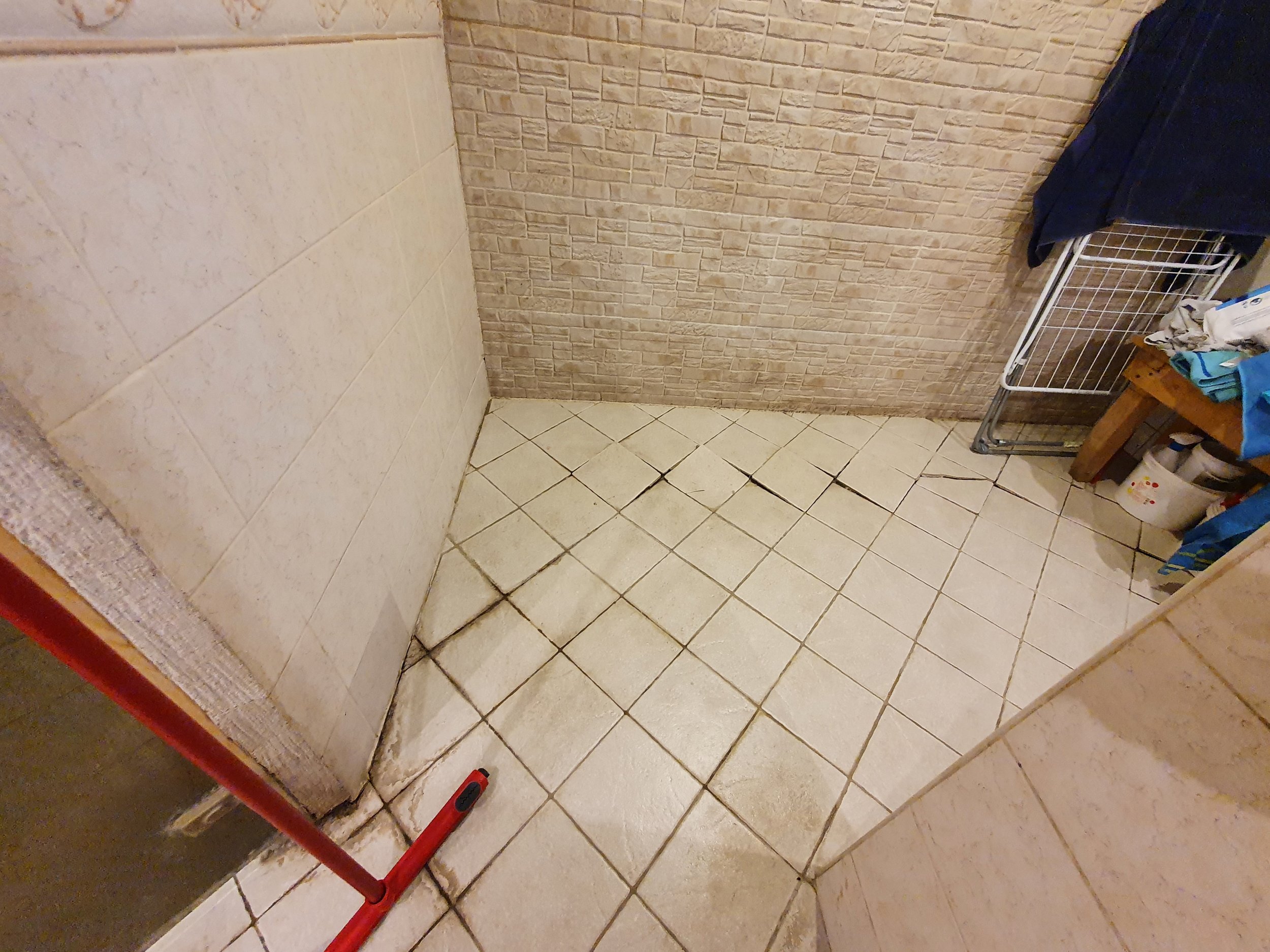 Põranda vajumise tõttu vaja uuesti valada ja rihtida kalded ühele trapile. Vanad plaadid ja vaheseina eemaldame ise. Uued plaadid meie poolt.