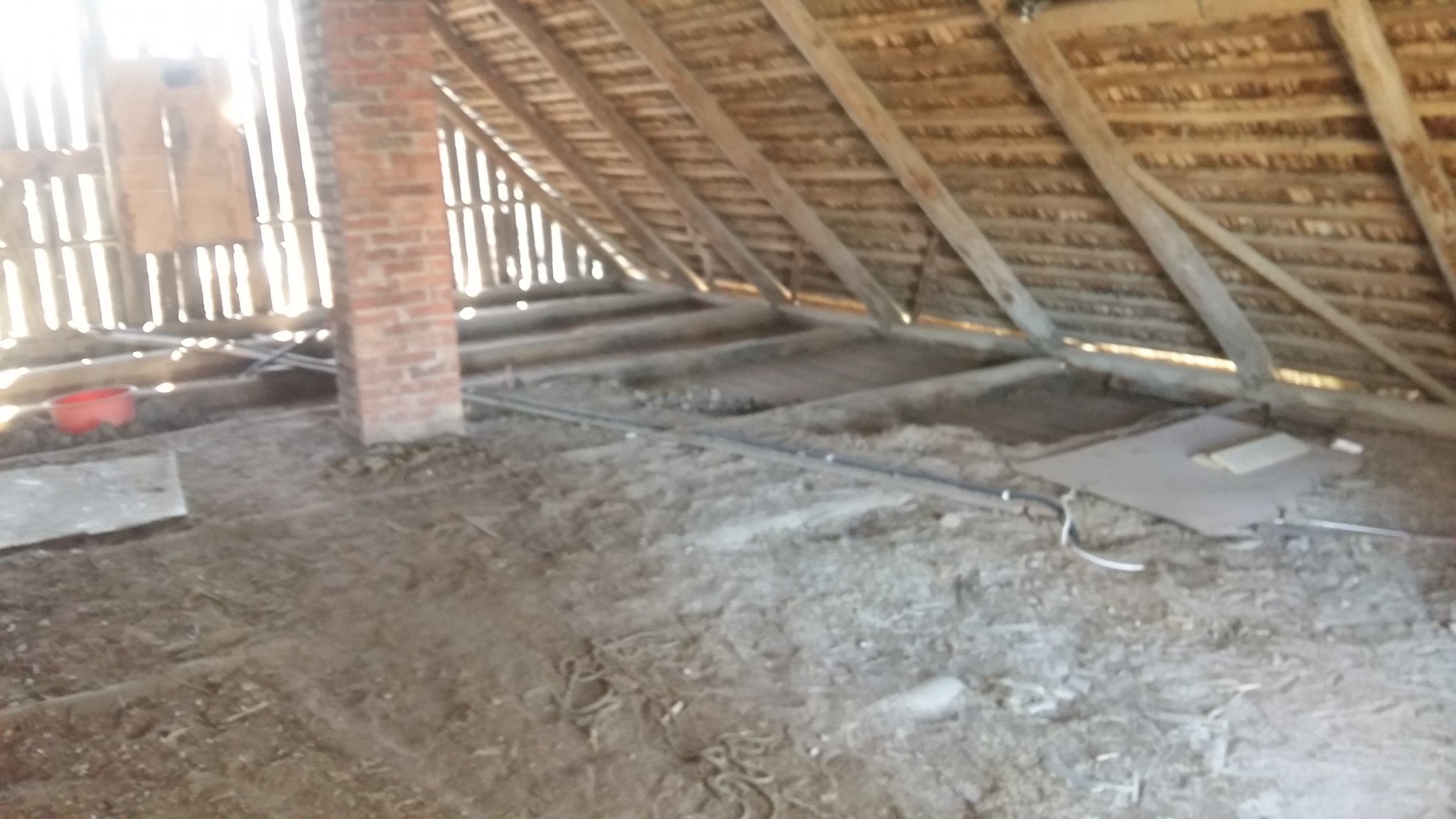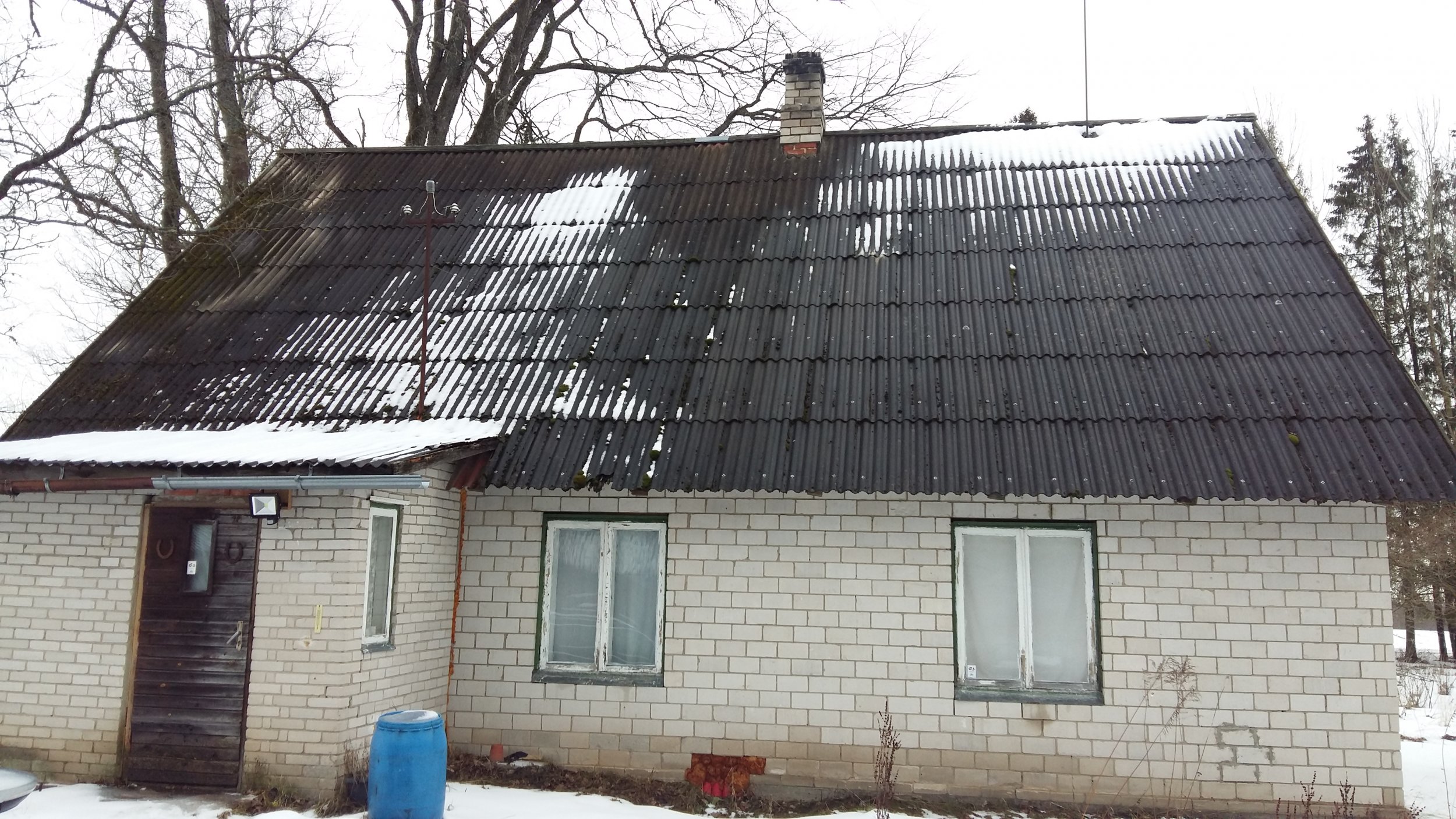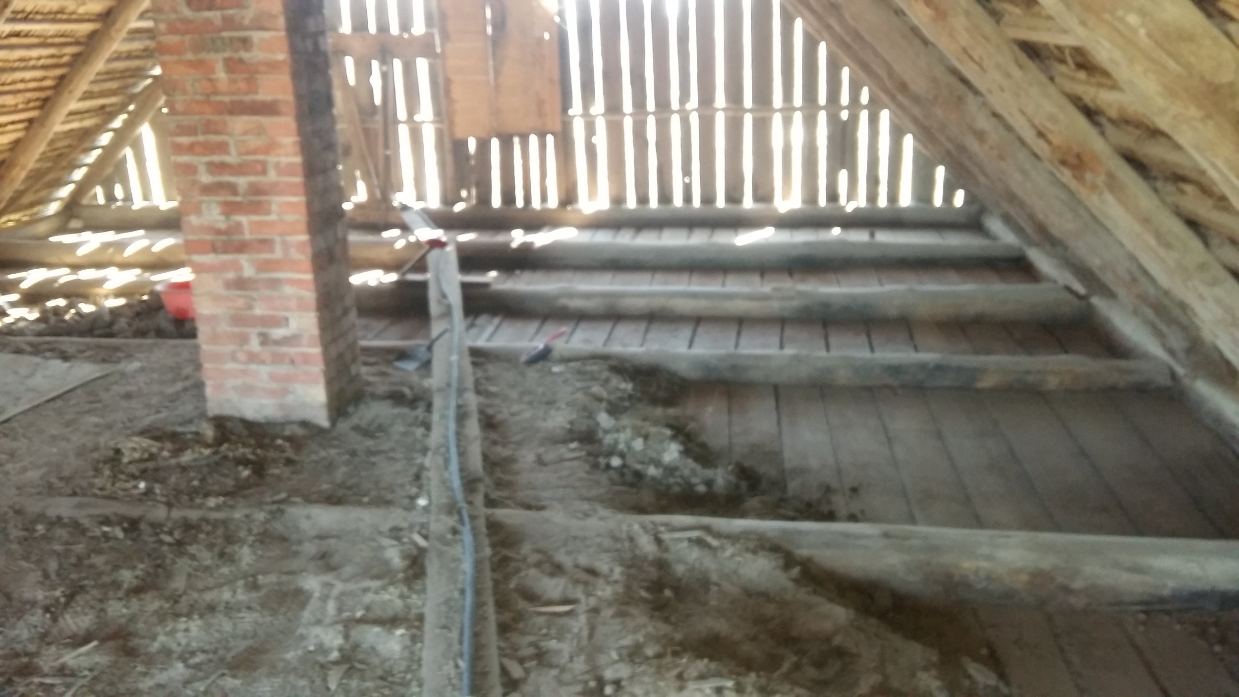 Piltidel nähtav liiv saab ehituse ajaks laka pealt välja visatud ja sellega ei pea ehitaja rohkem pead vaevama! Samas on kindlalt vaja vanast katusest eemaldatud eterniidi utiliseerimine ja vahetada kahjustatud (2tk.) laetala, et saaks hilisemalt paigaldada soojustus jne. Vaja ka vana telliskivi korstna demonteerimine/lammutamine kuni esimese korruse lae kõrguseni.(ehk teisele korrusele ei jää korstent ) !!!