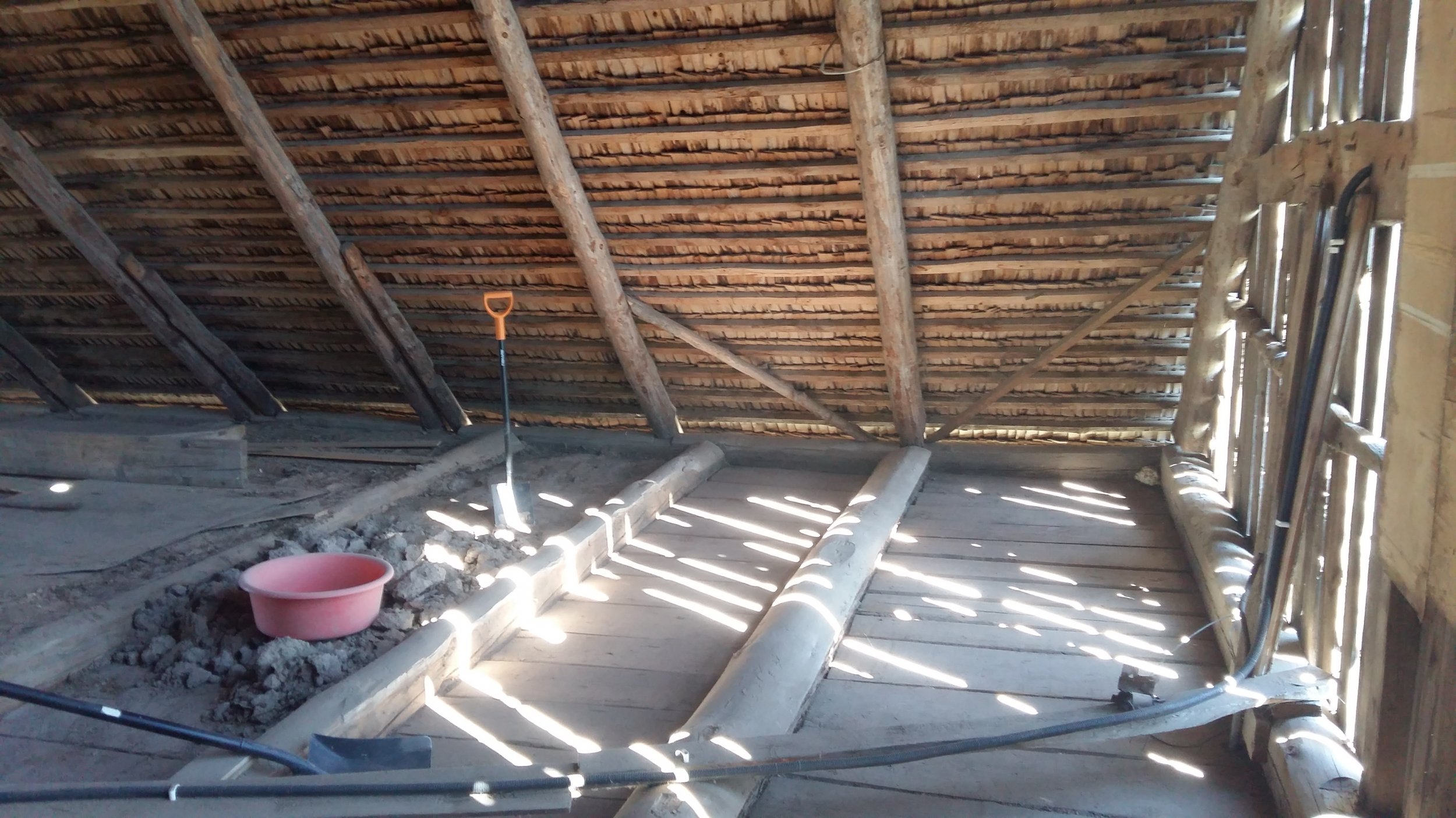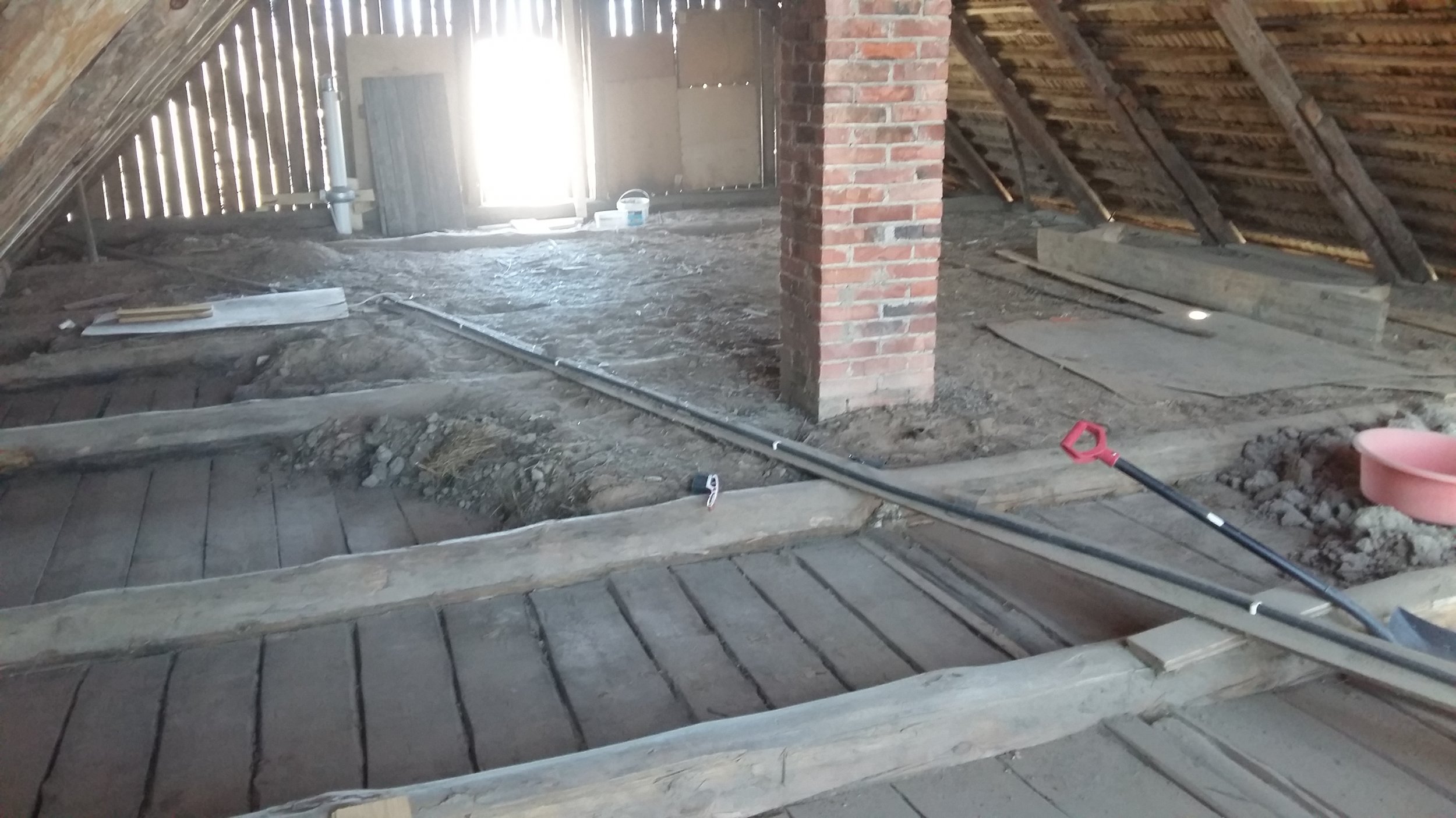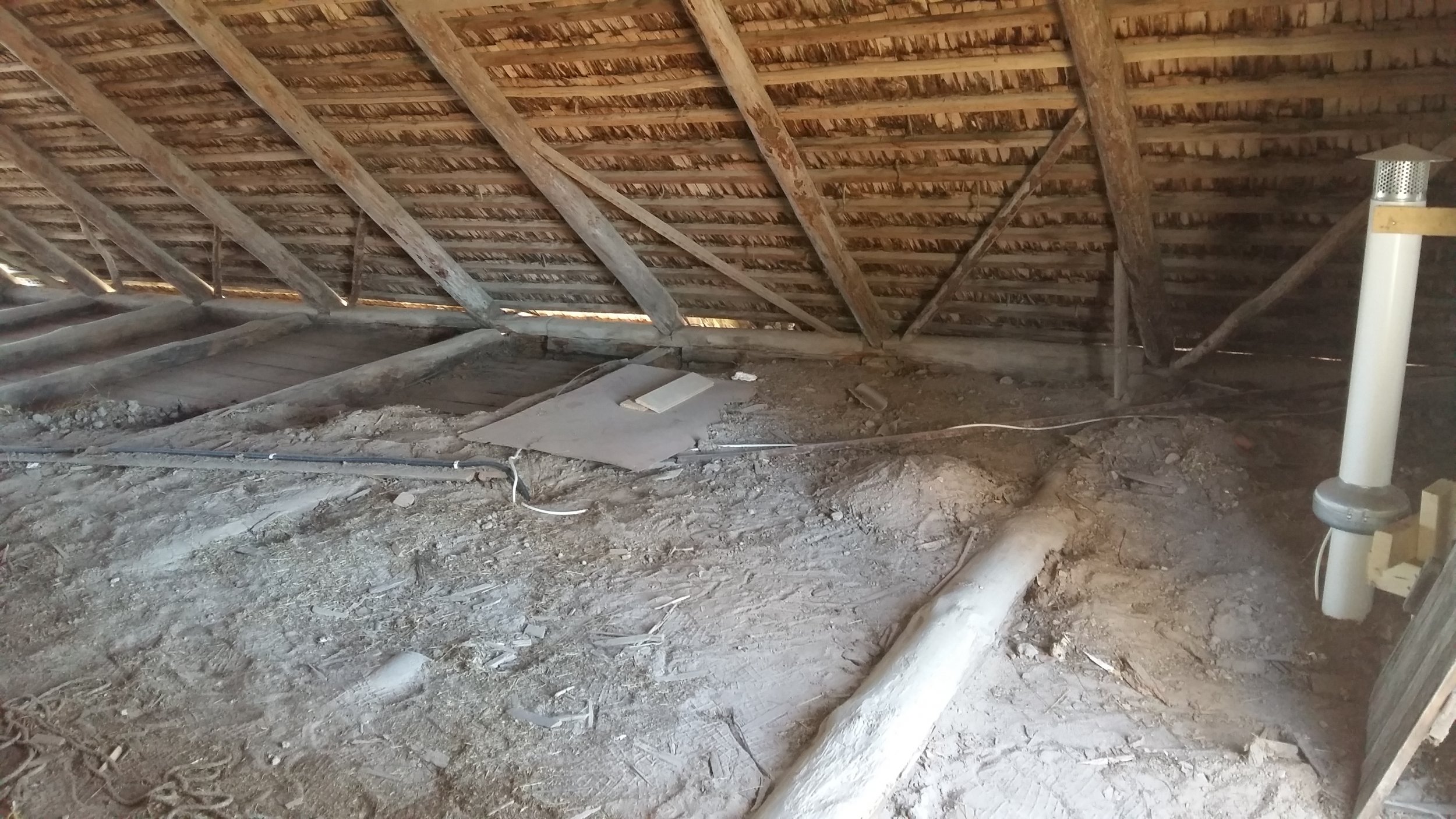 Piltidel nähtav liiv saab ehituse ajaks laka pealt välja visatud ja sellega ei pea ehitaja rohkem pead vaevama! Samas on kindlalt vaja vanast katusest eemaldatud eterniidi utiliseerimine ja vahetada kahjustatud (2tk.) laetala, et saaks hilisemalt paigaldada soojustus jne. Vaja ka vana telliskivi korstna demonteerimine/lammutamine kuni esimese korruse lae kõrguseni.(ehk teisele korrusele ei jää korstent ) !!!