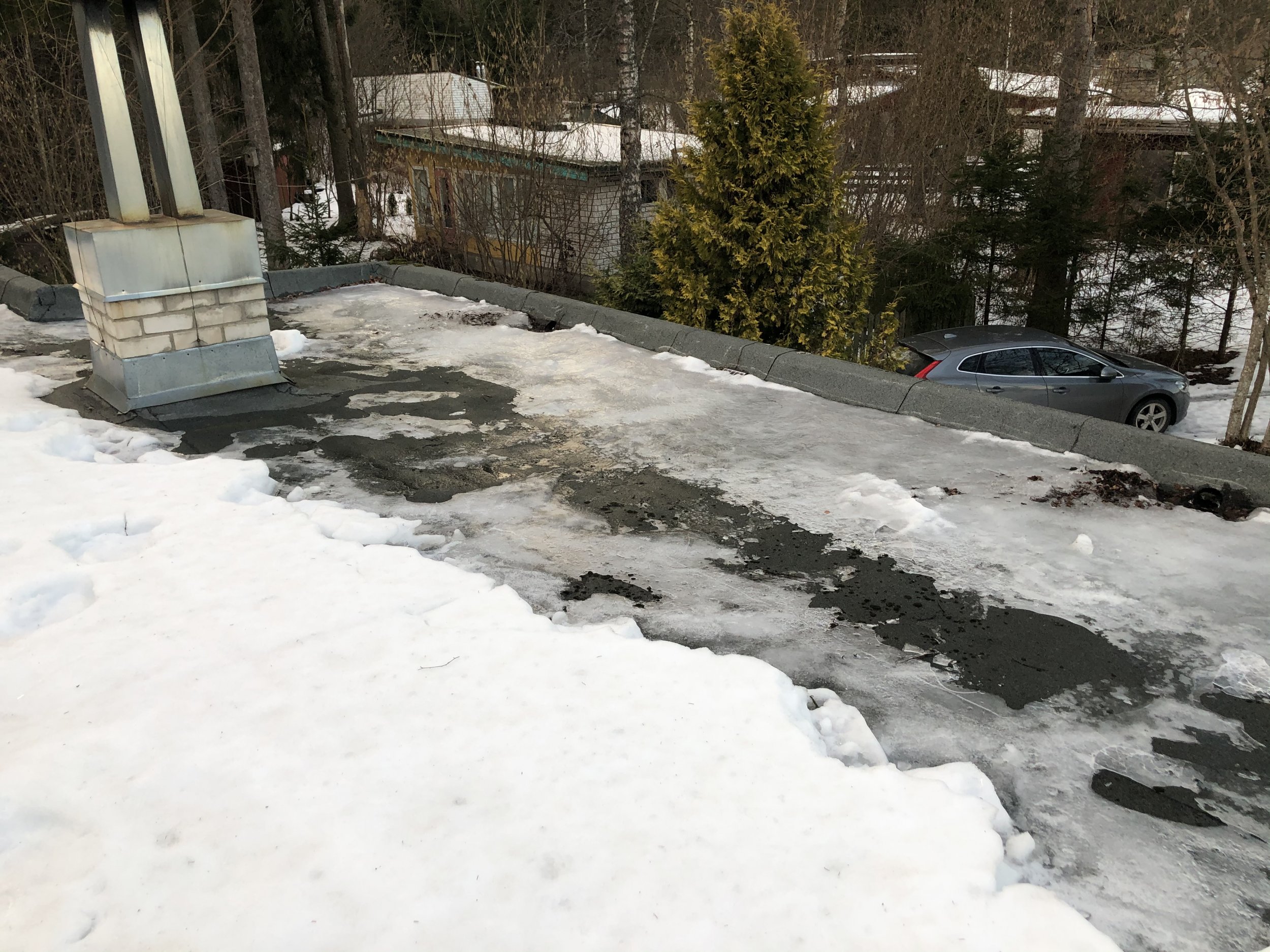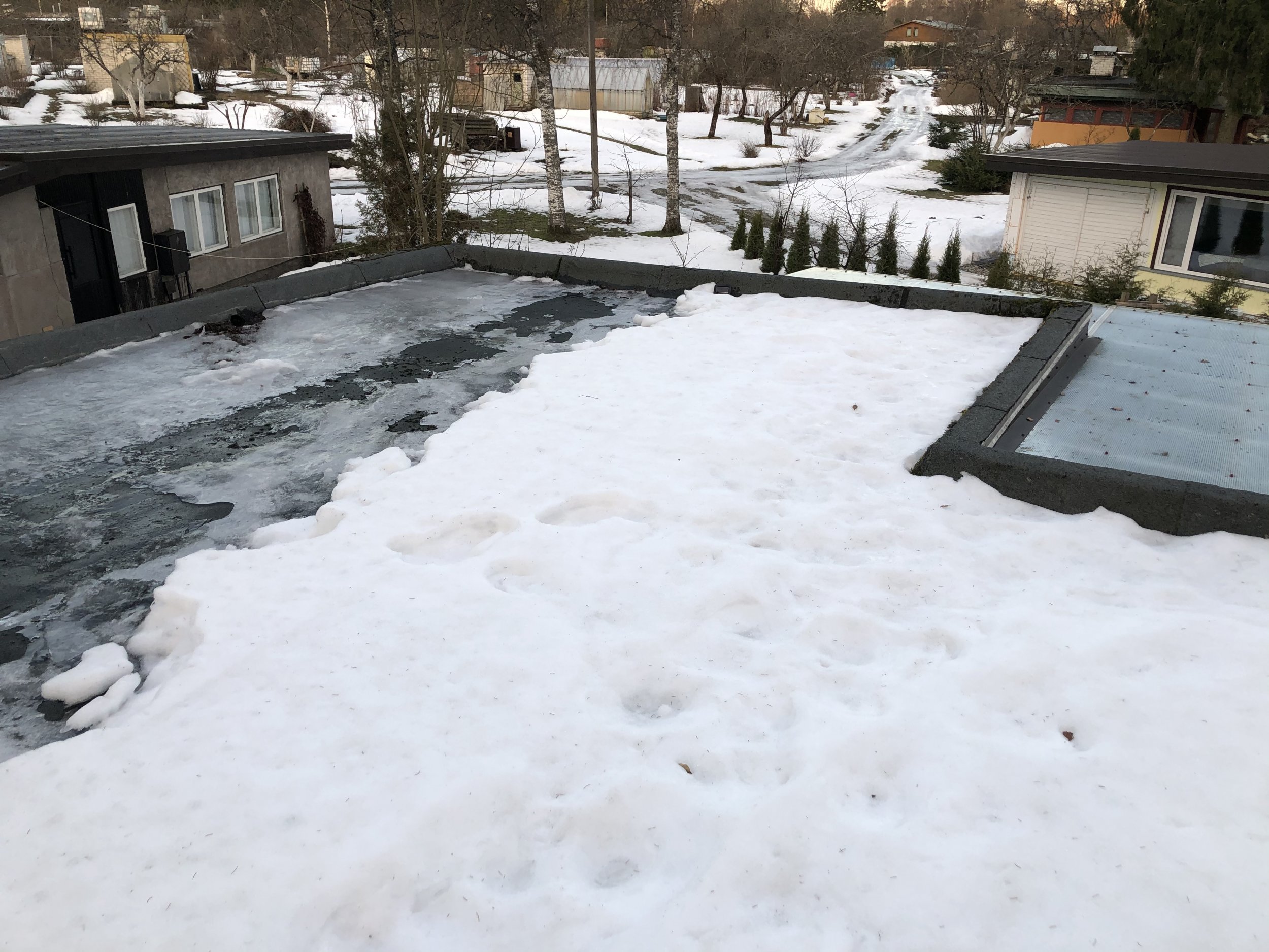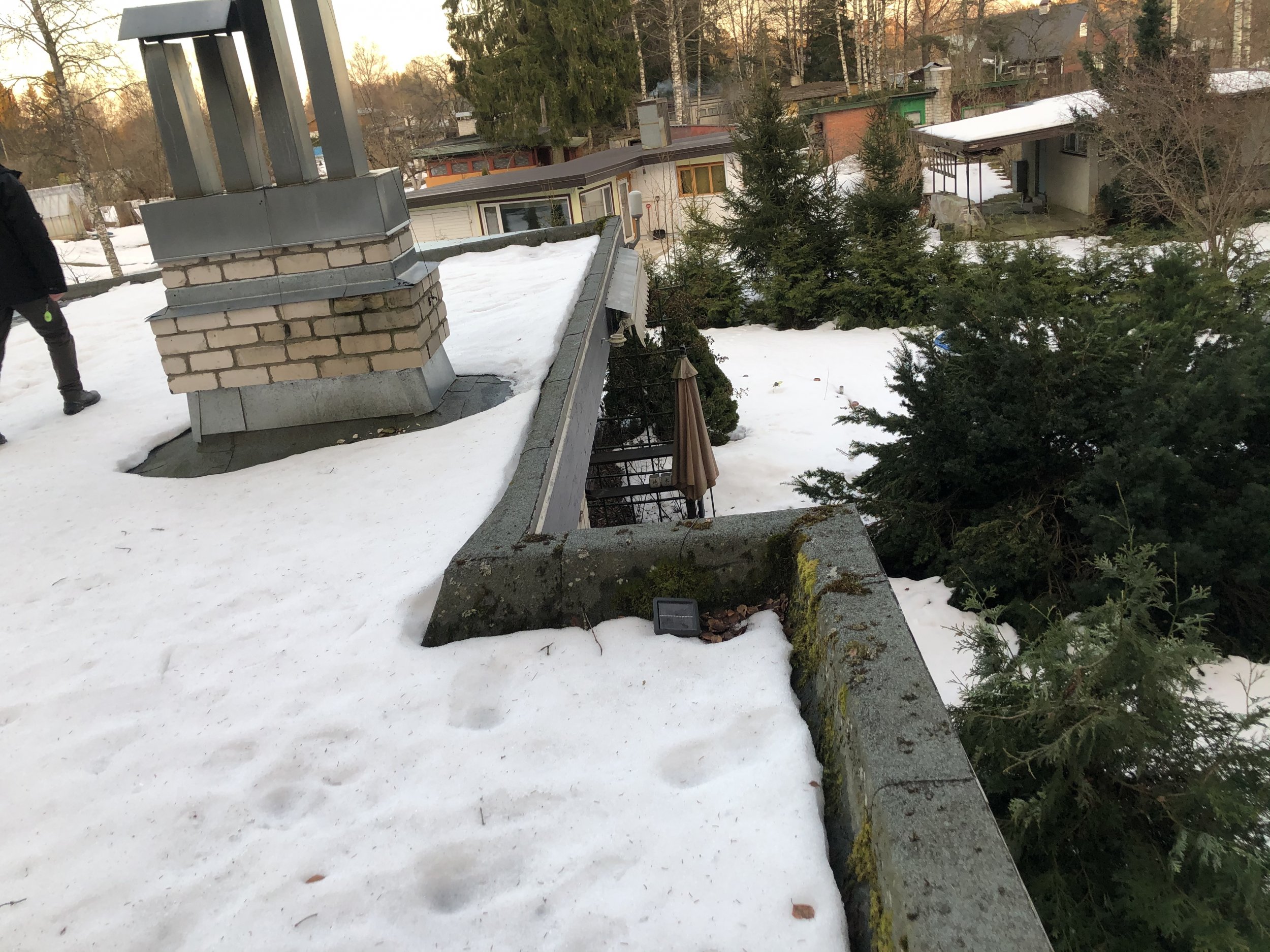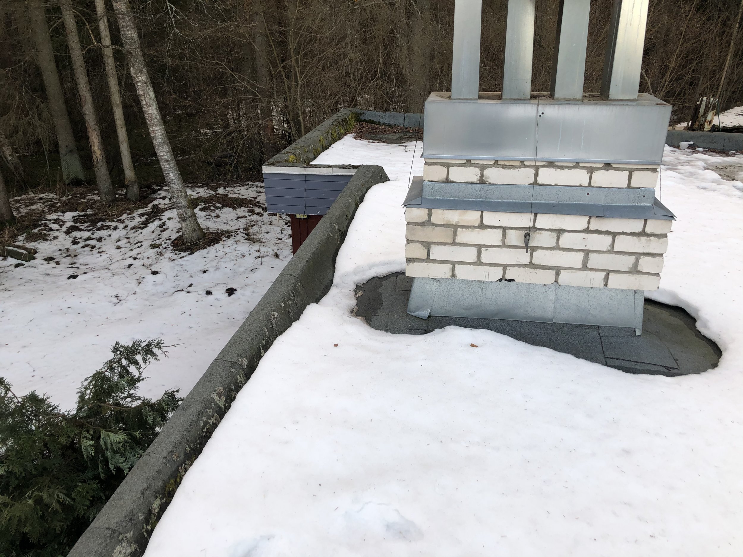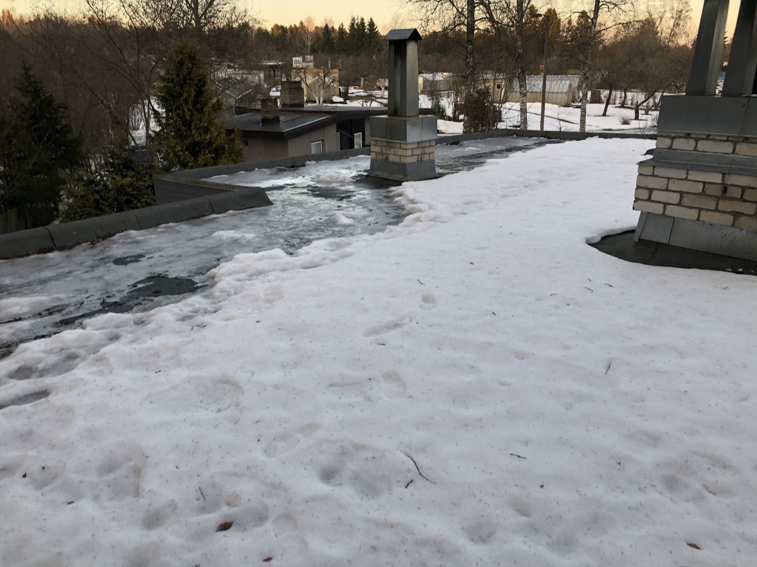 Vana ruberoid puhastada ja sinnapeale paigaldada/kinnitada u 20-30 cm soojustust. Mis omakorda katta ruberoidiga. Paigaldada vajalikud plekid( katusel kaks korstent) äravoolud. Katuse kalle on ühele poole.