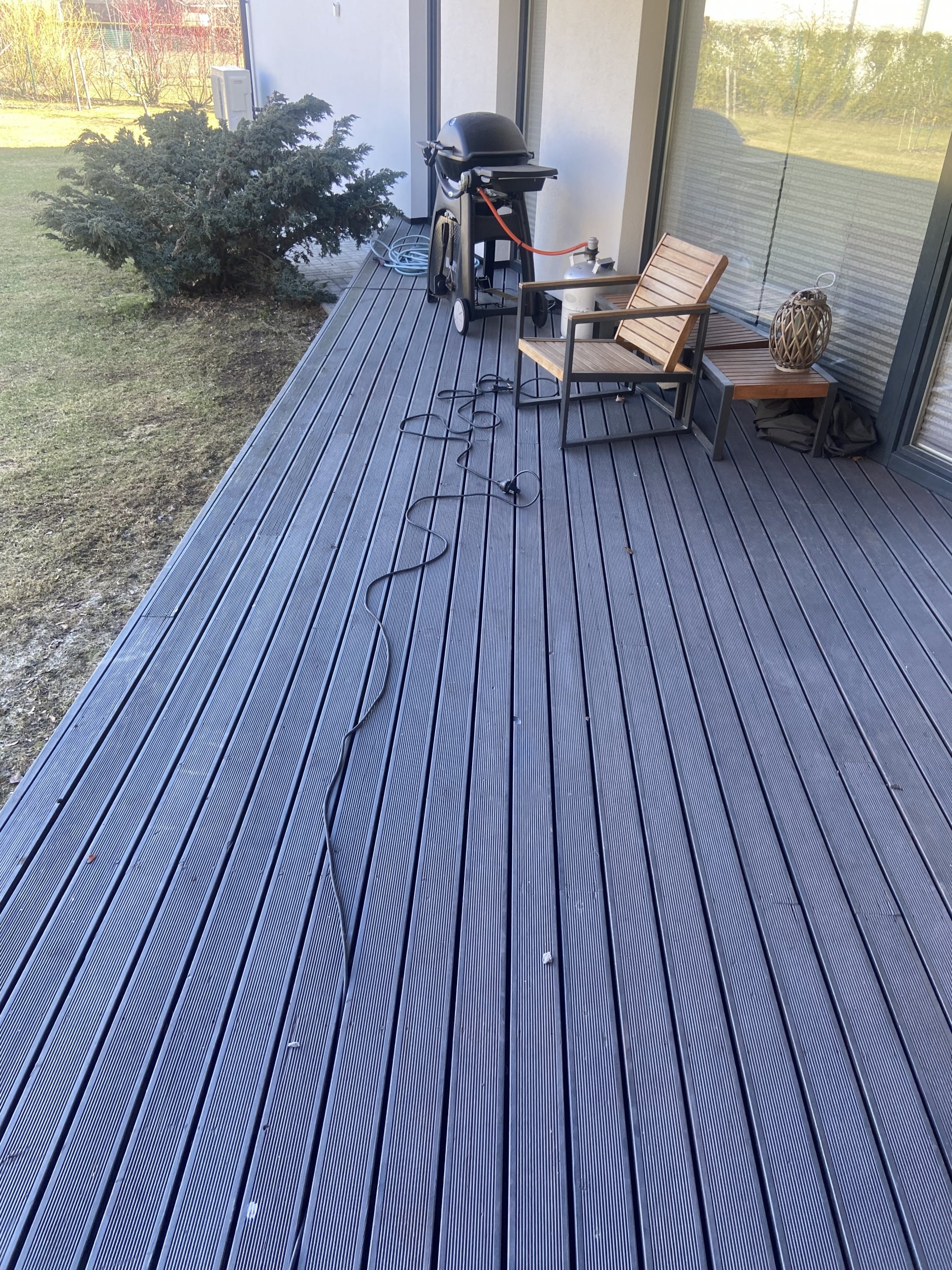 - terassi pesemine ja hooldus Rensa Terrace pesuainega (kasutame harja pinnale kandmiseks ning seejärel survepesuriga pesuaine pesemine). - õlitamiseks pakun välja Teknose Woodex terassiõli (lahustibaasil ja ilmastikukindlam) Värvid: värvitu, pruun, hall - õlitamine 2x (kasutades pintsilit, et õli oleks kantud ühtlaselt) - tööde kestvus 2 päeva (terrass peab pesemisest kuivama) Tasumine tööde lõppedes kas arve alusel või kohapeal sularahas. NB hinnale ei lisanud KM! Lugupidamisega |