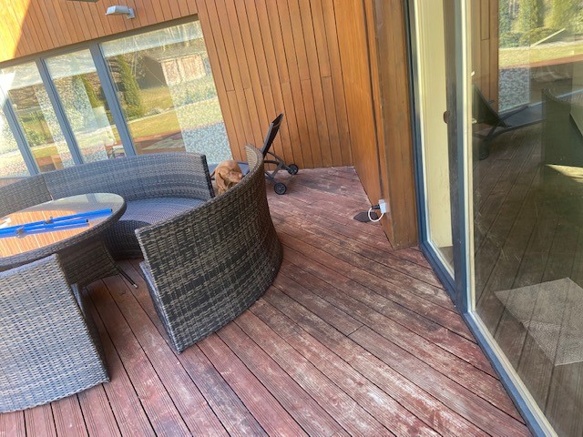 Terrassi süvapesu ja vanast toonist puhastamine. Uue tooniga õli peale kandmine.