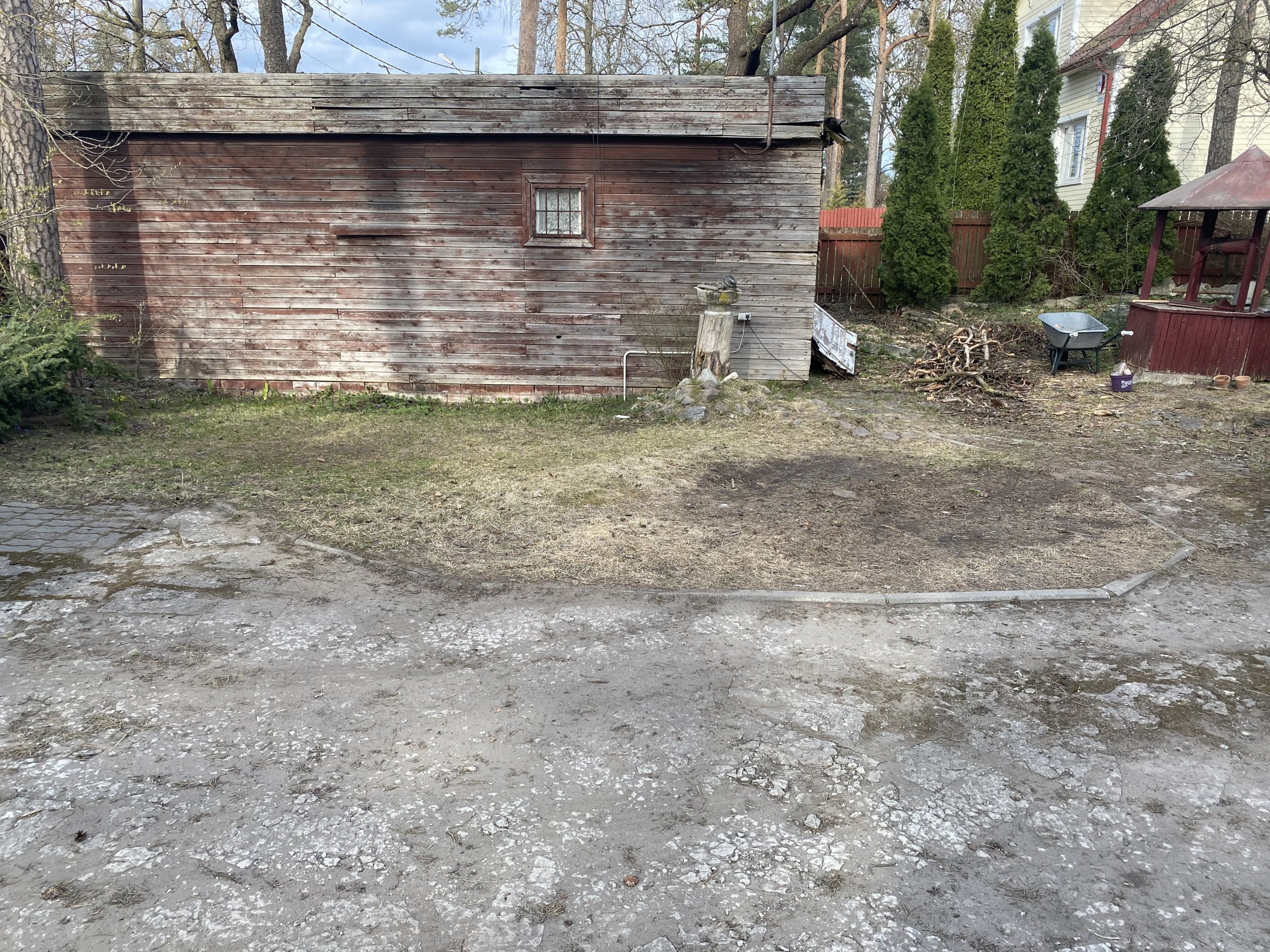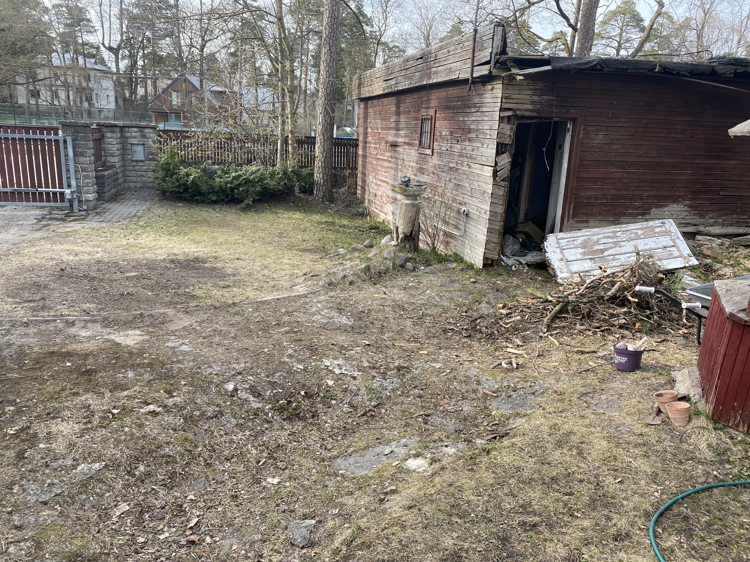 Vaja lammutada lagunev abihoone, ca 30m2. Ruumides on vana mööblit ja tehnikat. Hoone on enamasti puidust. Tekkinud prügi utiliseerida. Vundament jääb alles.