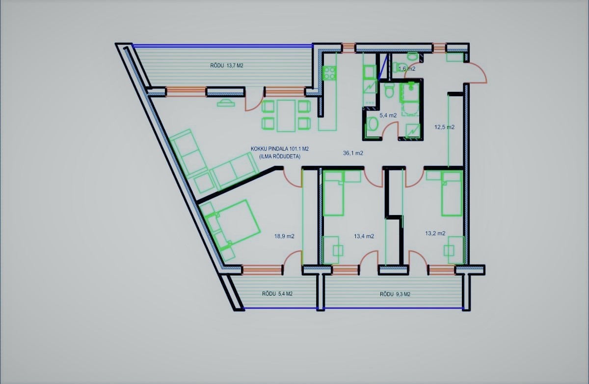 Korter asub Tartus Ülejõe piirkonnas 2015. a ehitatud kivimajas. Korteris kolm magamistuba ja avatud köögiga elutuba. Üldpind u 100m2. Korteris on mitu aastat elanud sees väikelastega pere, vastavalt sellele ka igapäevased kulumised ja vajadus värskenduseks. Lastetoa seinad kõvasti pliiatsite ja vildikatega soditud, mitmes toas seintel kruviauke vanadest seinariiulitest, kraapse-täkkeid. Muidu seinas siledad, tapeedimuret pole, kuna kõik värvitud.