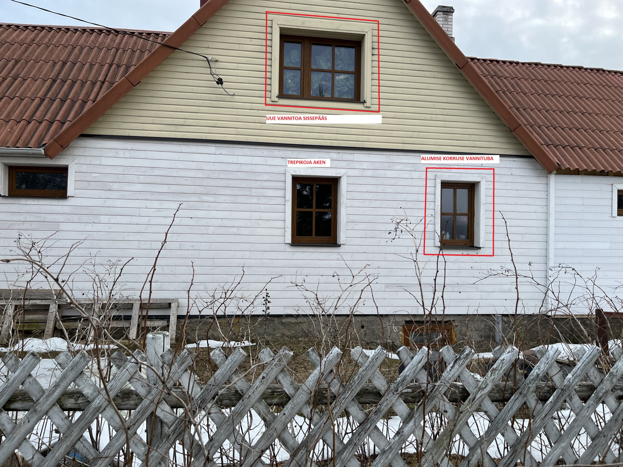 Kahekordne maja Ida-Virumaal. Soov on rajada teisele korrusele juurdeehitusena vannituba, mis ulatub majast väljapoole. Suurus umbes 12 m2(4m x 3m). Juurdeehituse alust pinda saaks kasutada auto varjualusena. Majal on pelleti keskküttekatel ning vannitoa küte oleks põrandaküte.