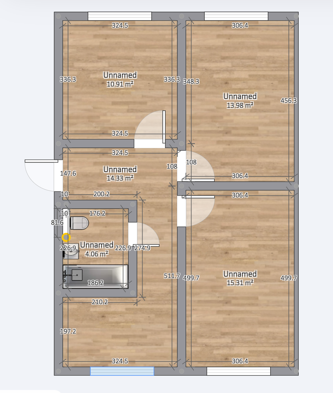 - Põrandaid katab laminaatparkett, puidust põrandaliistud. Ukseavad võib läbi lõigata, sh elutoa ja köögi oma, kui see vähendab “vetruva põranda” tekkimise riski.