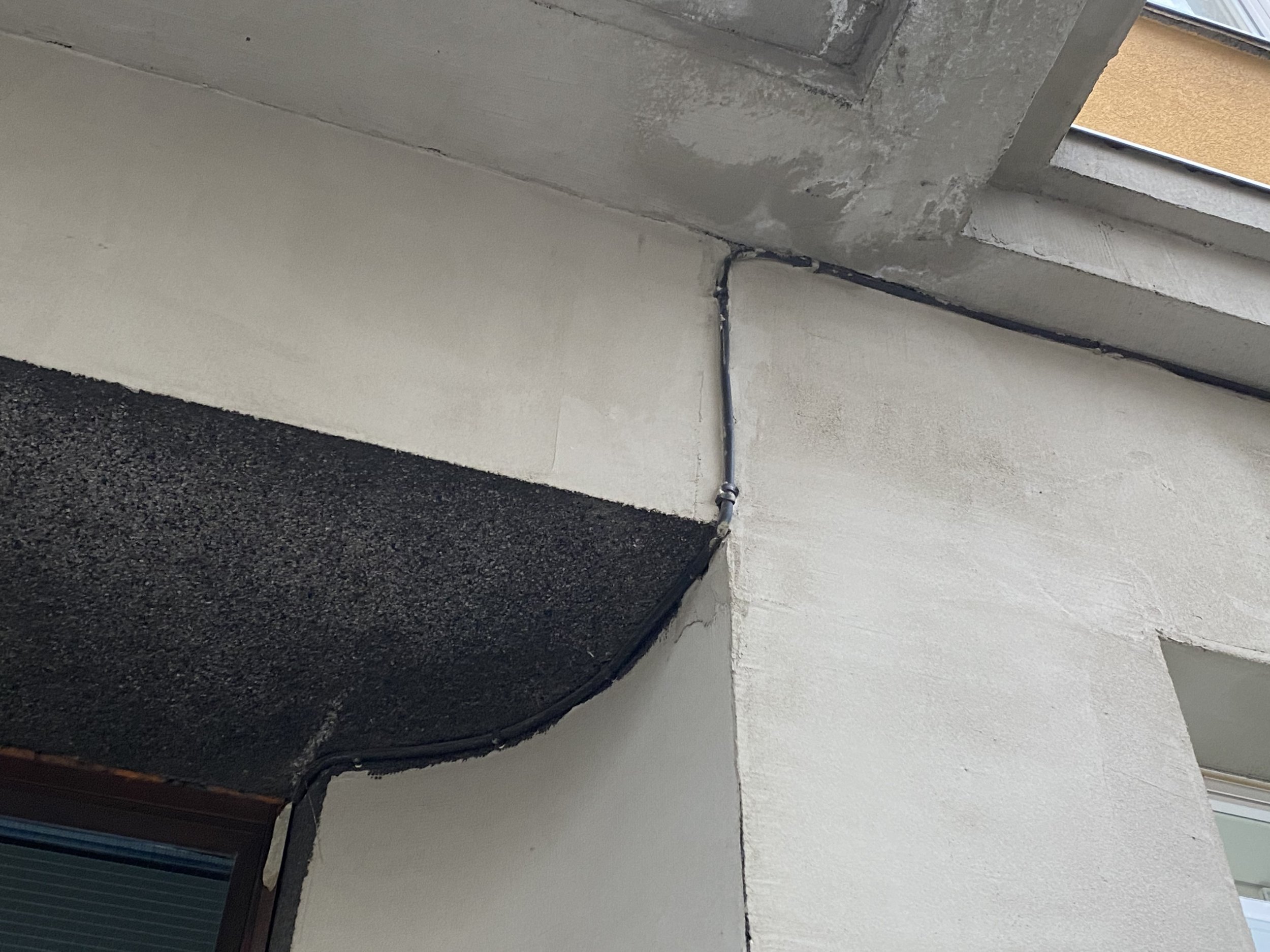 Hetkel on veeplekk saanud liiga lühike ja vihmavesi satub pleki pealt fassaadile.