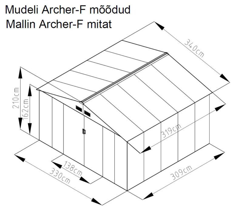 Kaks metallist aiakuuride (10,2 m2 ja 7,4 m2) koos alustega paigaldamine / kokkupanemine