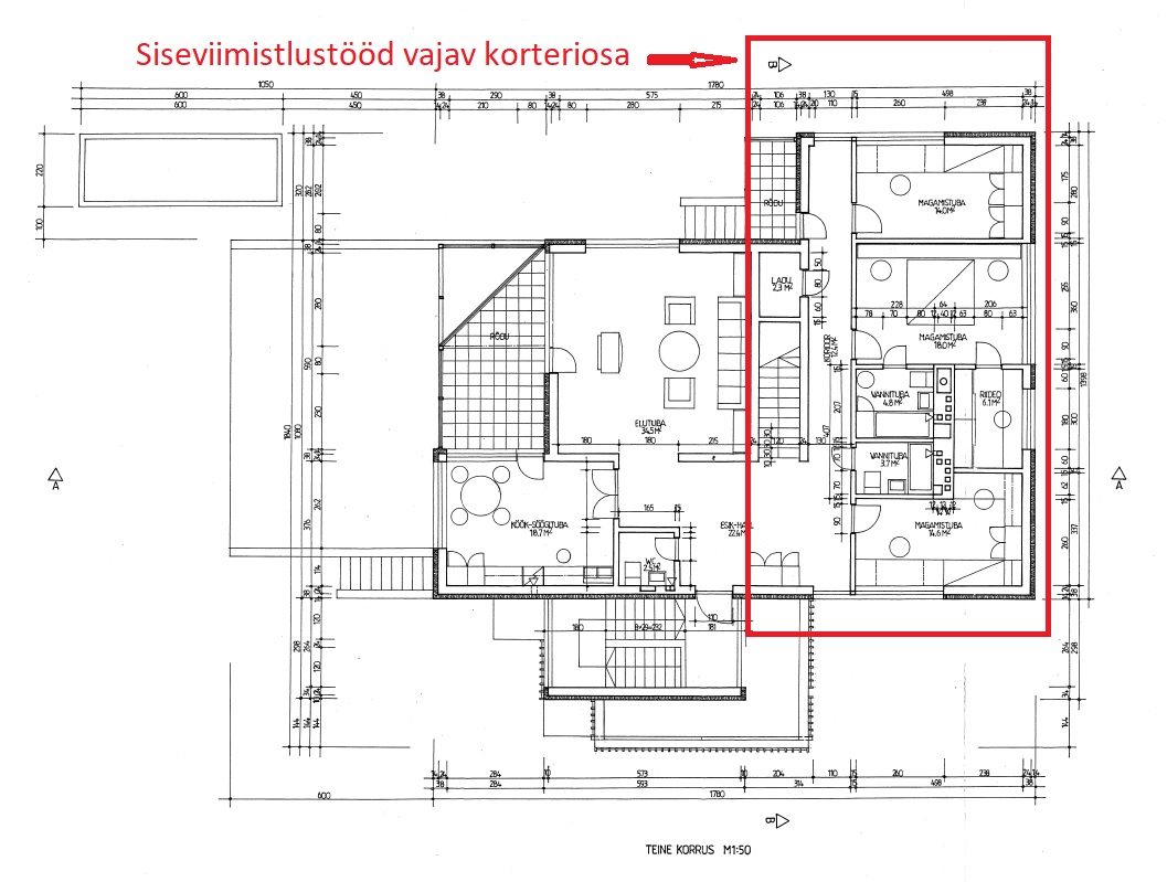 Vaja pahteldada ja värvida korteri kolme toa ja koridori seinad ja lagi. Eeltööd tehtud (kipsi paigaldus). Hind palun esitada ruutmeetri hinnana. Pärast saab täpselt üle mõõta, aga tegu on suurema korteriga.