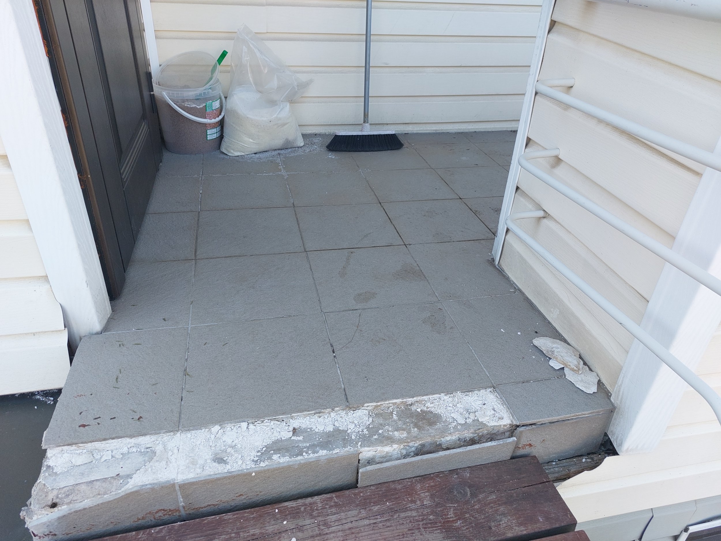 Vaja eemaldada veranda vanad plaadid, teha hüdroisolatsioon ja paigaldada uued plaadid.